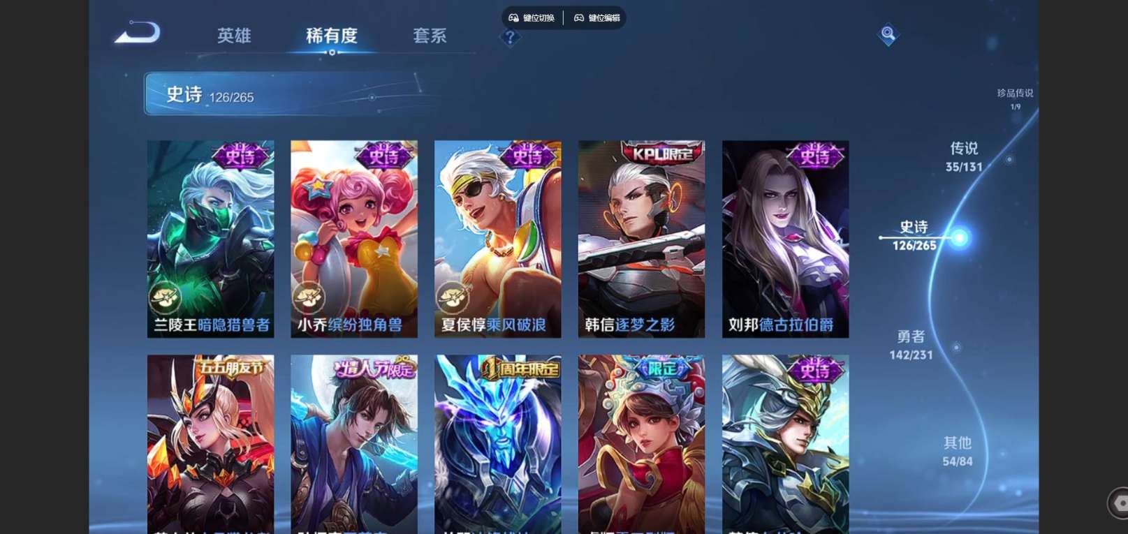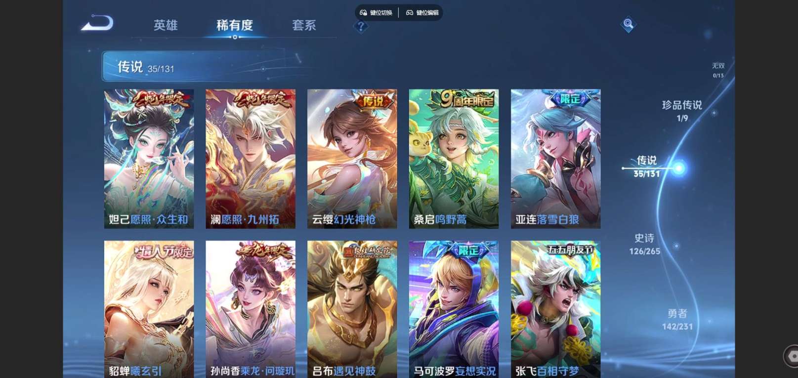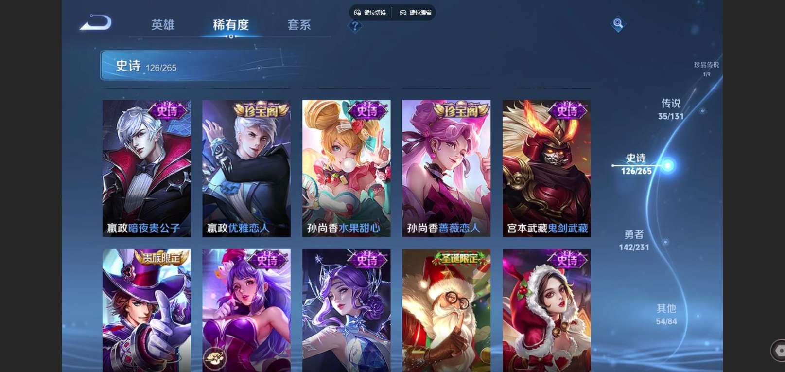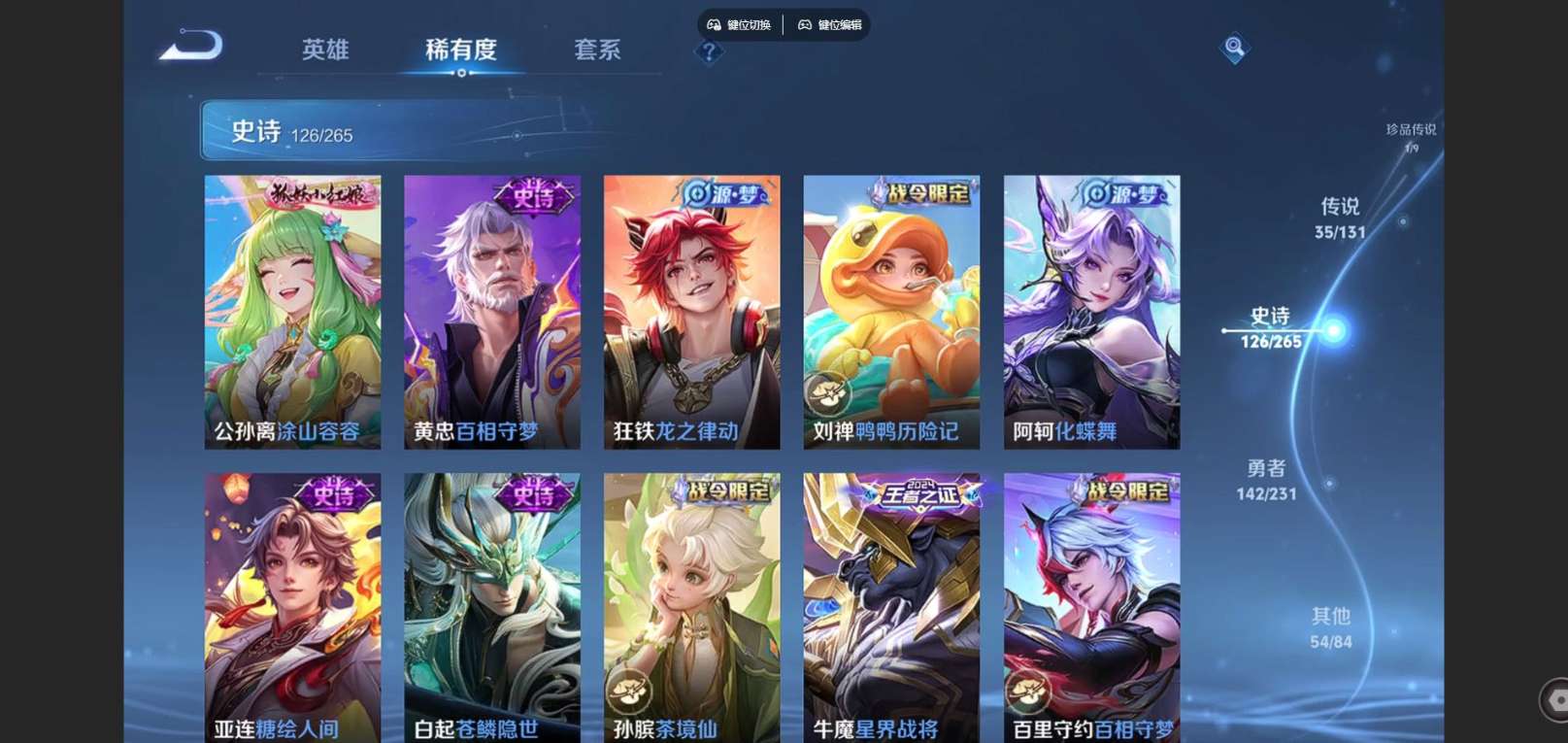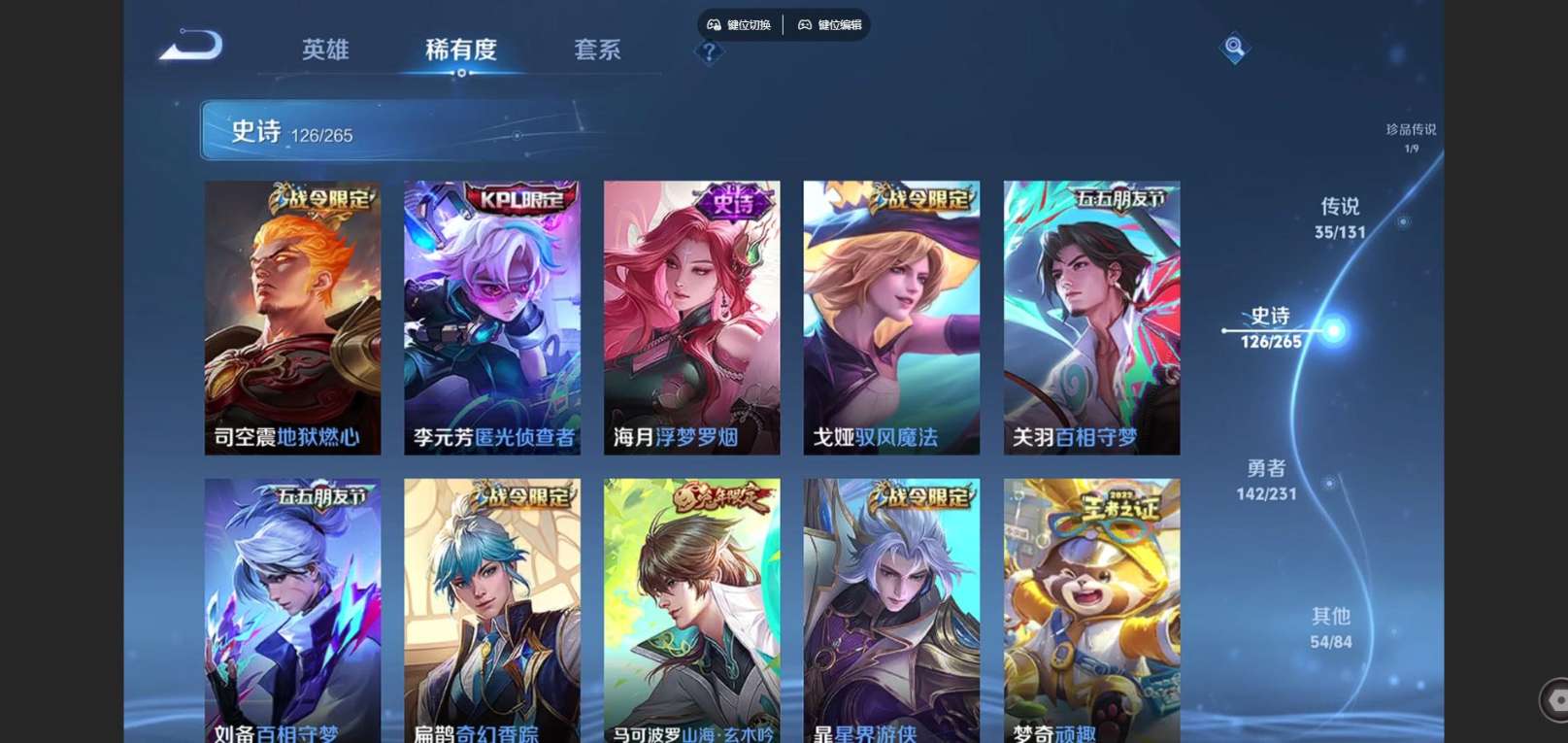 127英雄-360皮肤--V9-2典藏1珍品传说35传说 对抗路44段 发育路37段 1万4金标花木
