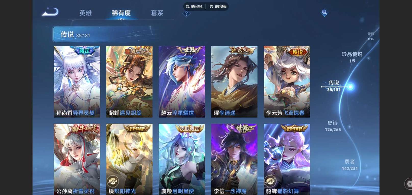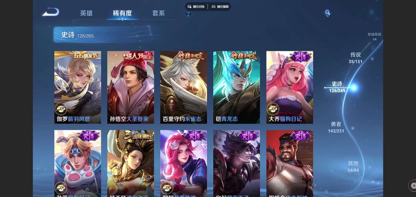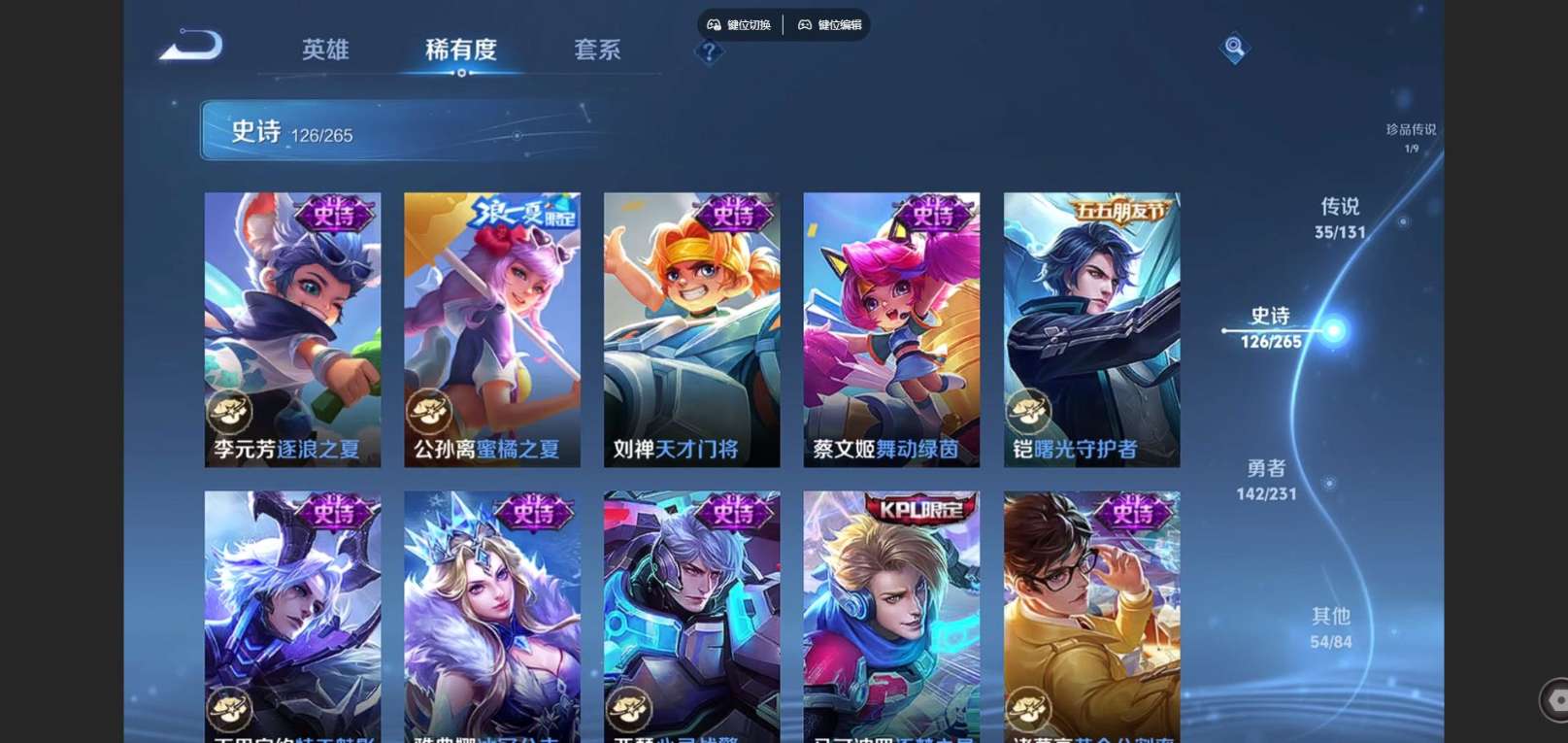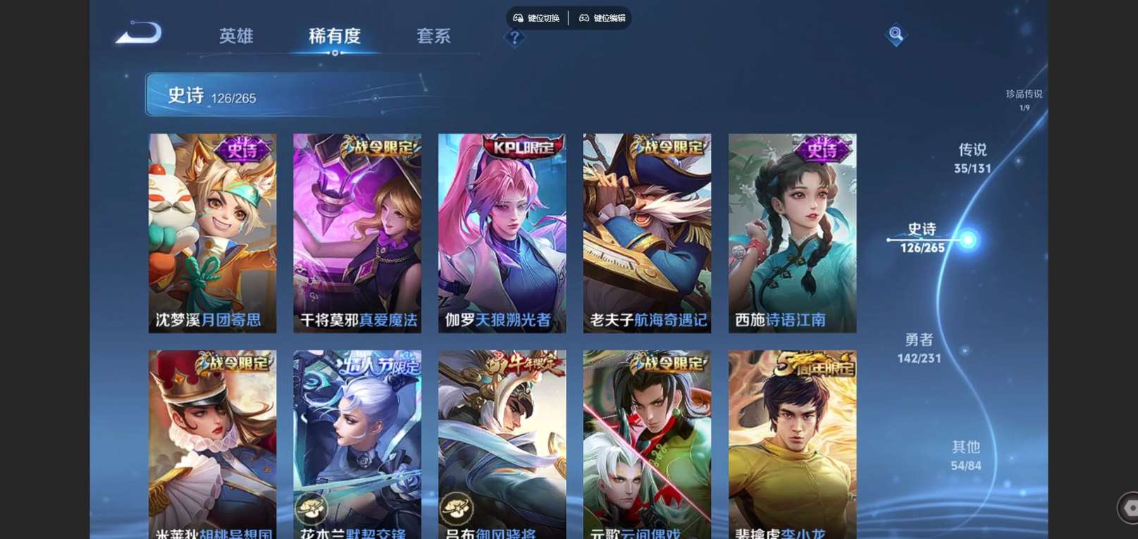 127英雄-360皮肤--V9-2典藏1珍品传说35传说 对抗路44段 发育路37段 1万4金标花木