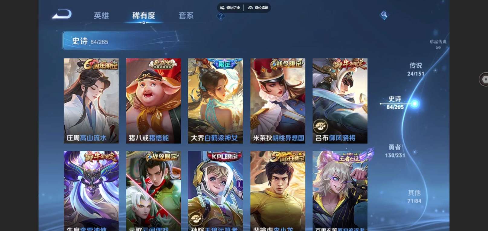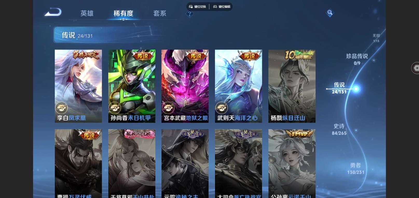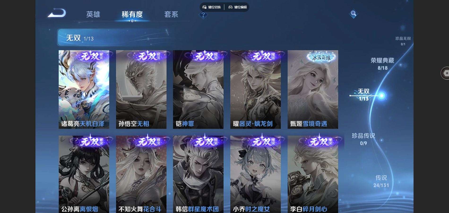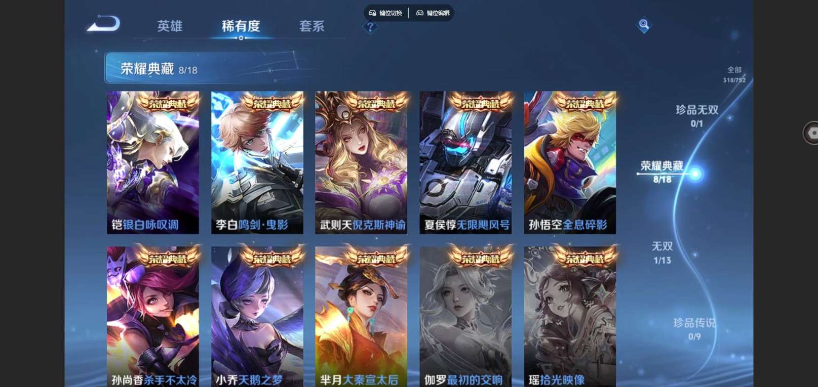 128英雄-318皮肤--V9-9典藏1无双24传说 金标 孙尚香 牛魔 3星传说 时之愿境 幽冥之