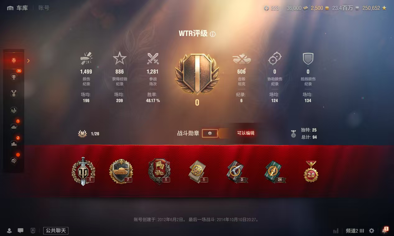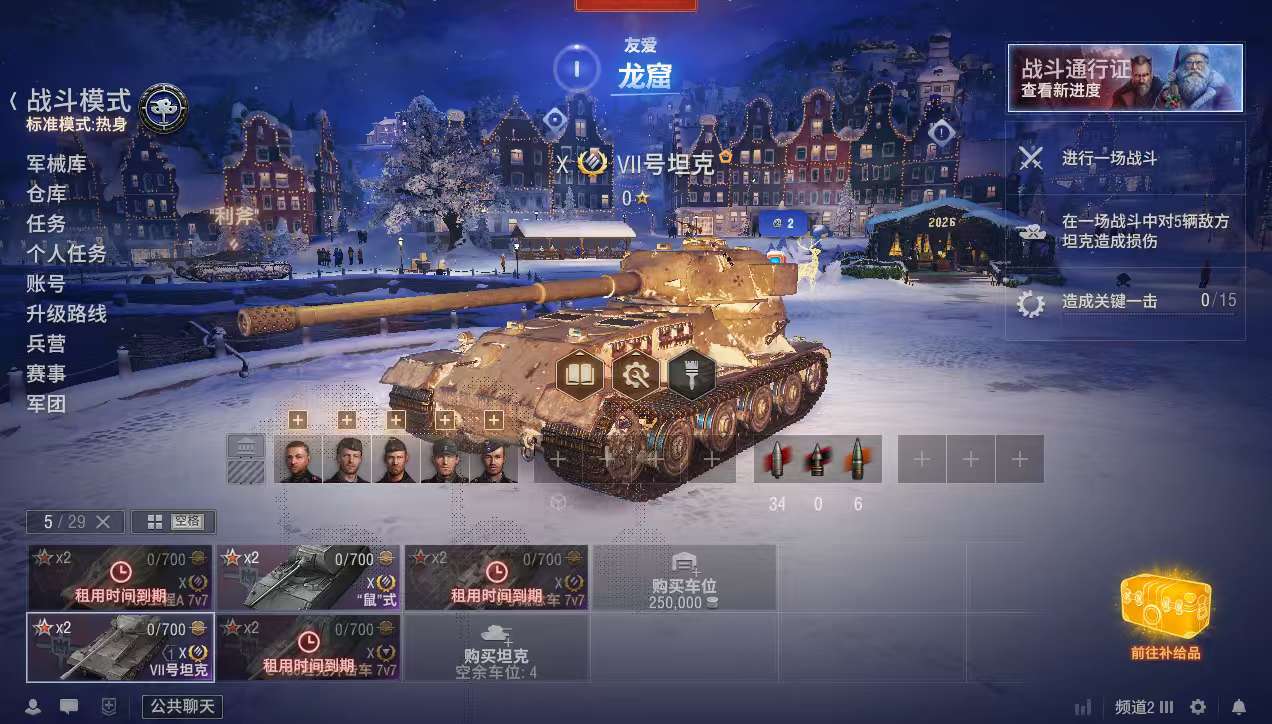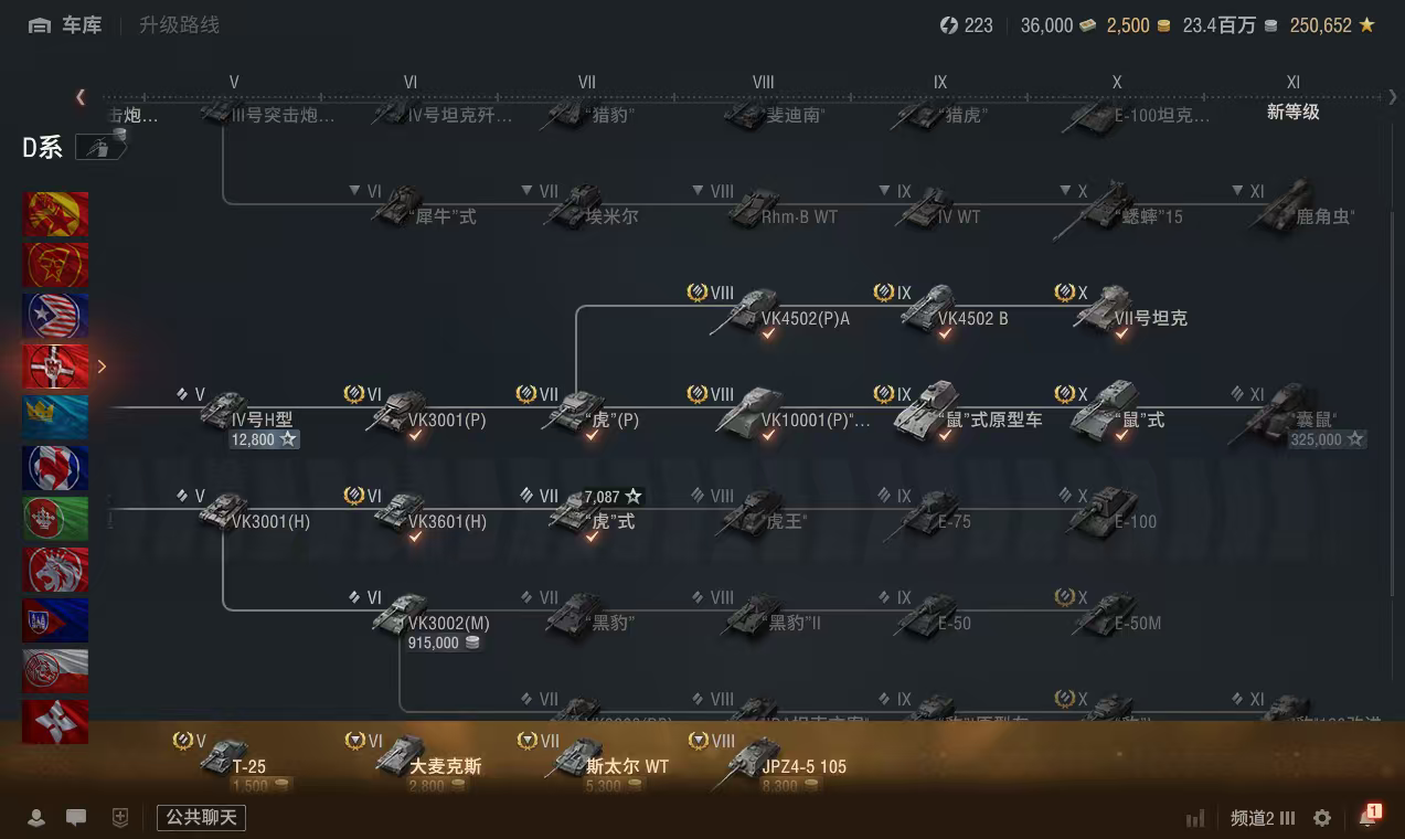 银币2300万、个人储备180个、债券36000、全局25万、金币25002辆10级车:鼠式、VI