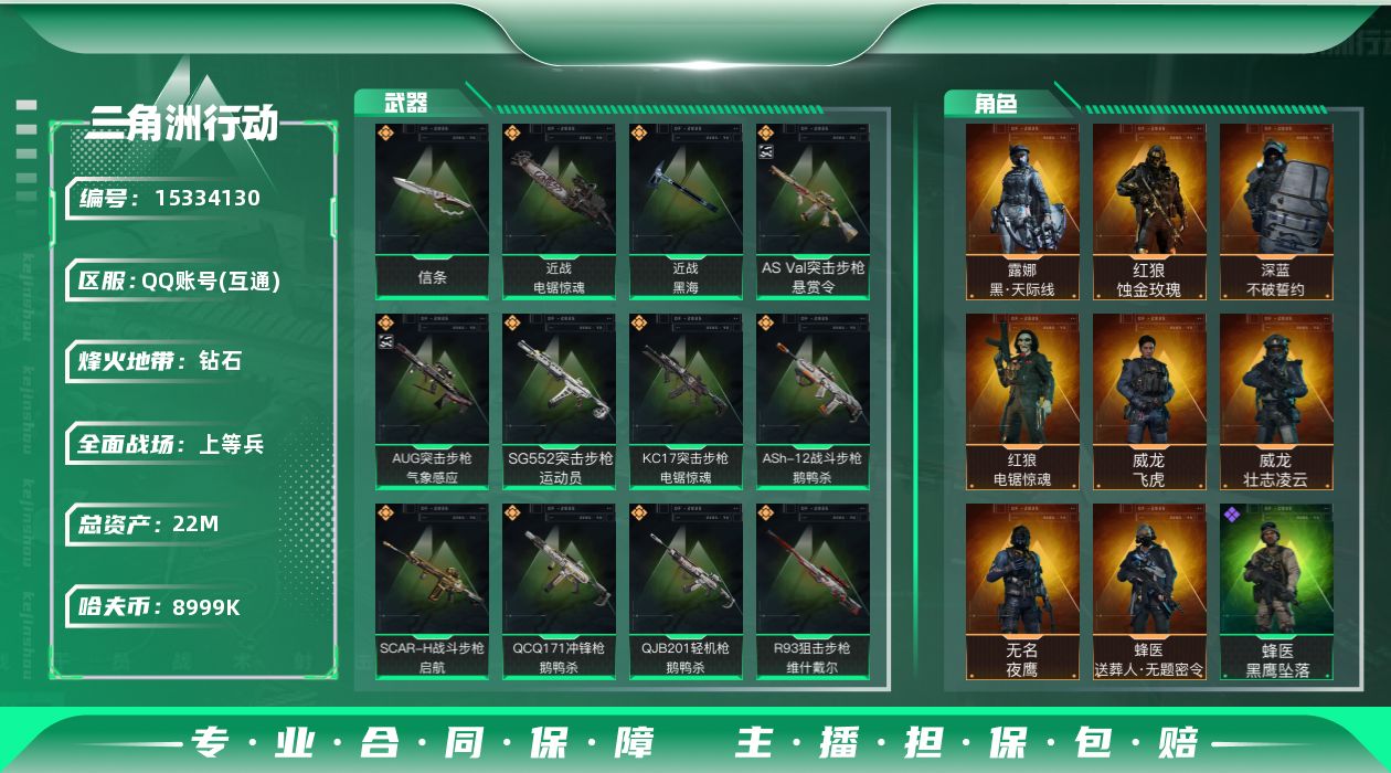 总资产(M):22M/哈夫币(K):8999K/哈夫币(K):8999K/传说枪皮数:29/全面战场