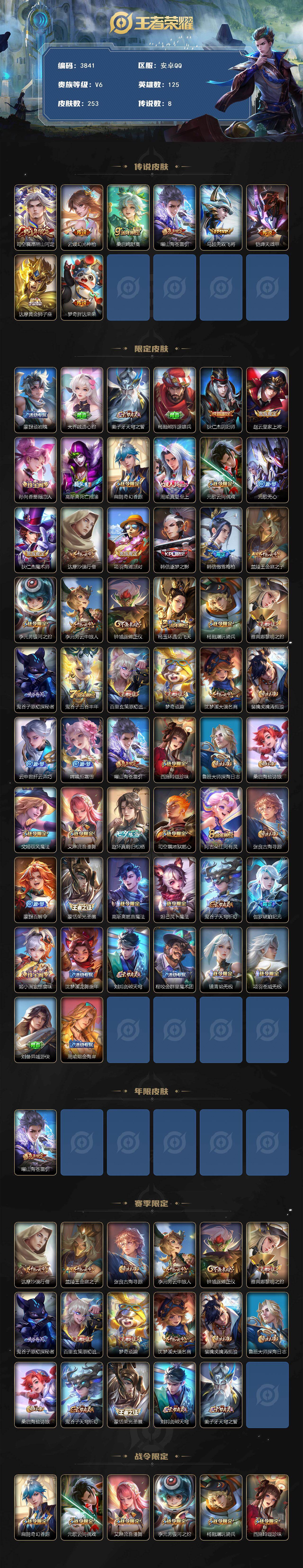 安卓Q-V2-最强王者段位-125英雄-253皮肤-8传说-85史诗【英雄全