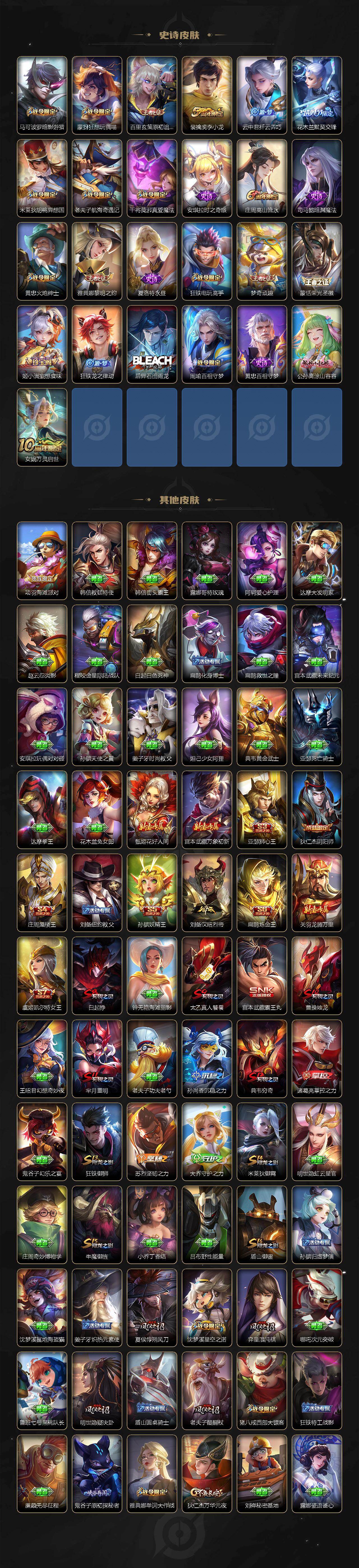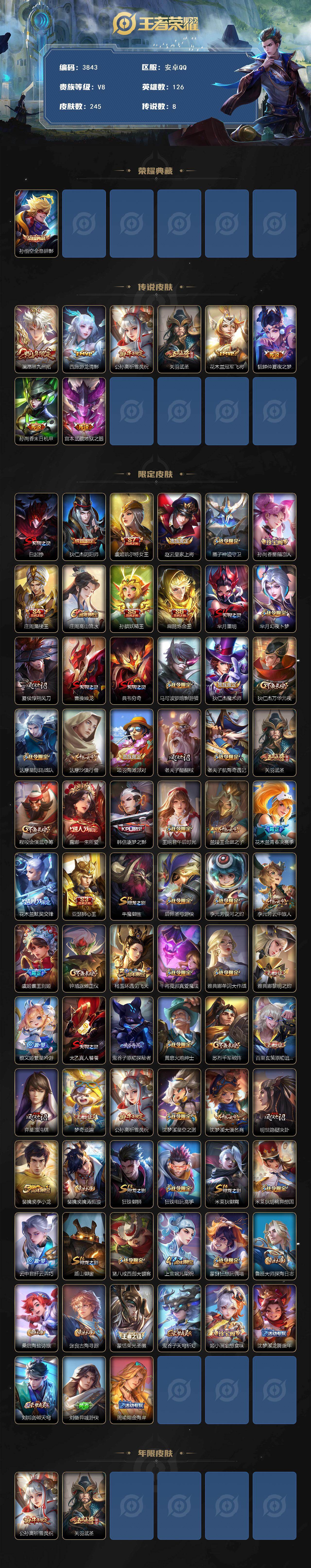 安卓Q-V6-最强王者段位-126英雄-245皮肤-1典藏皮肤-8传说-73史诗
