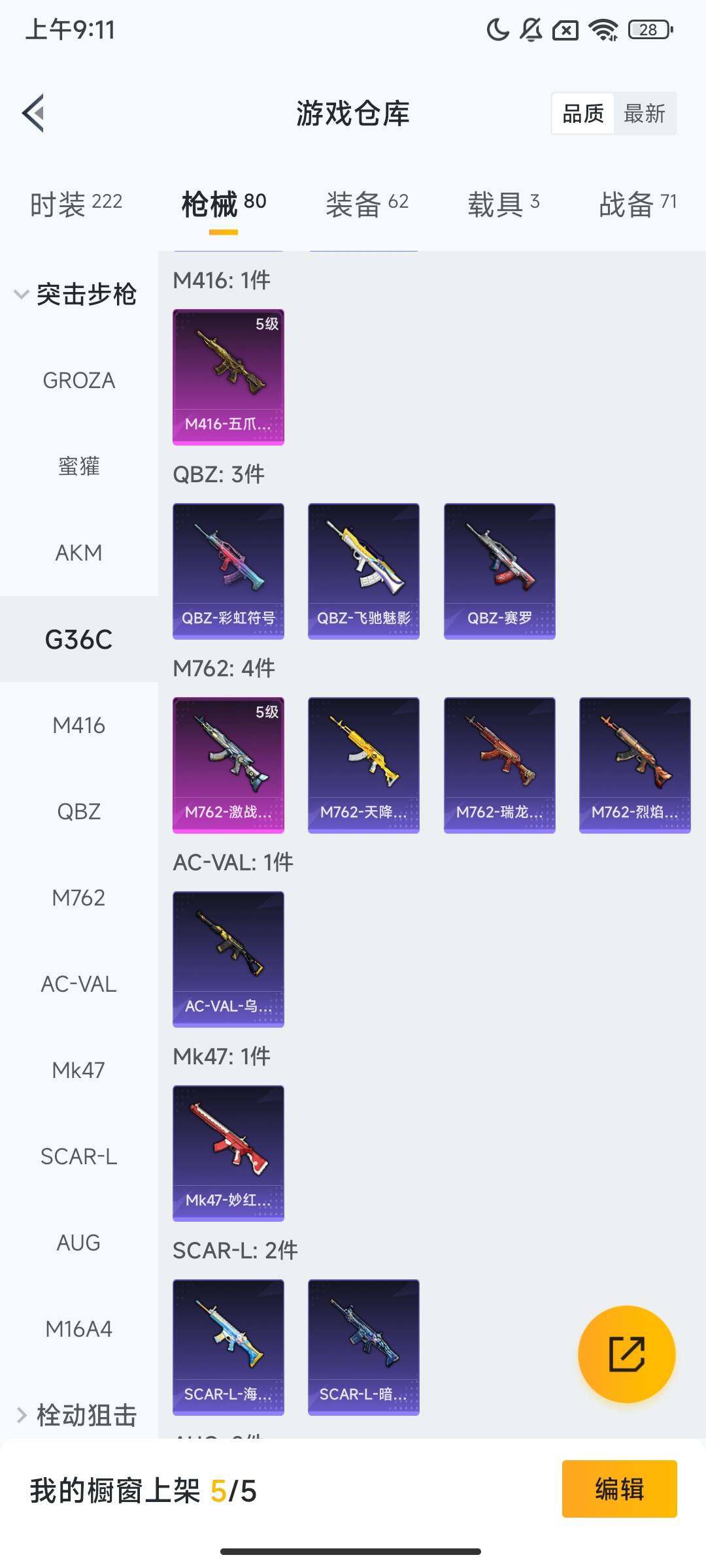 【粉色枪皮等级】:M416-五爪金龙(五级),M762-激战未来(五级),Kar98K-巳巳如意(四级)