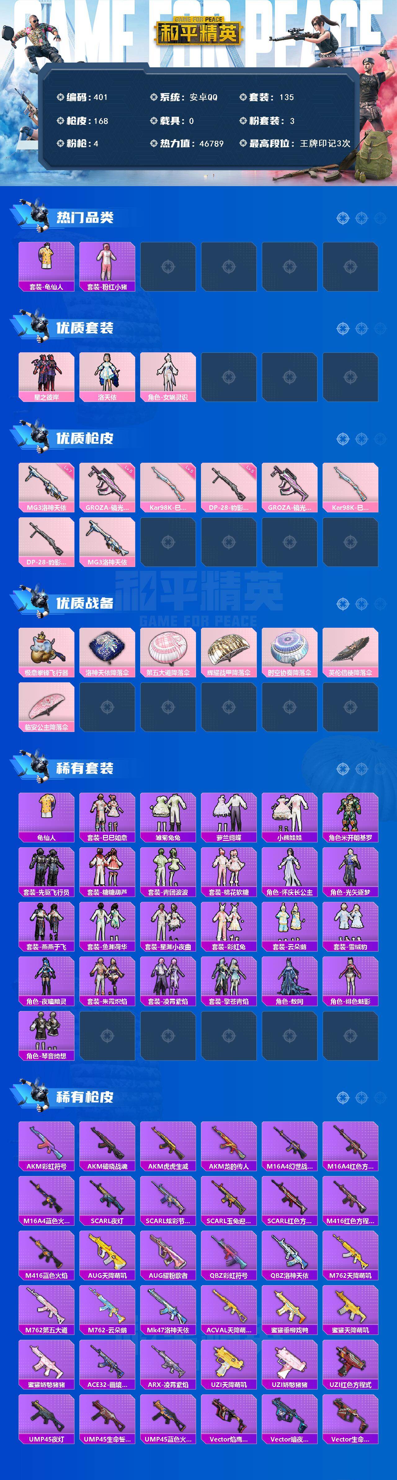 安卓 手Q-3粉装-4特效枪-0载具-2粉色飞行器-46789热力值-3王牌印记-135套装-168枪皮