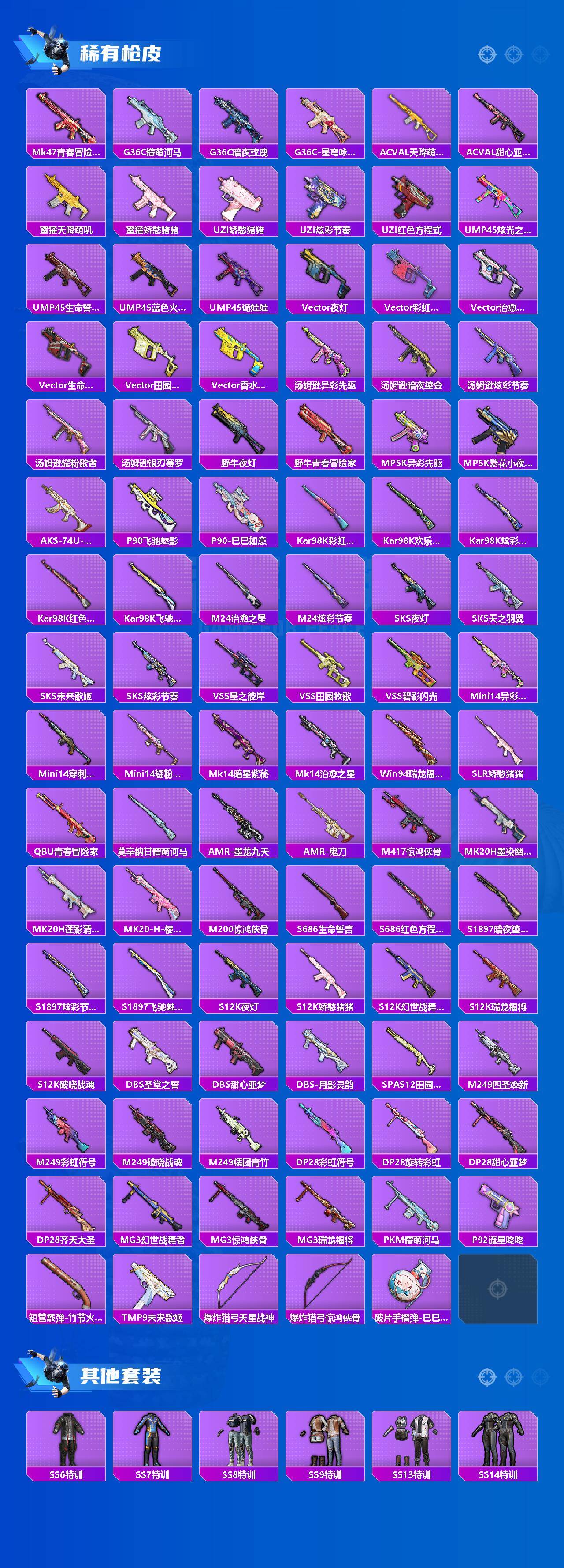 【粉色枪皮等级】:M416-五爪金龙(七级),Kar98K-巳巳如意(五级),SVD-月影灵韵(五级)