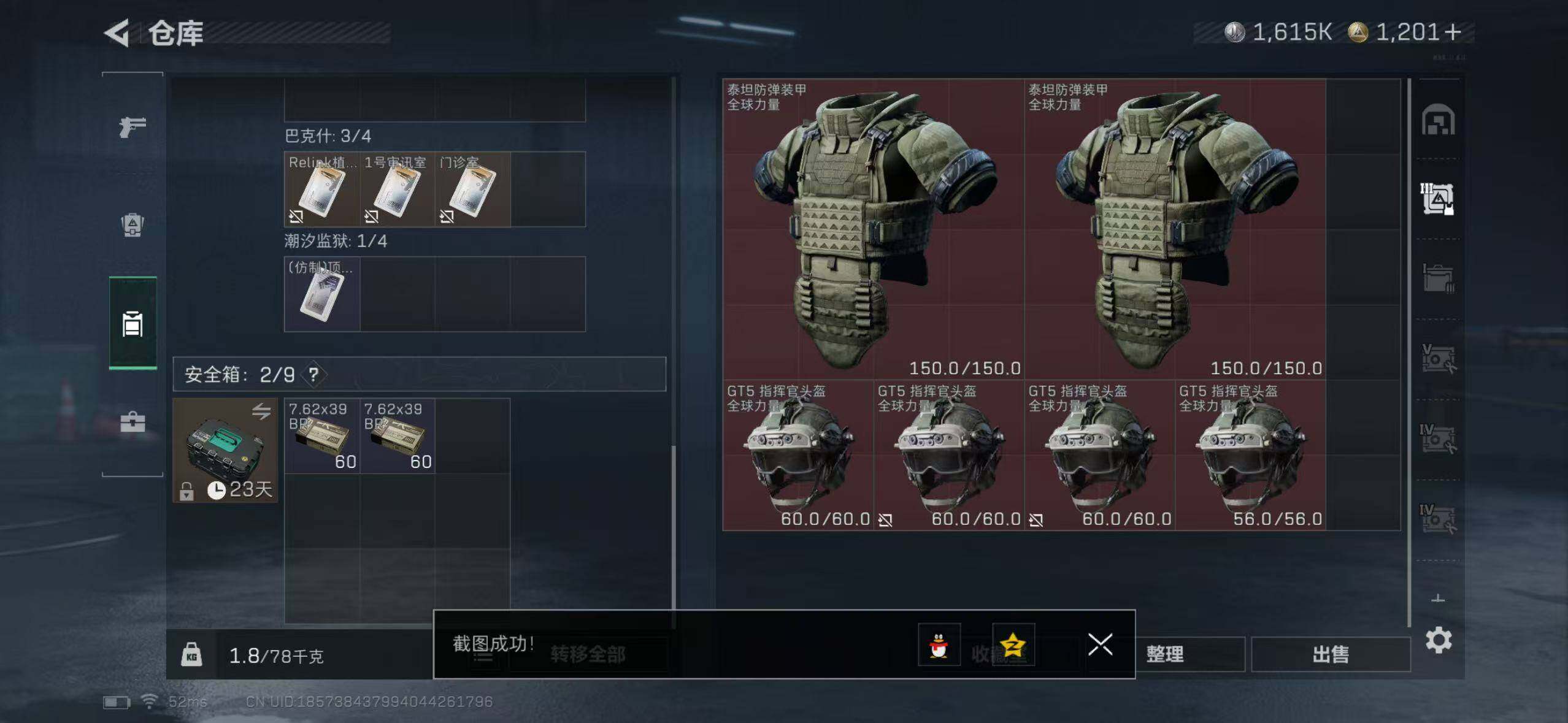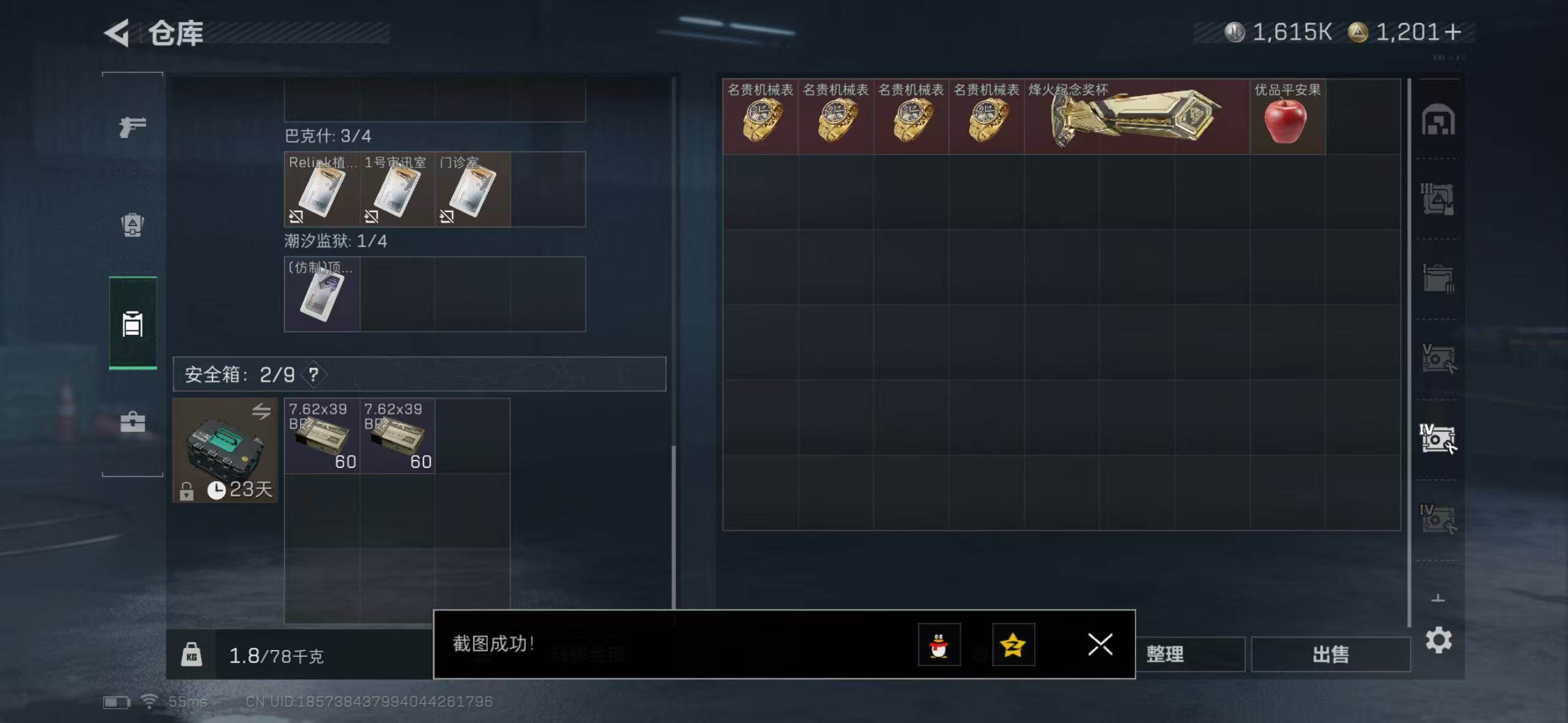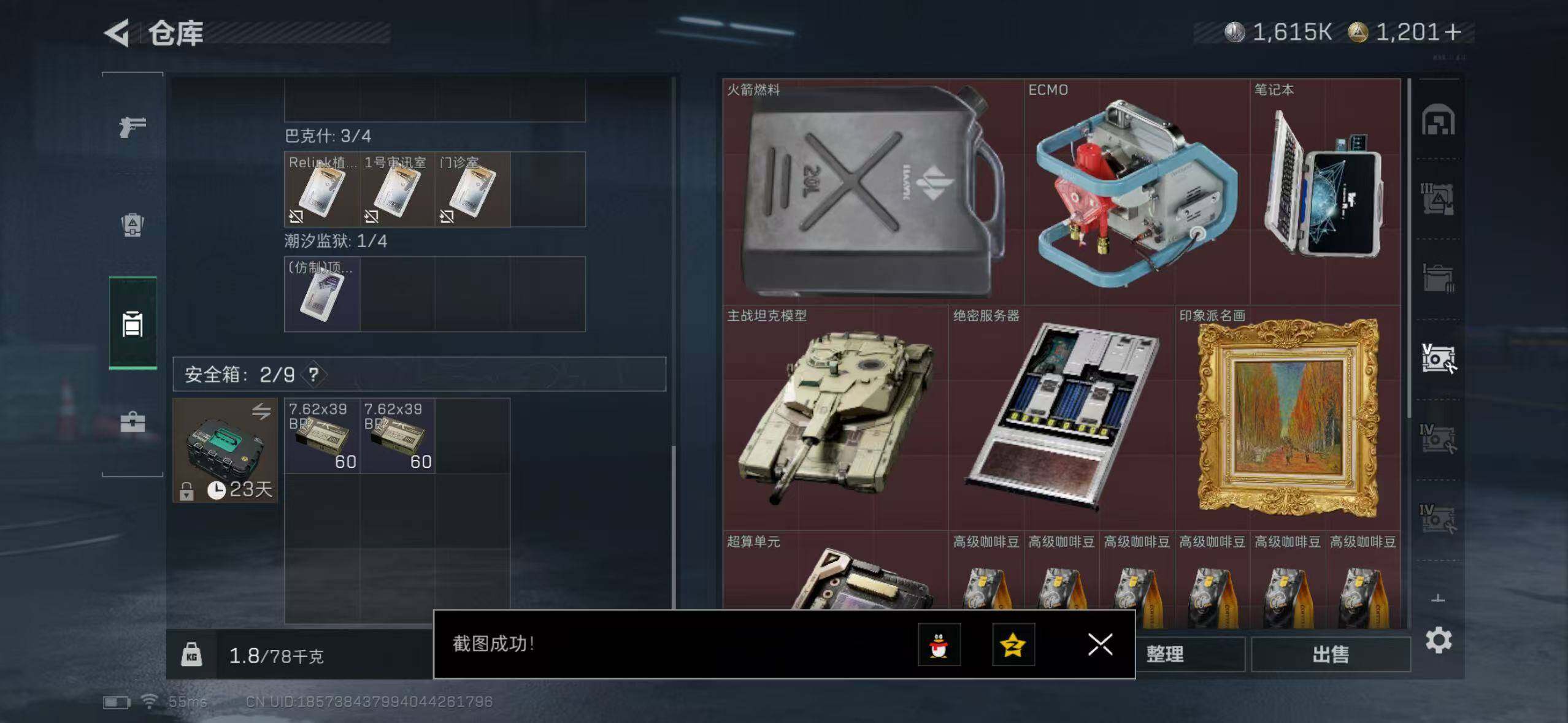 【SJ804】168m总资产-1615k哈伏币-60烽火等级-黄金-1战场等级
