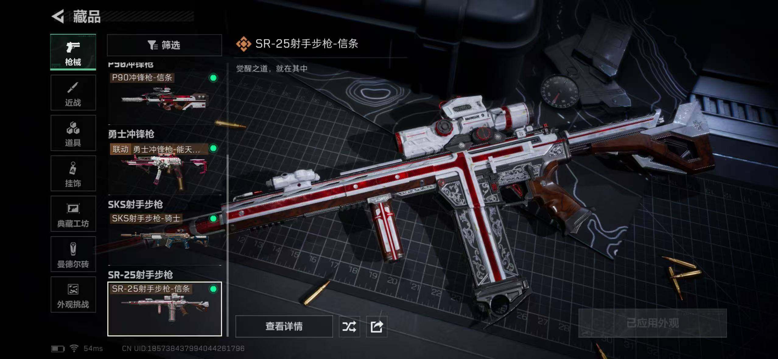 【传说外观】:SG552突击步枪-运动员,SCAR-H战斗步枪-启航,P90冲锋枪-信条,勇士冲锋枪-能天使-午夜邮差,SR-25射手步枪-信条