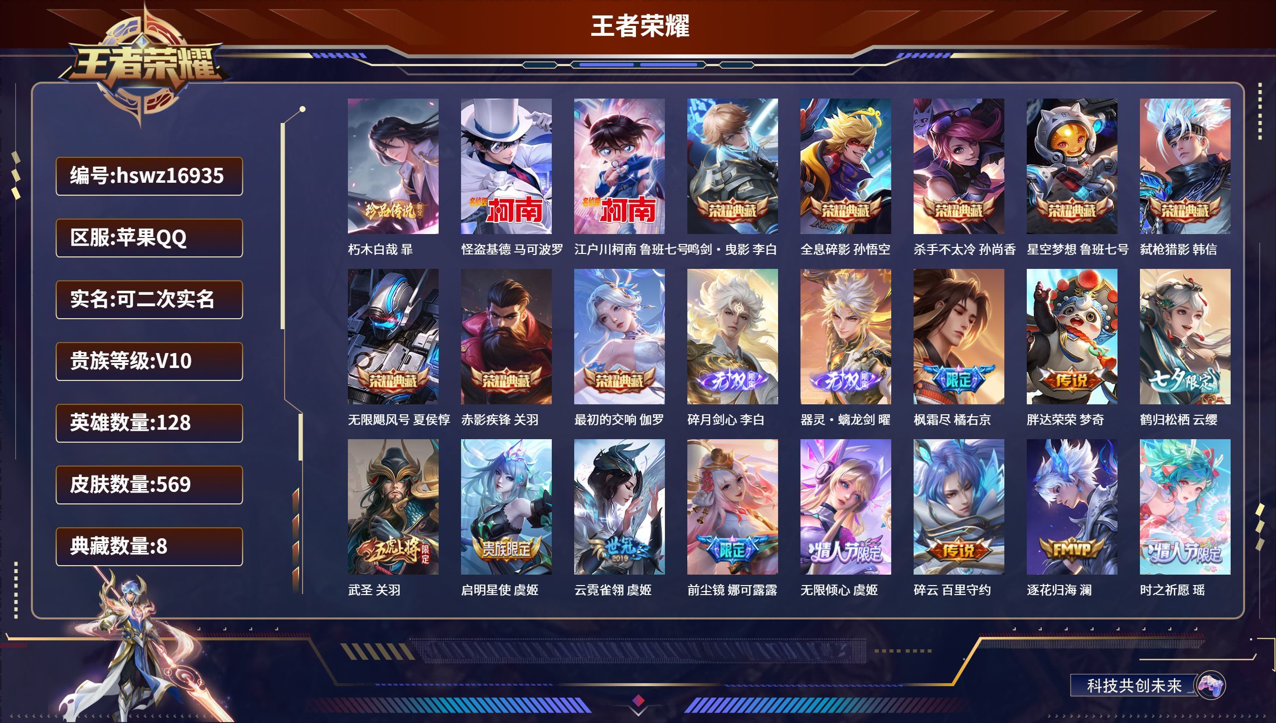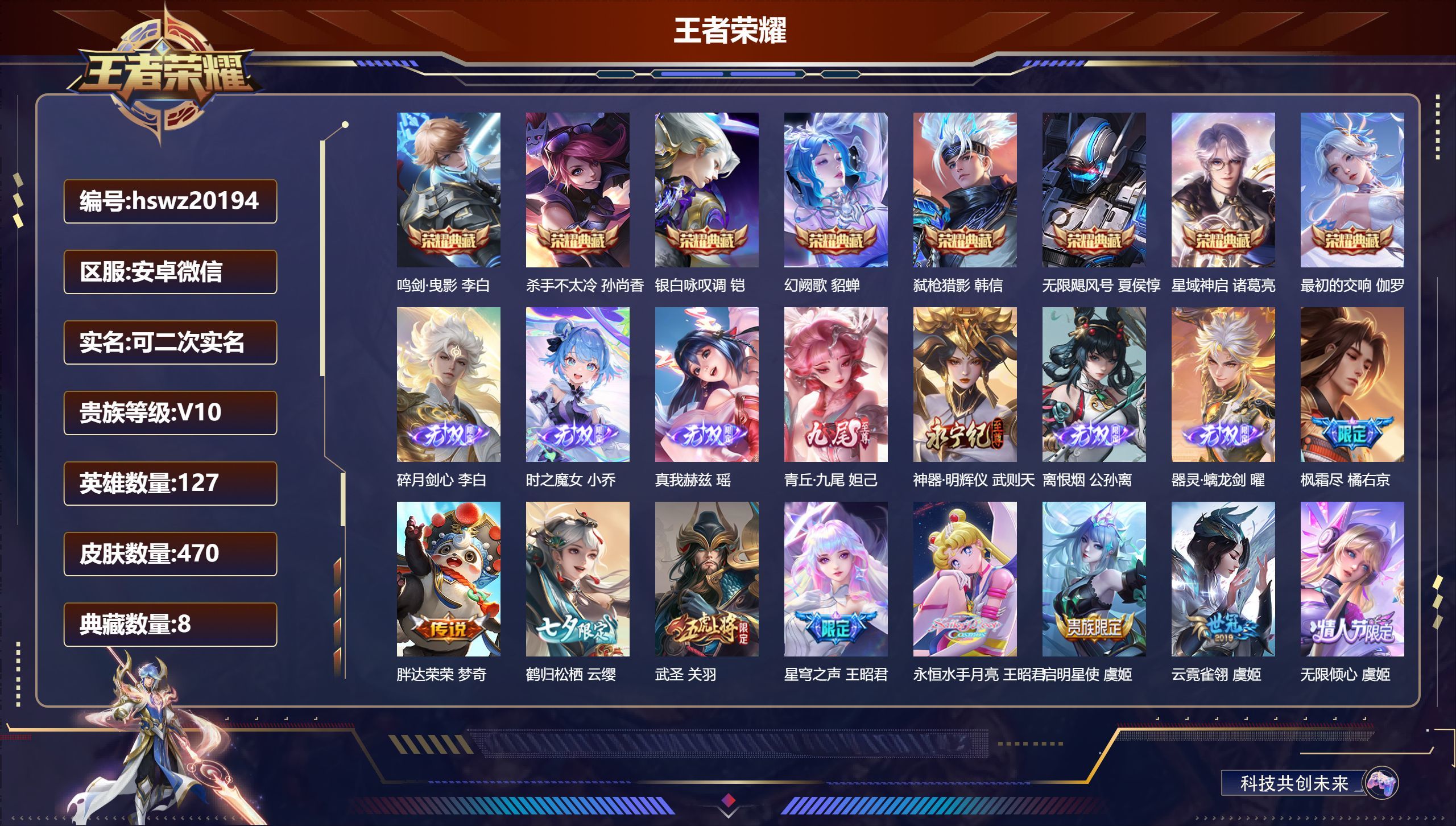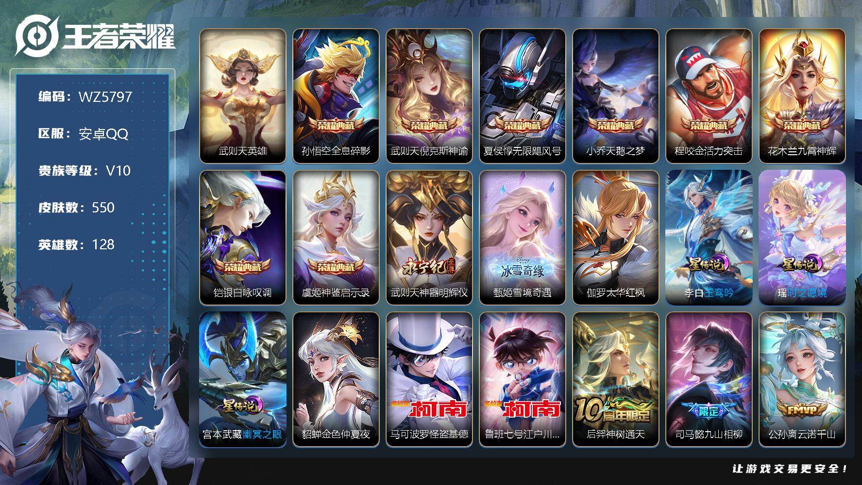 可换绑【V10精品号 花木兰全皮 赵云全皮 15典藏含武则天英雄 5无双 11
