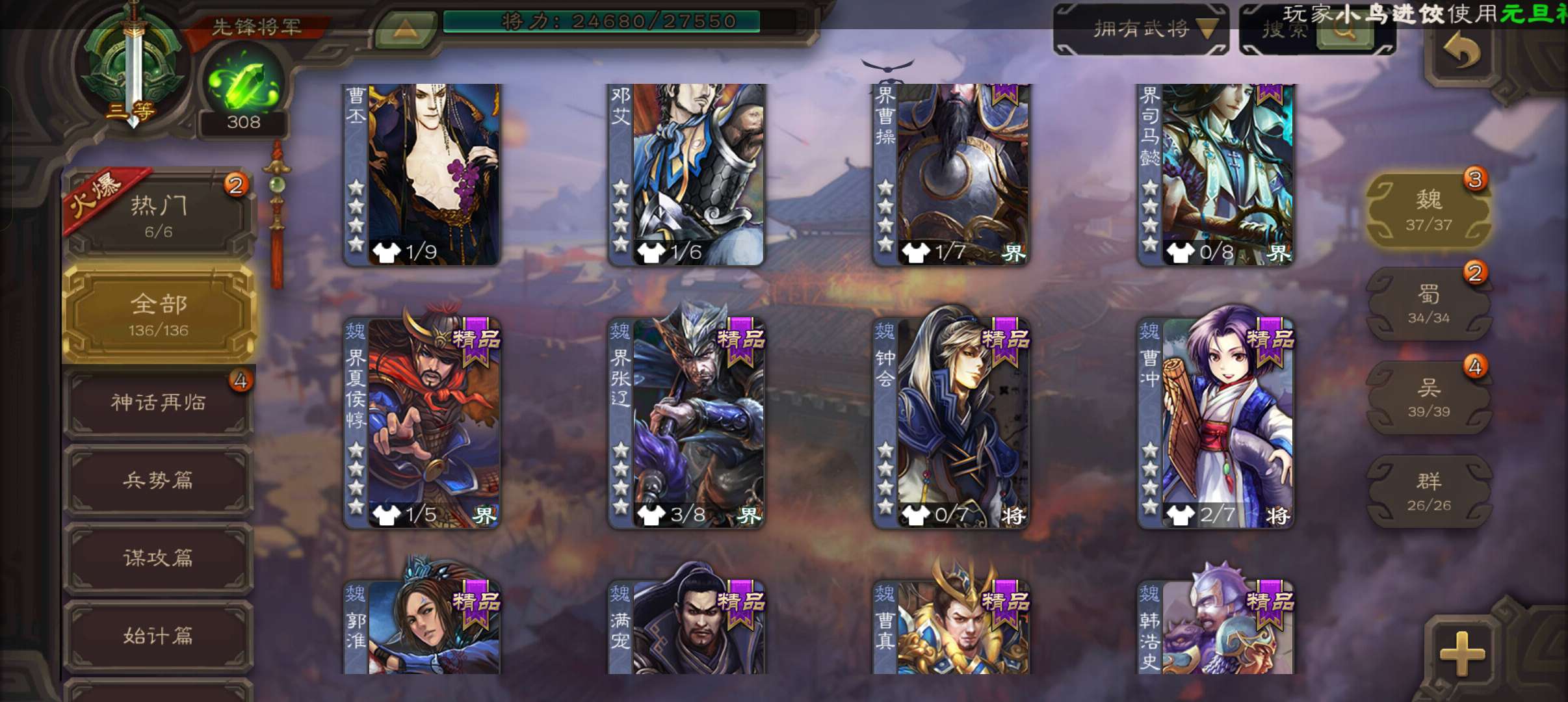 5.9万豆,回廊动态王元姬界钟会双史诗先锋,谋卢植霍峻谋韩当关银屏136将