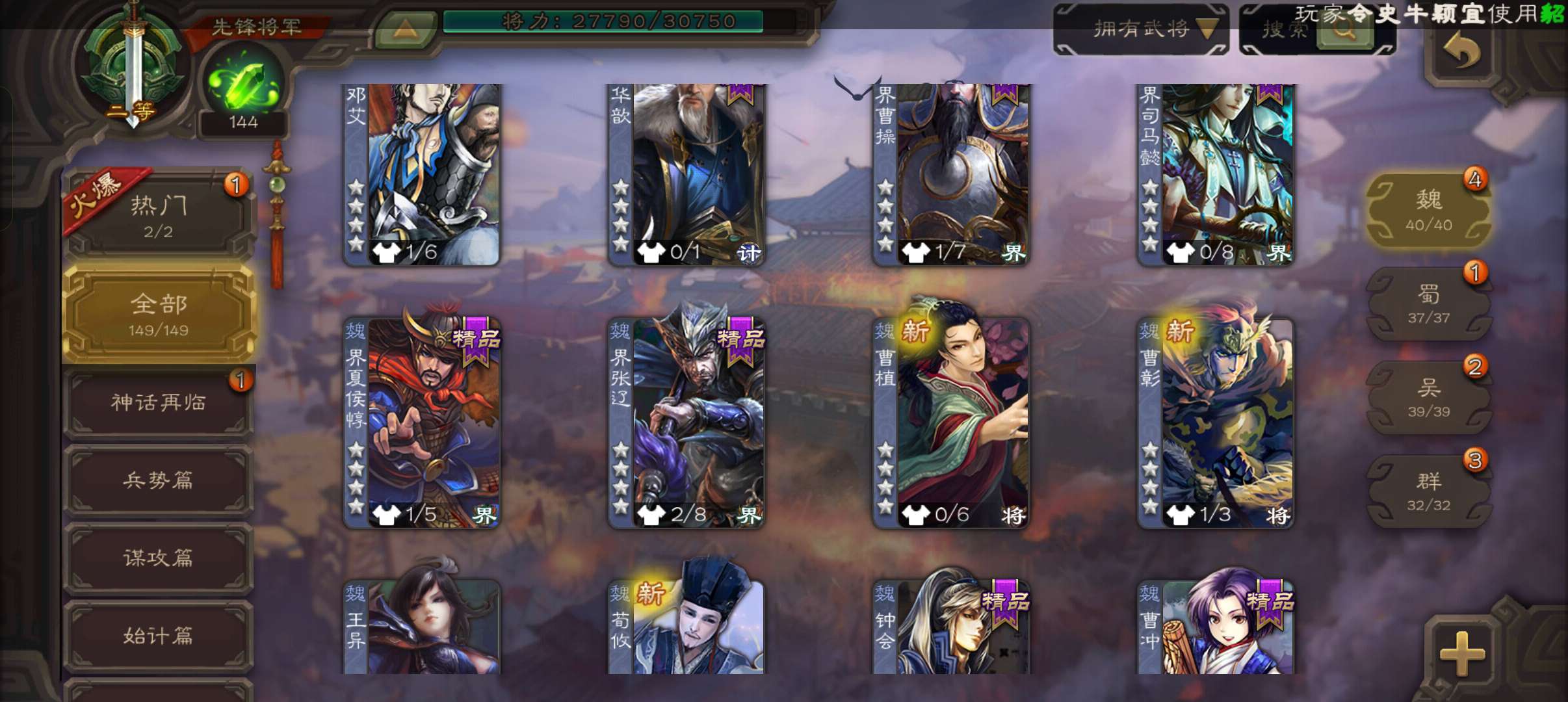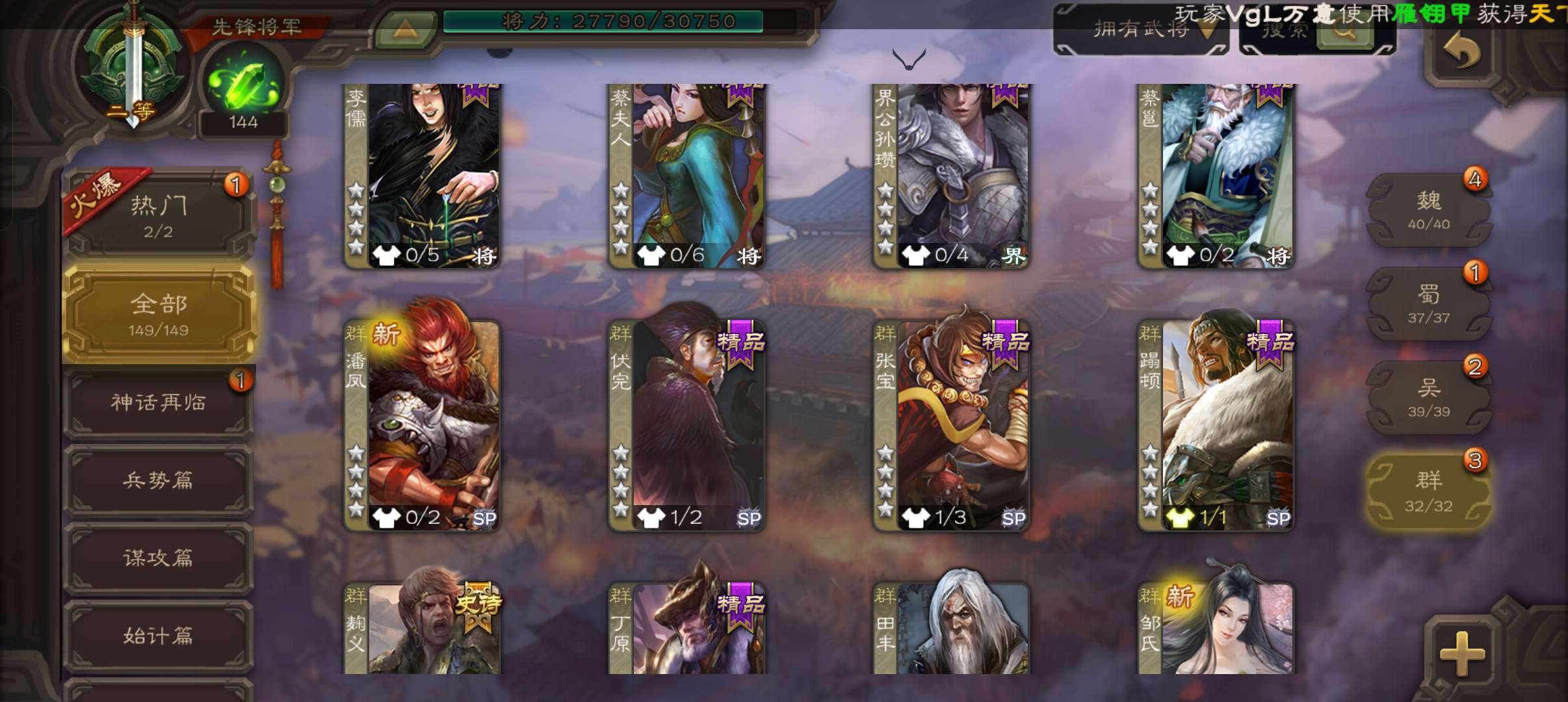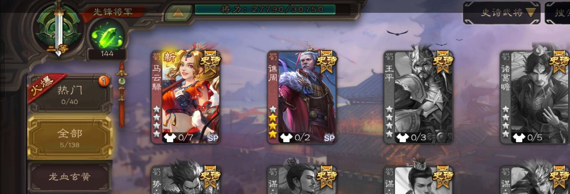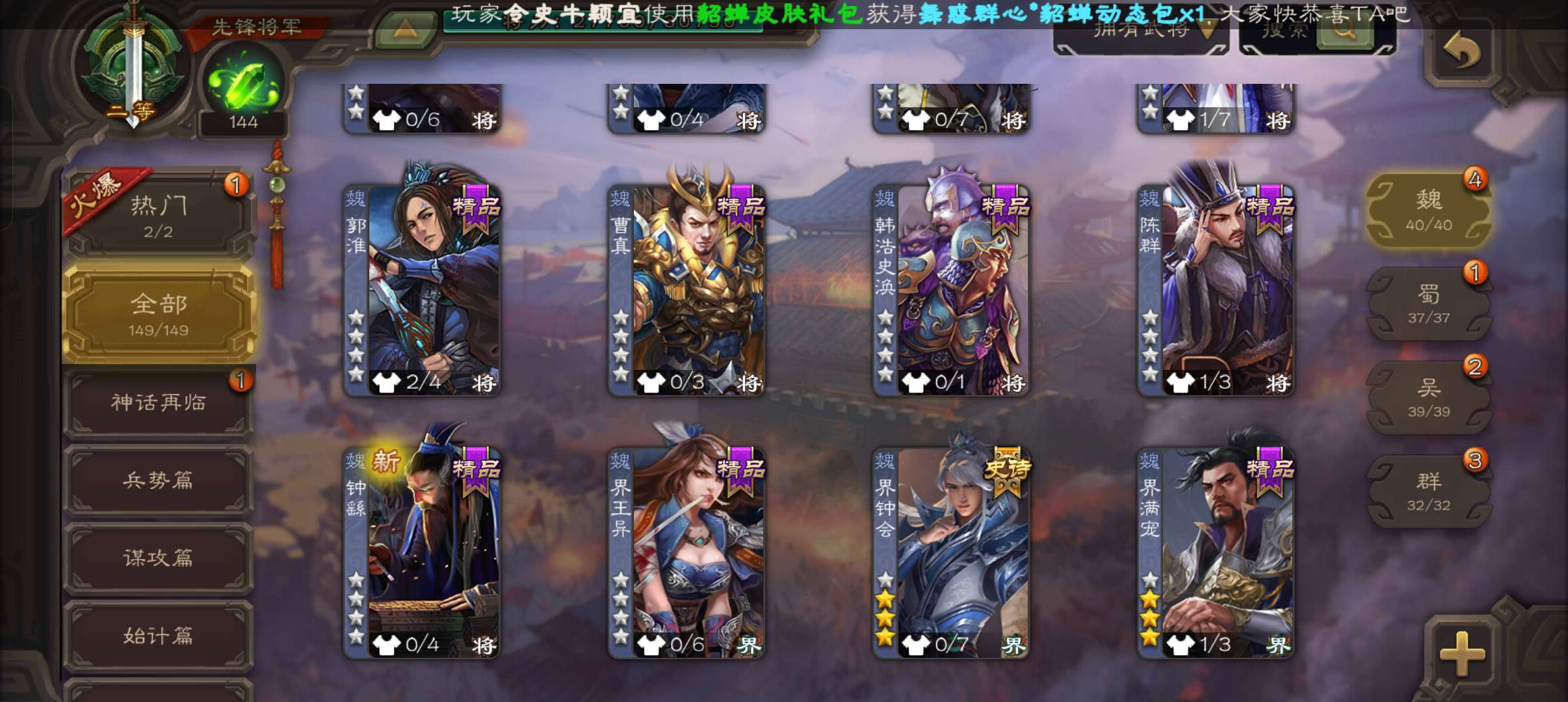 5史诗先锋,6万豆回廊动白马界钟会神刘备谯周马云騄,甘夫人界吕布势田丰界满宠张布149将