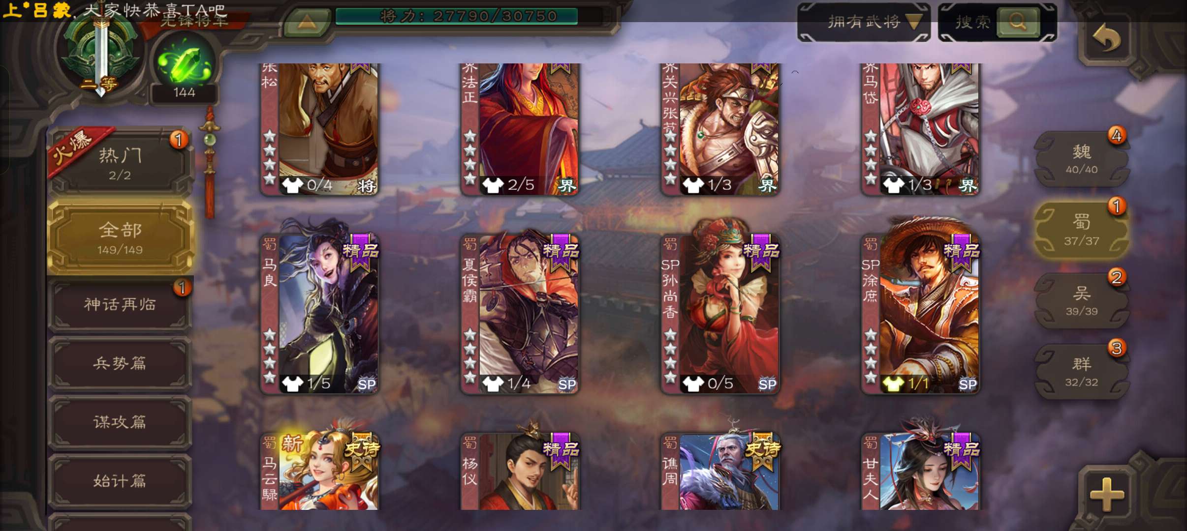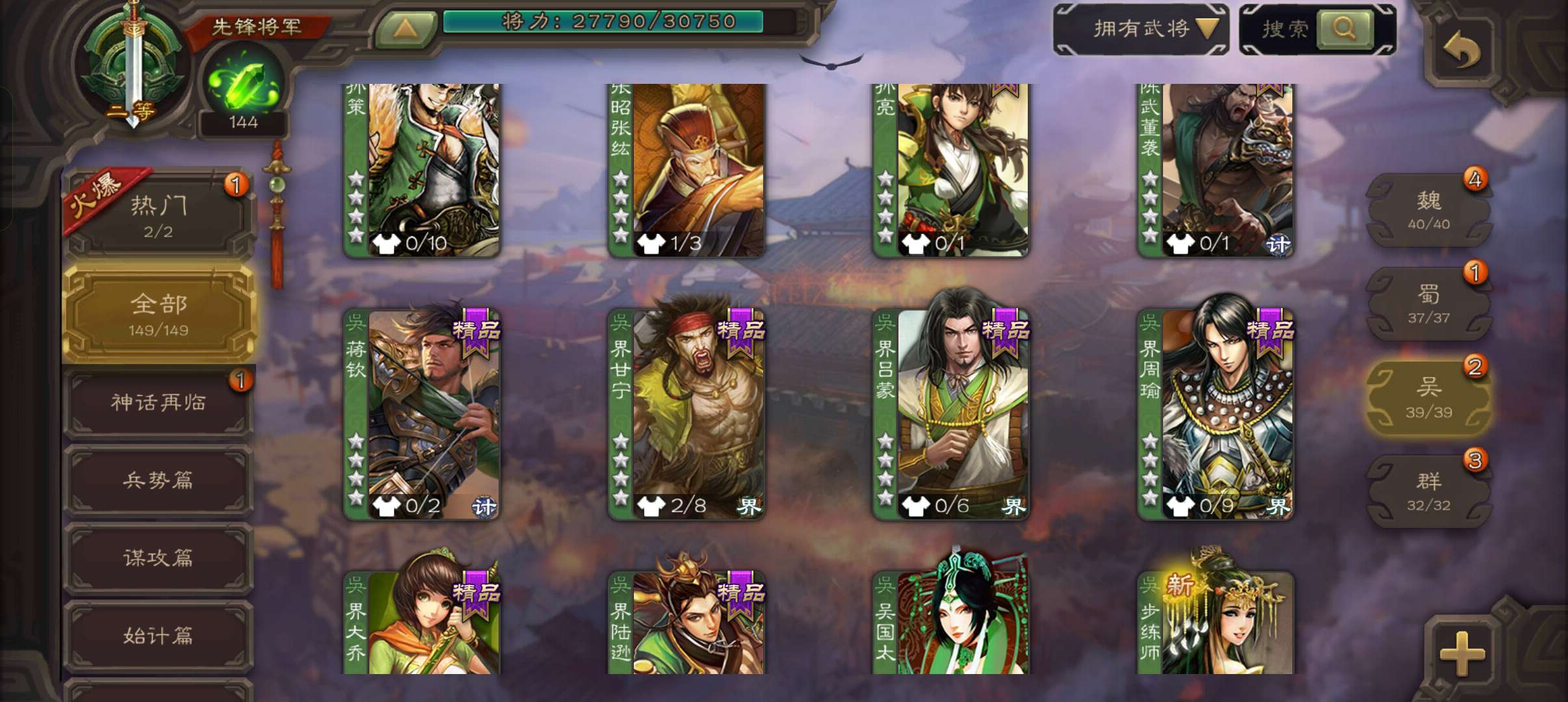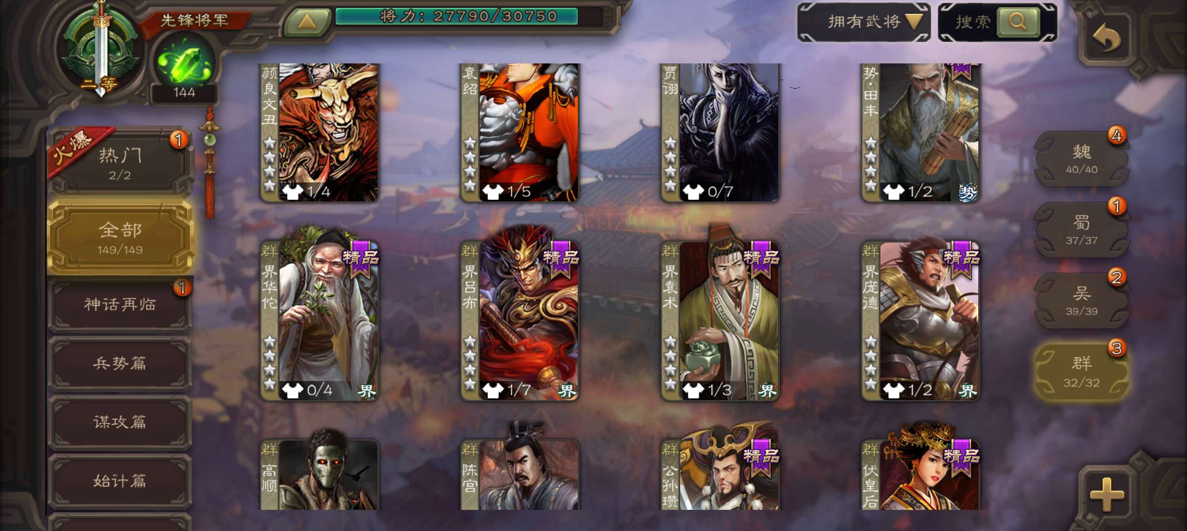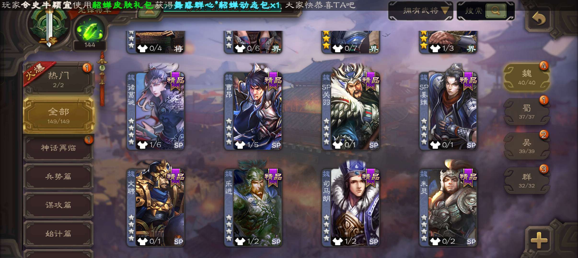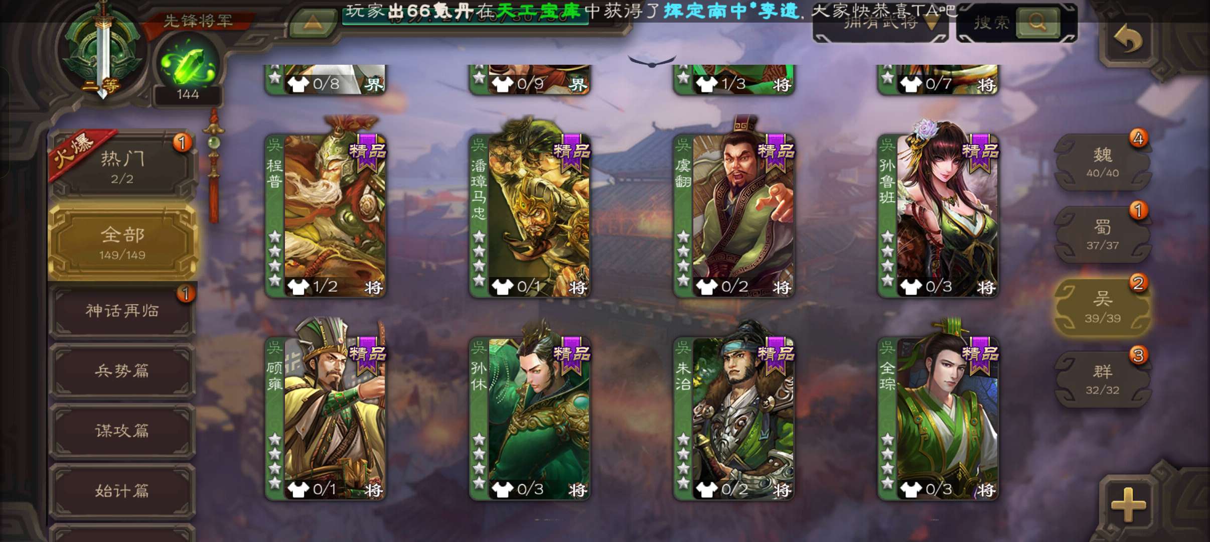 5史诗先锋,6万豆回廊动白马界钟会神刘备谯周马云騄,甘夫人界吕布势田丰界满宠张布149将