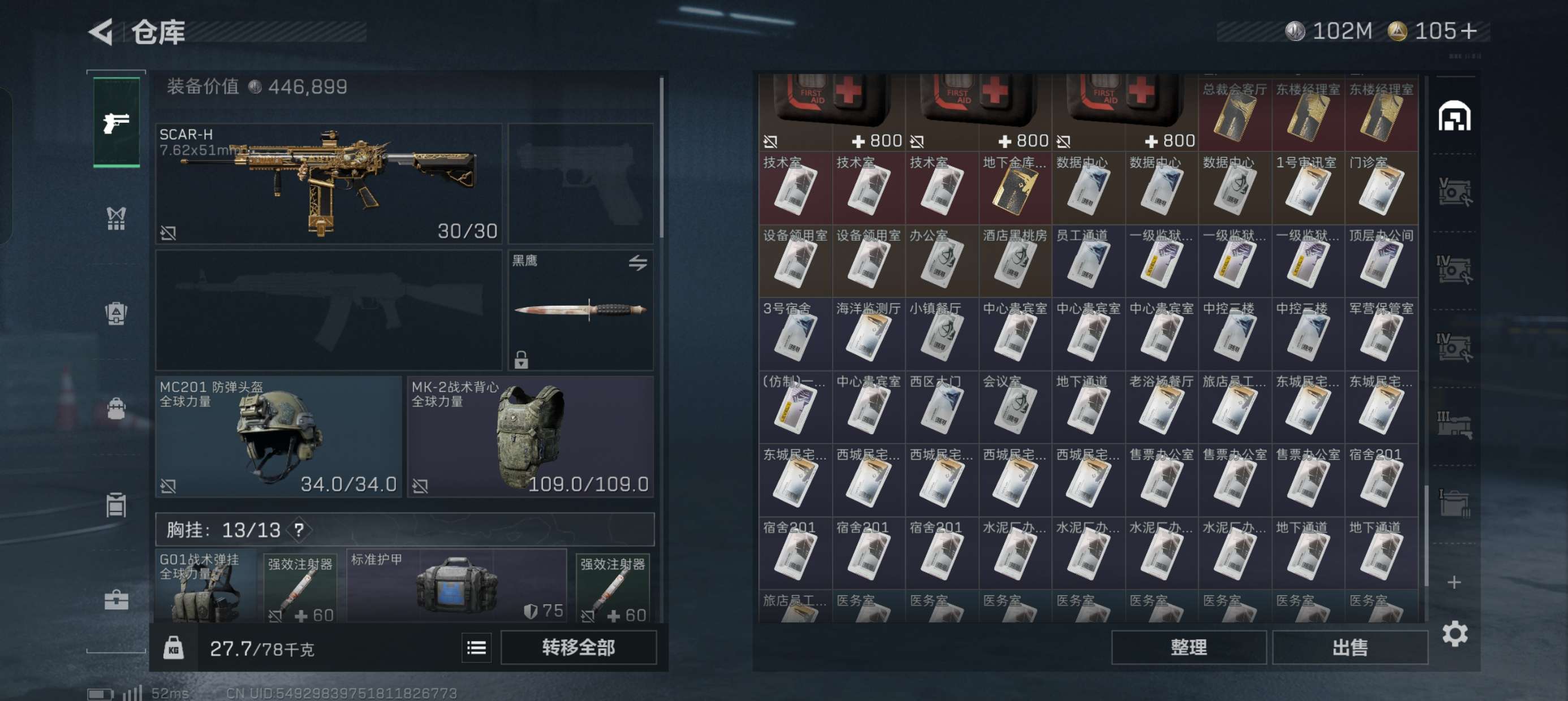 总资产280M,现金112M,体力满级仓库8级,30发aw子弹,保险6格,第一次卖号有看中的老板吗