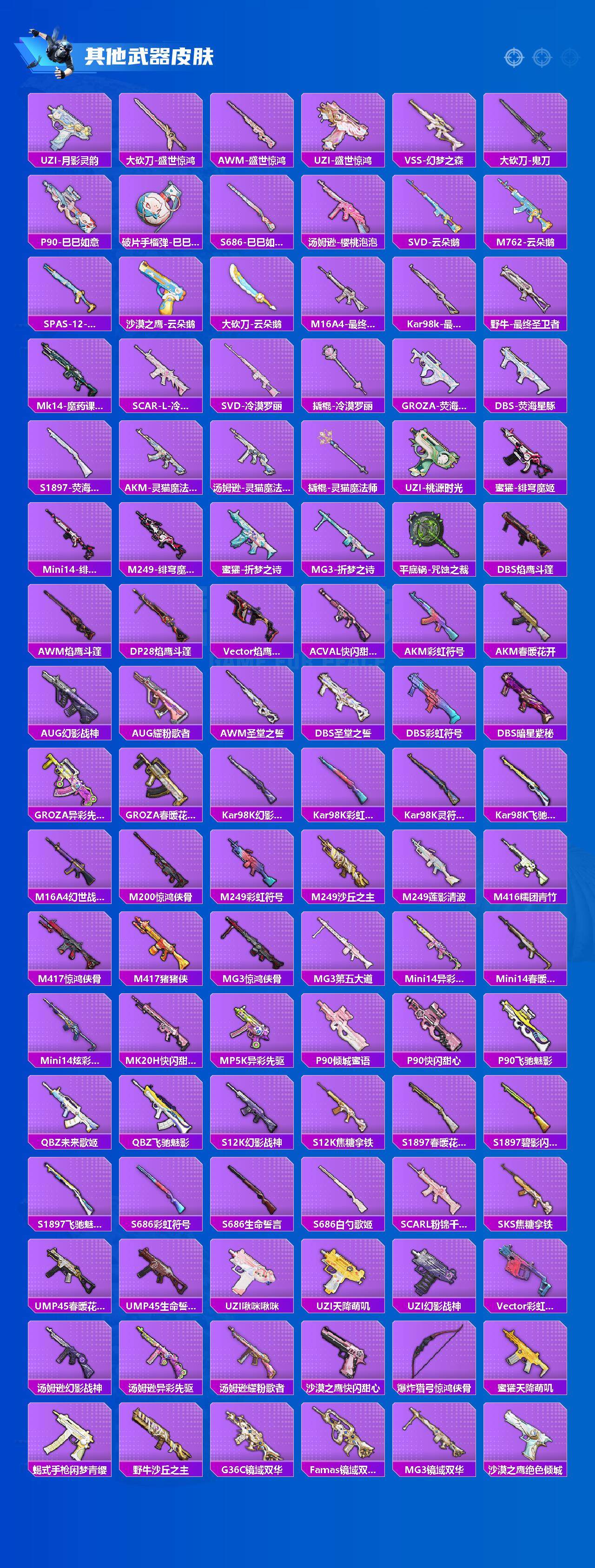 【5154】12粉装-18特效枪-1载具-87388热力值-6印记-126套装-206枪皮【角色神装】:镜域双华-欧若拉,灵猫魔法师-塞维尔,盛世惊鸿-云鸾【角色神装等级】:一级灵猫魔法师-塞维尔,一级盛世惊鸿-云鸾,六级镜域双华-欧若拉