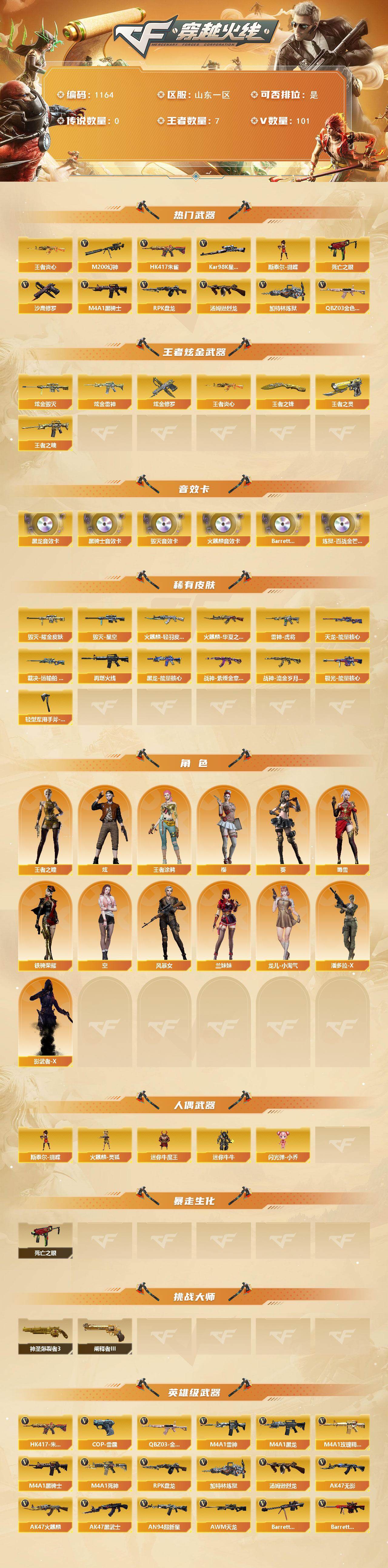山东一区-101V-7王者-5炫金【热门武器】:QBZ03-金色蔷薇,HK4