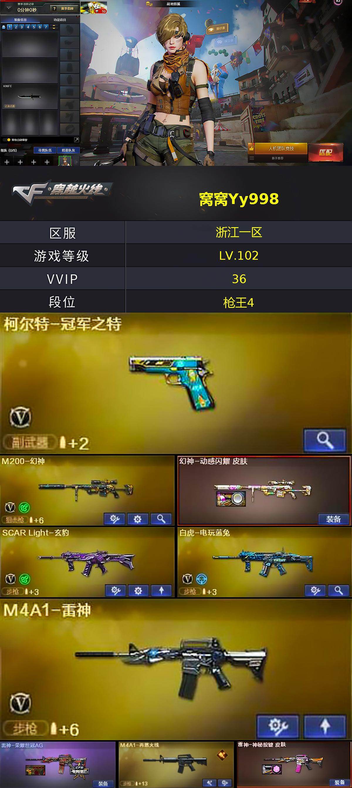 浙江一区-35V-2王者-0炫金【热门武器】:M200-幻神,白虎-电玩蓝兔