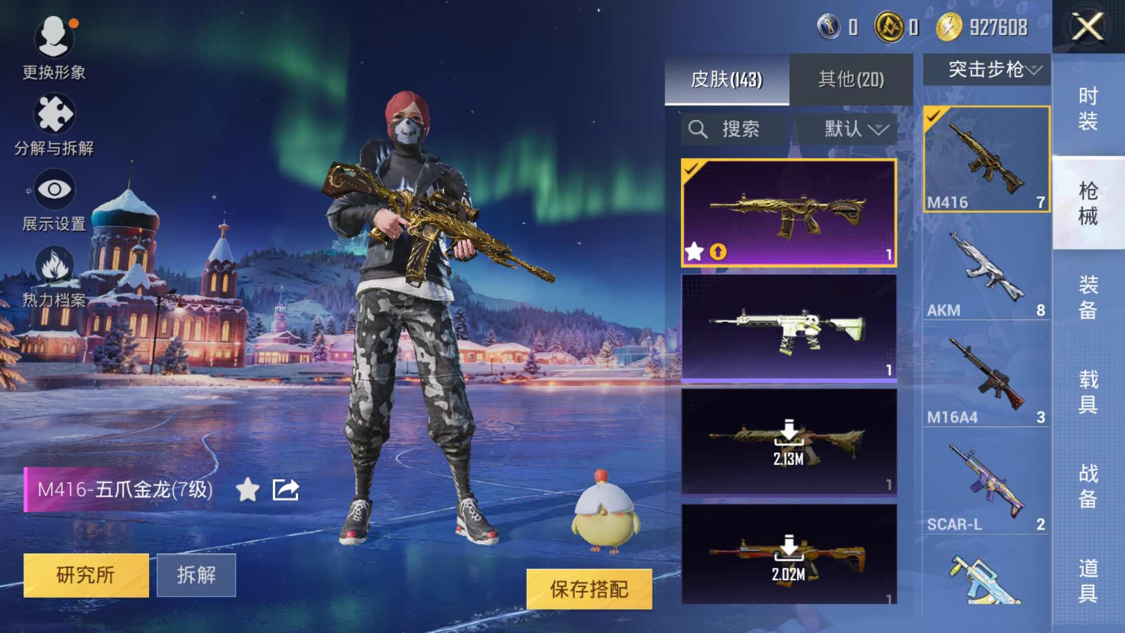 【粉色枪皮等级】:M416-五爪金龙(七级),Kar98K-巳巳如意(五级),AWM-花间之火(七