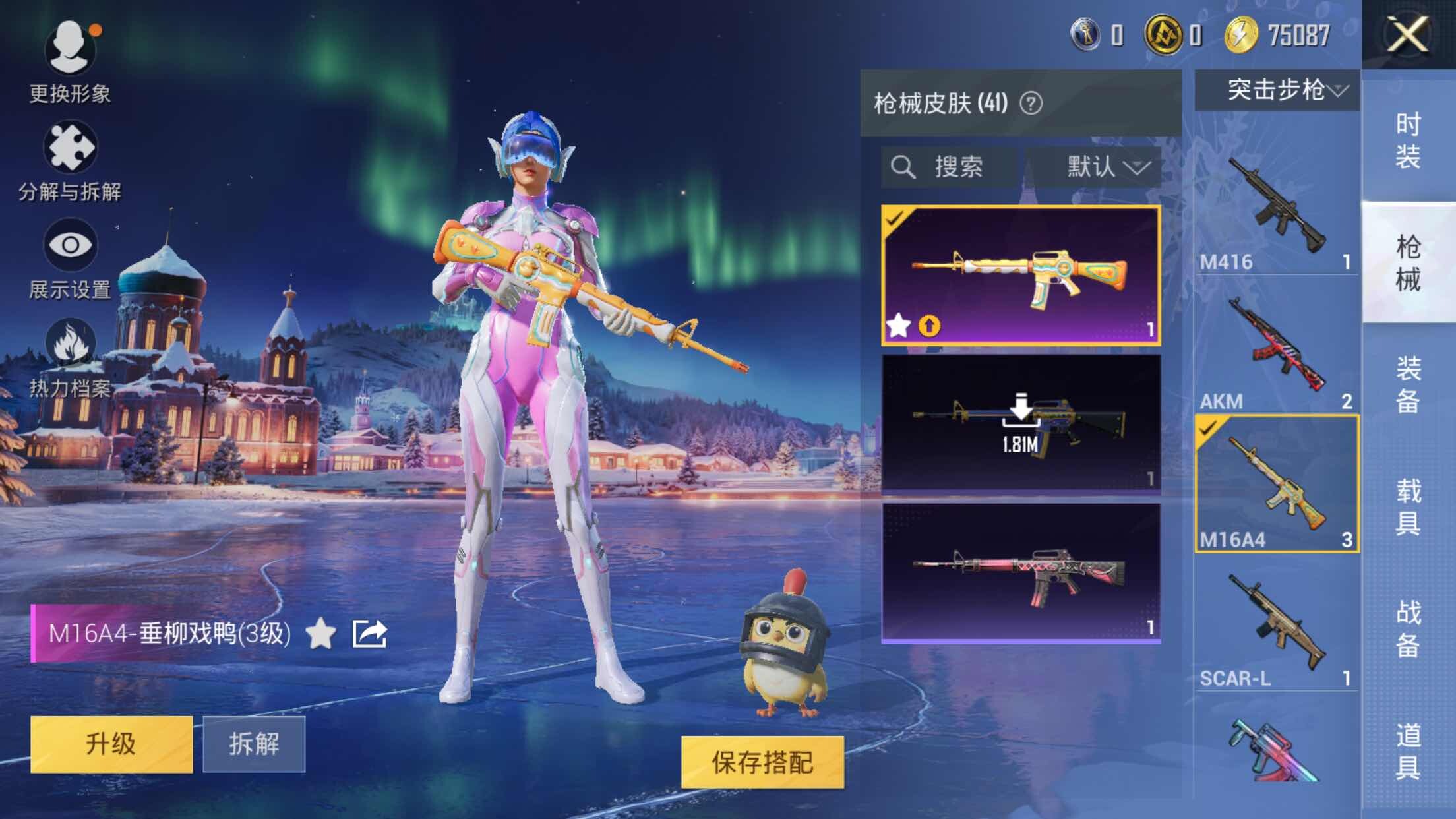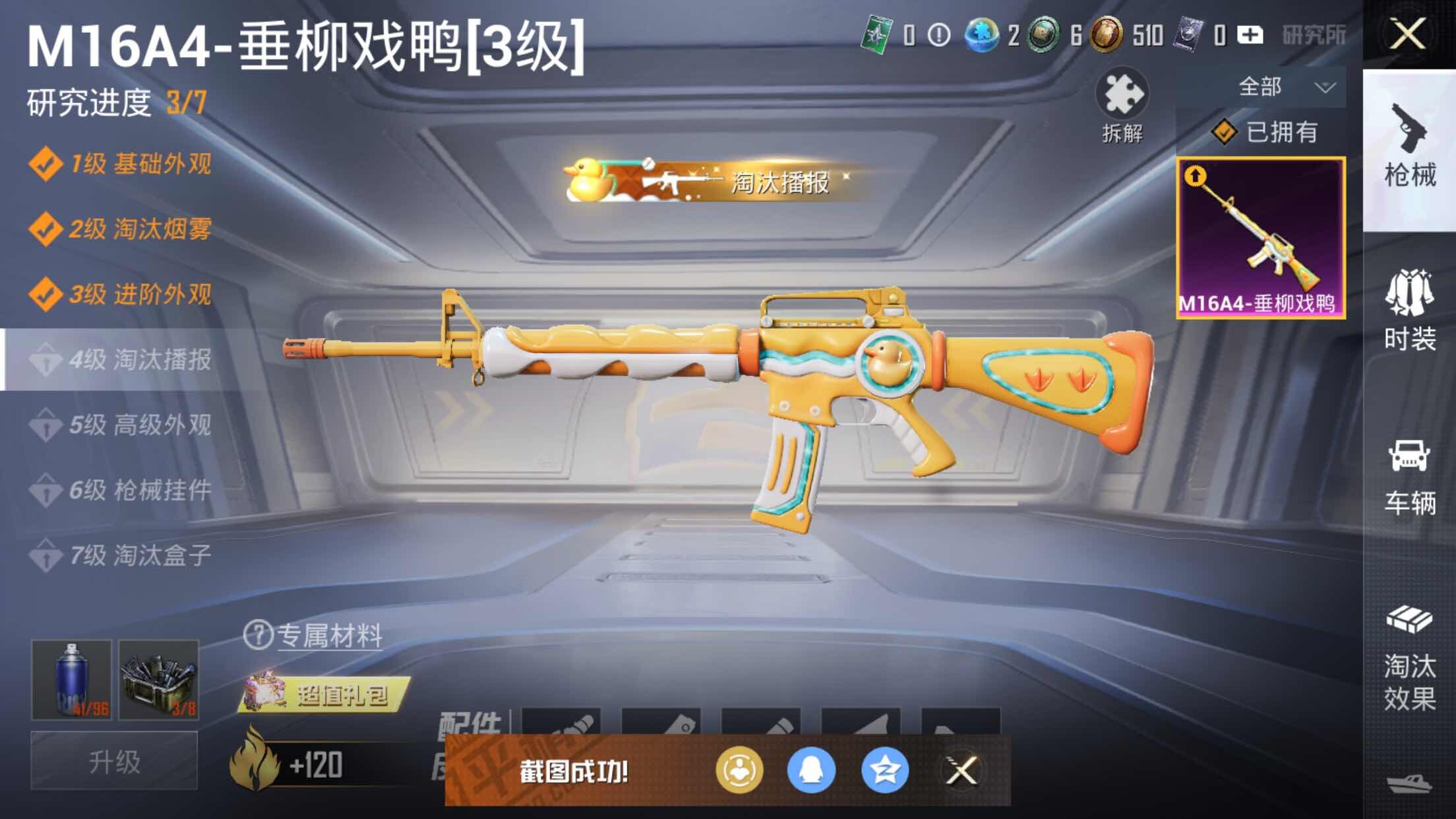 【粉色枪皮等级】:M16A4-垂柳戏鸭(三级)