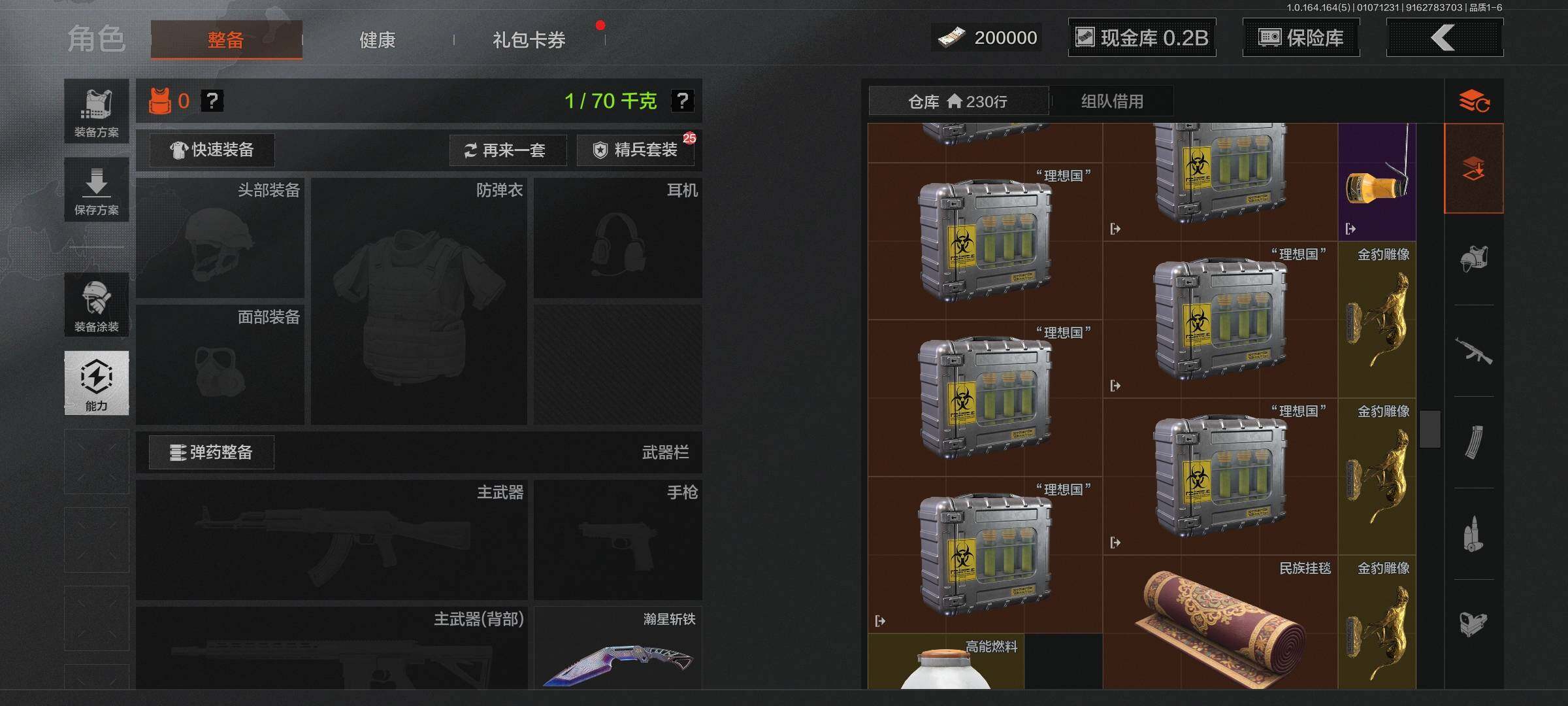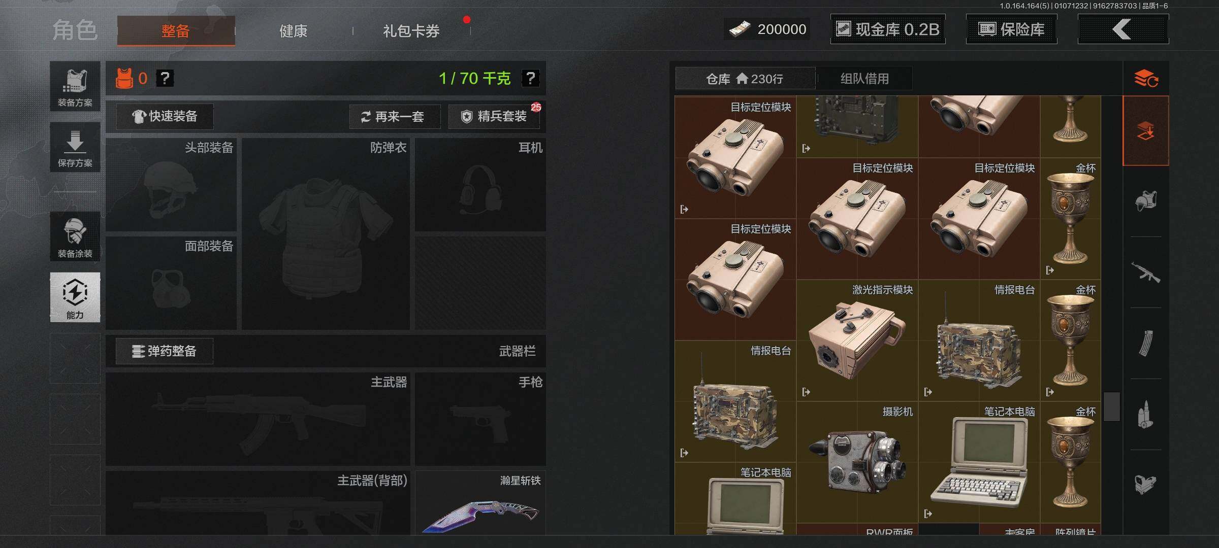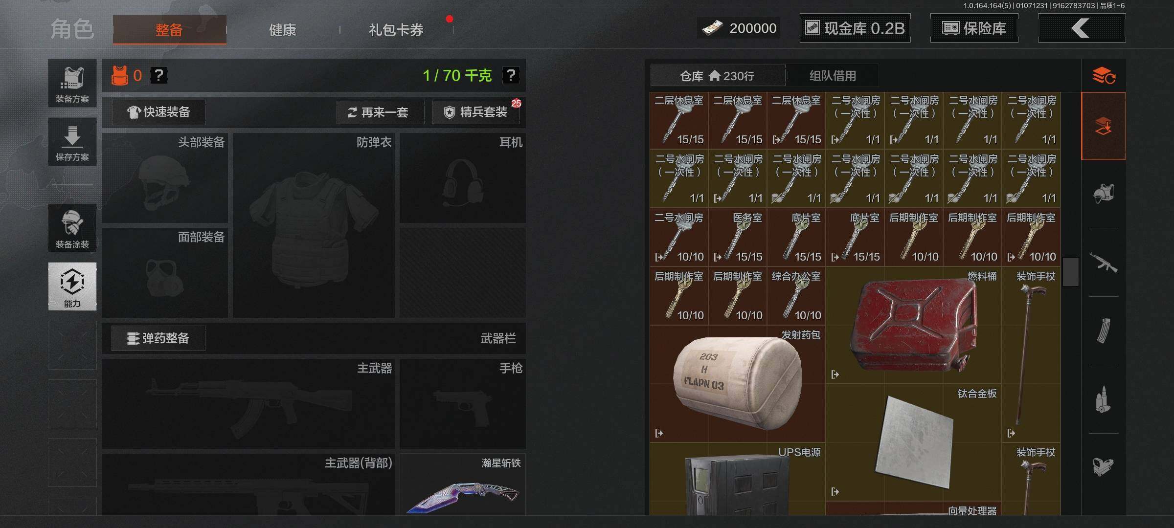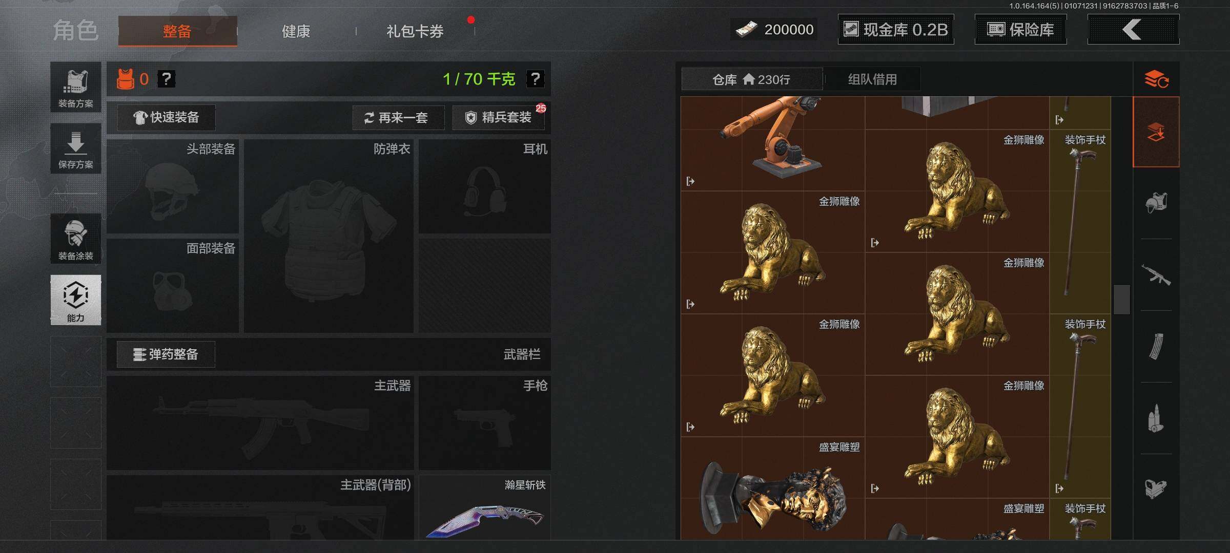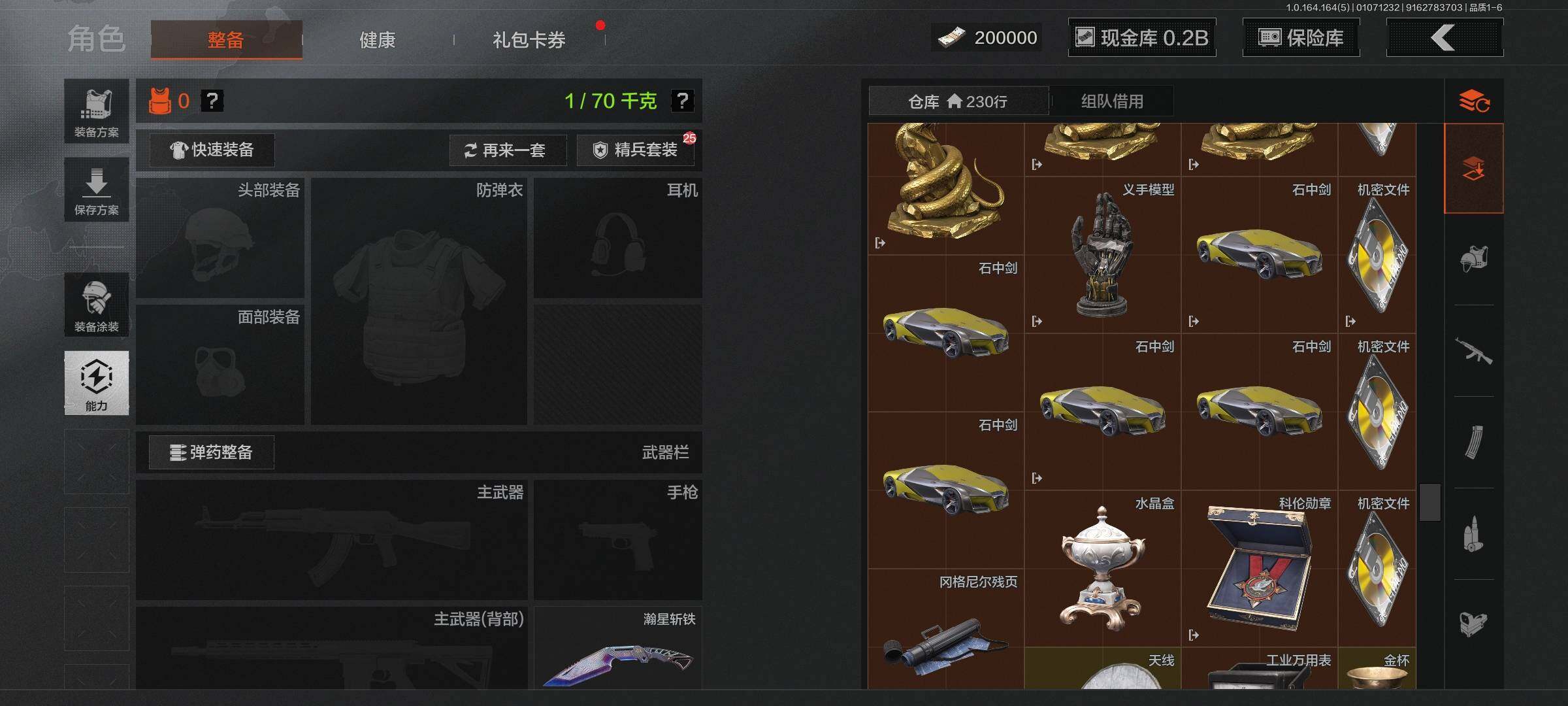 仓库价值(百万):305/柯恩币:173770191/明刀绣春/瀚星斩铁/伦琴幻影FAL/旗帜AEK