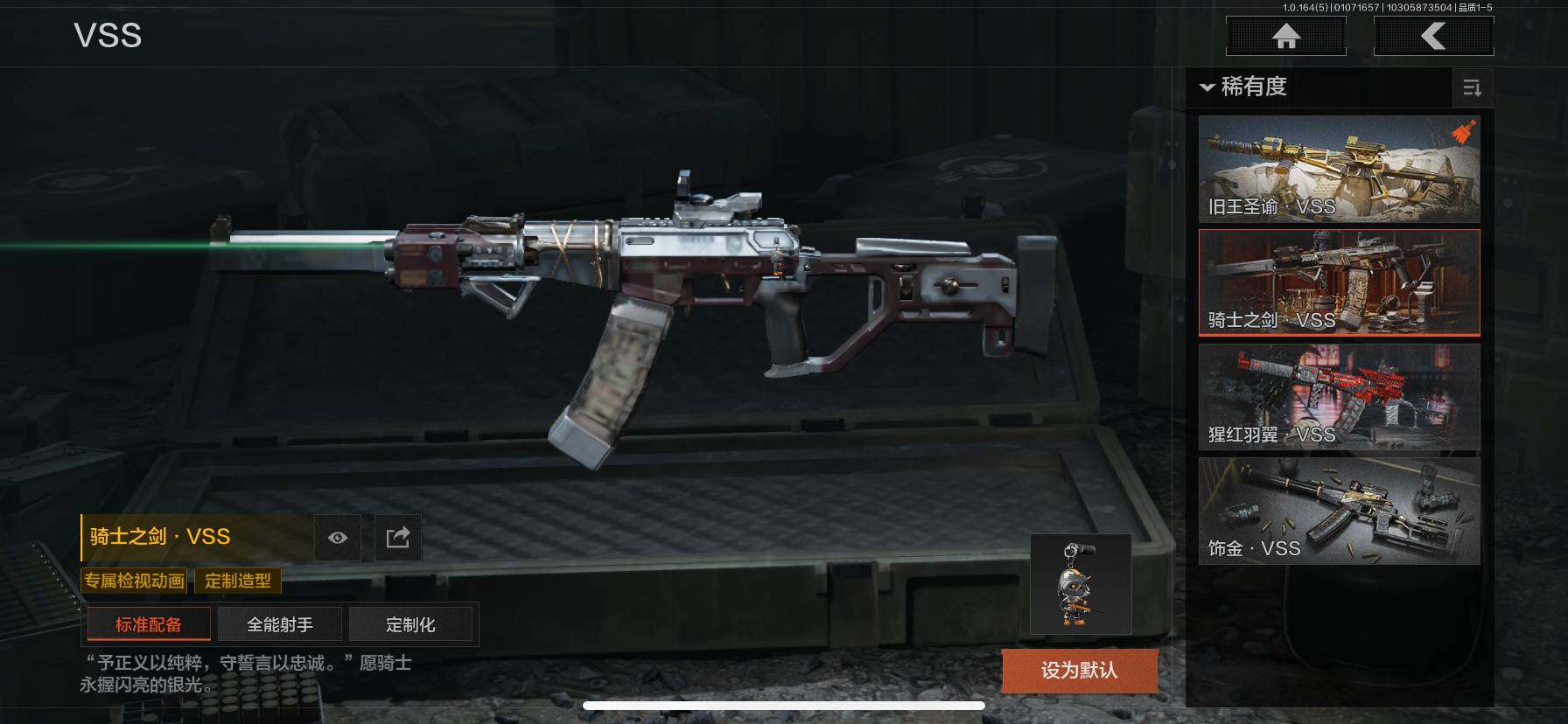 【AQZG890】等级:30/段位:暗区传说/仓库价值(百万):5/瑞兔折刀/涂鸦利刃/冥河/深潜行者II/火绒塔莉娅/脉冲马克西姆/竞技FAL/战术大师AN94/旗帜AEK/旧王圣谕QBZ191/利齿风暴MPX/旧王圣谕VSS/骑士之剑VSS/棱光裂变QBU191/骑士之剑AX50/伦琴幻影AX50栓动步枪/骑士典范艾尔熙德