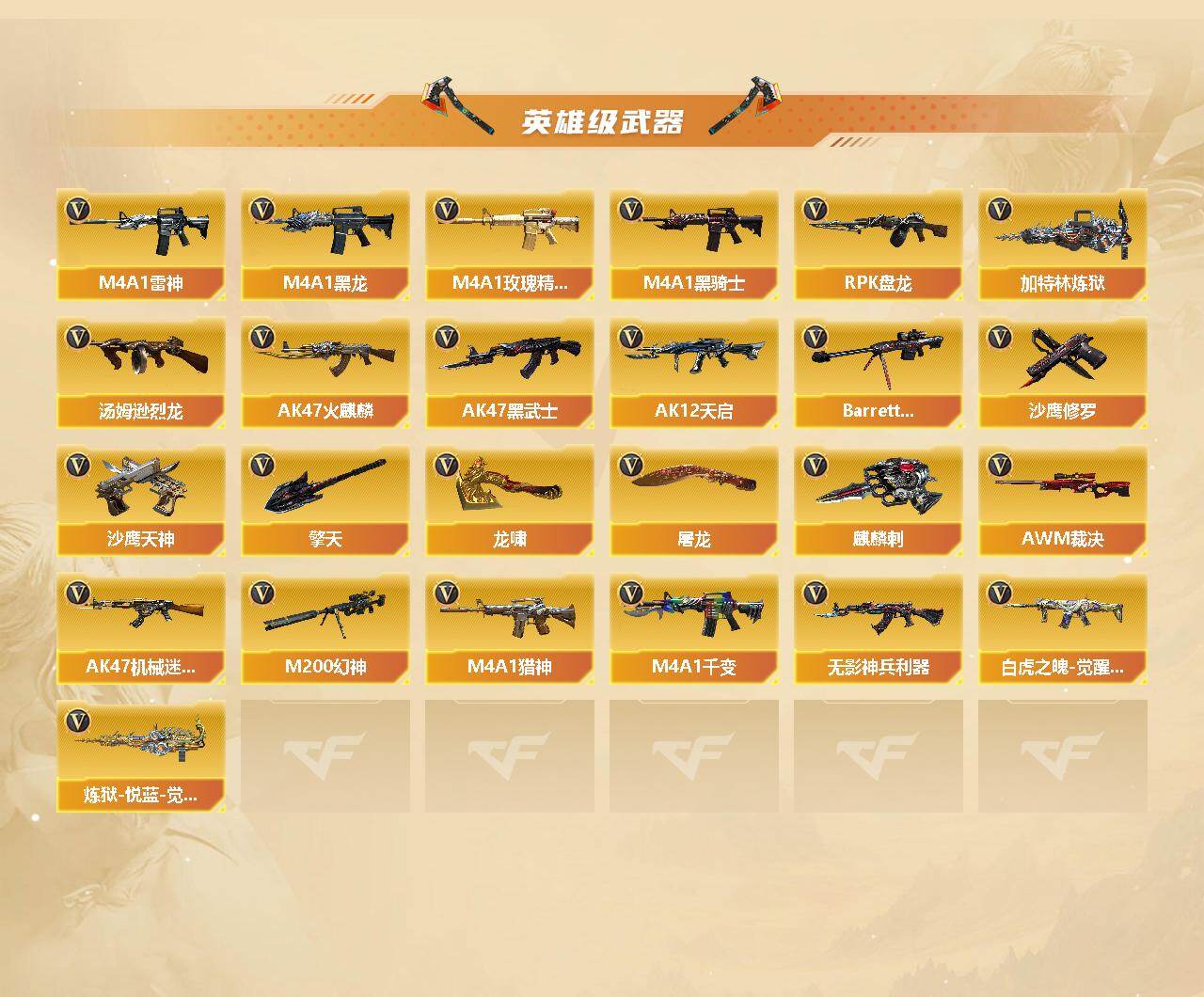 【CFX911】45V/100级/元帅/1传说/6王者/3炫金/2英雄/传说夜影/M200_幻神/死亡之眼/M4A1_黑骑士/汤姆逊烈龙/RPK_盘龙/加特林_炼狱/蝴蝶/沙鹰_修罗/金刚伞/蝴蝶斯泰尔+6烈龙/天启-悦智/玫瑰精灵-悦动/王者之影/炼狱-悦蓝/炫金千变/炫金武士/炫金天龙/Barrett-毁灭音效卡/雷神-暗月/雷神-能量核心/雷神-星空/火麒麟-平天大圣/火麒麟-百城/火麒麟-心动糖果/毁灭耀金皮肤/毁灭-黑大圣皮肤/黑龙-能量核心/黑龙-暗月/黑骑士-暗月/无影-能量核心/