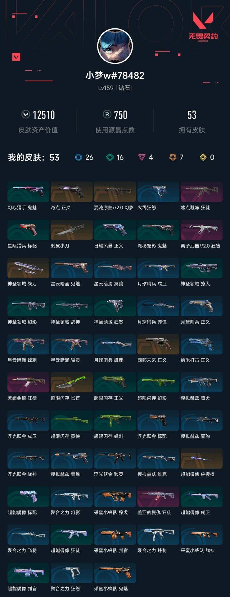 【WWQH143】终极*7/卓越*4/皮肤*53/等级*159/段位:钻石/幻棱/炼狱/维斯/暮蝶/钛狐/壹决/铁臂/捷风/雷兹/幽影/不死鸟/贤者/猎枭/蝰蛇/零/芮娜/奇乐/尚勃勒/霓虹/斯凯/夜露/星礈/K/O/海神/盖可/黑梦/钢锁/近战武器-剥皮小刀/近战武器-超能偶像 应援棒/近战武器-超限闪存 匕首/近战武器-神圣领域 战刀/狂徒-冰点凝冻/狂徒-盖亚的复仇/狂徒-紫阙金琅/狂徒-离子武器//2.0/狂徒-超能偶像/幻影-混沌序曲//2.0/幻影-超限闪存/幻影-神圣领域/幻影-聚