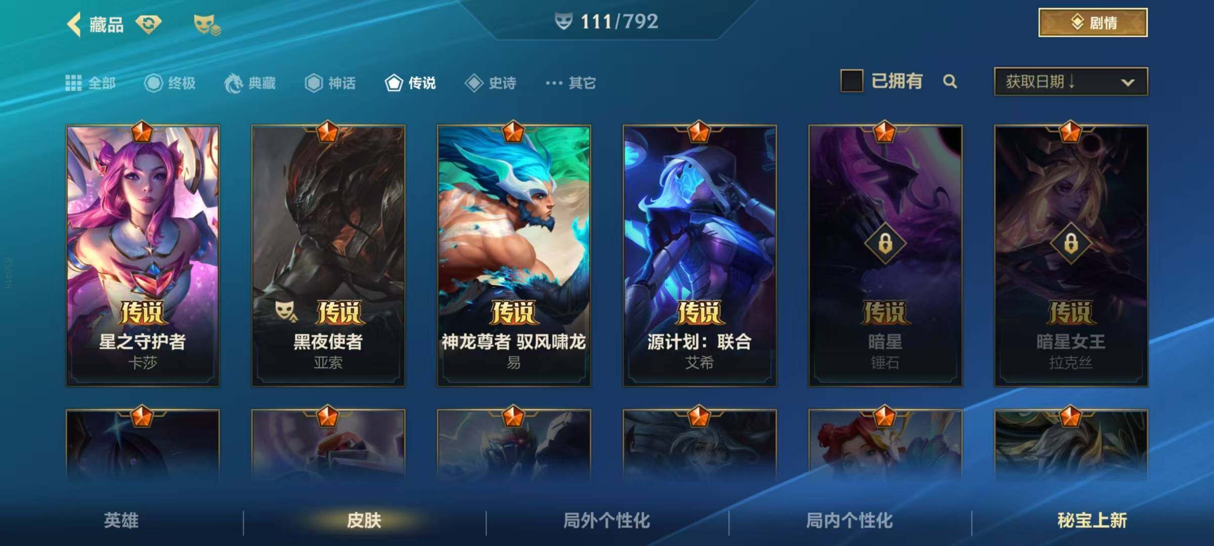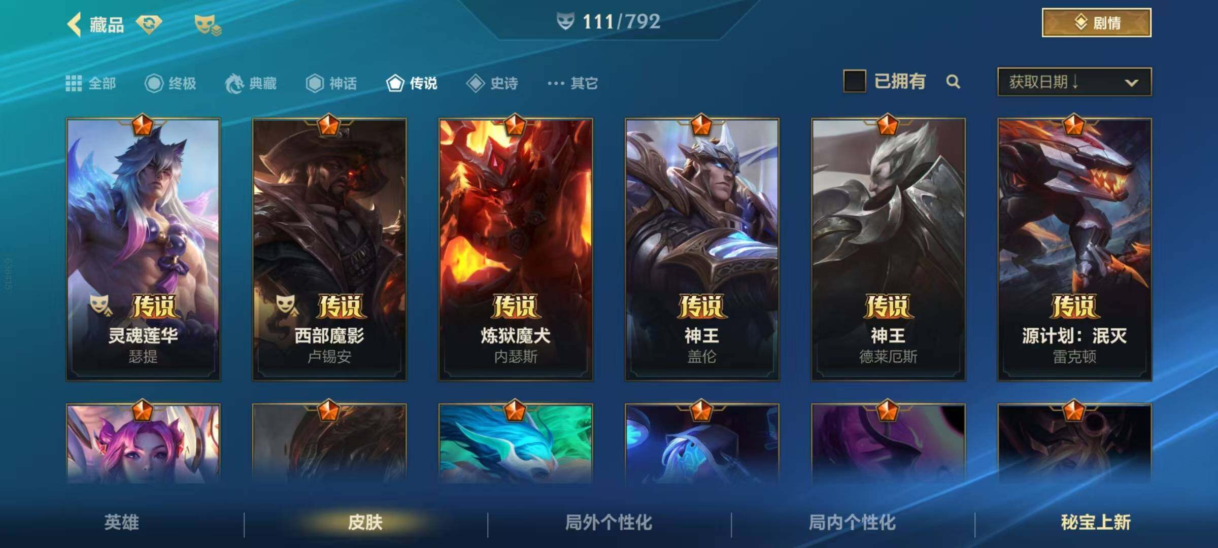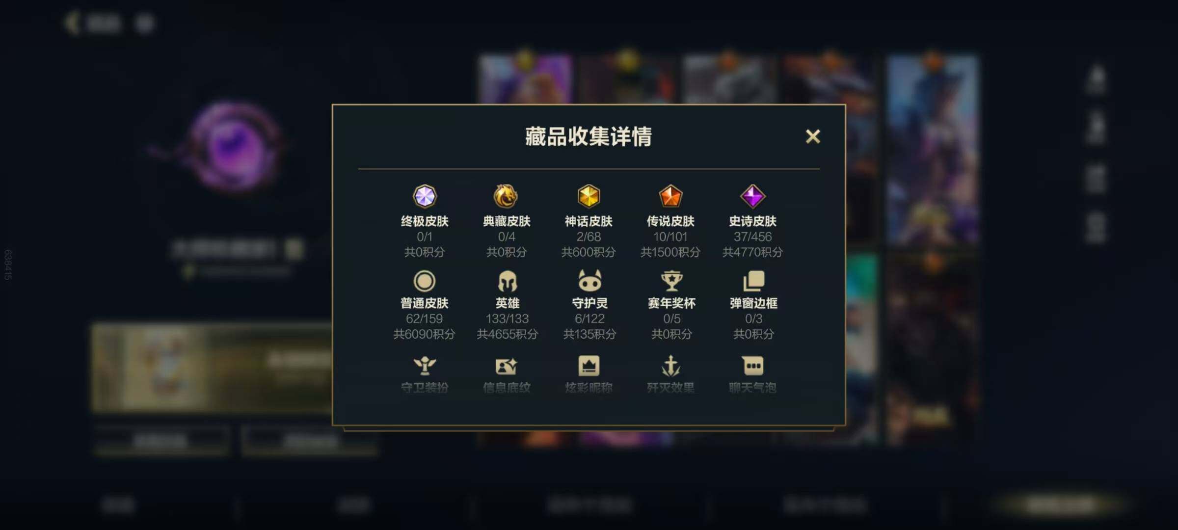 133英雄/111皮肤/2神话/10传说/37史诗
