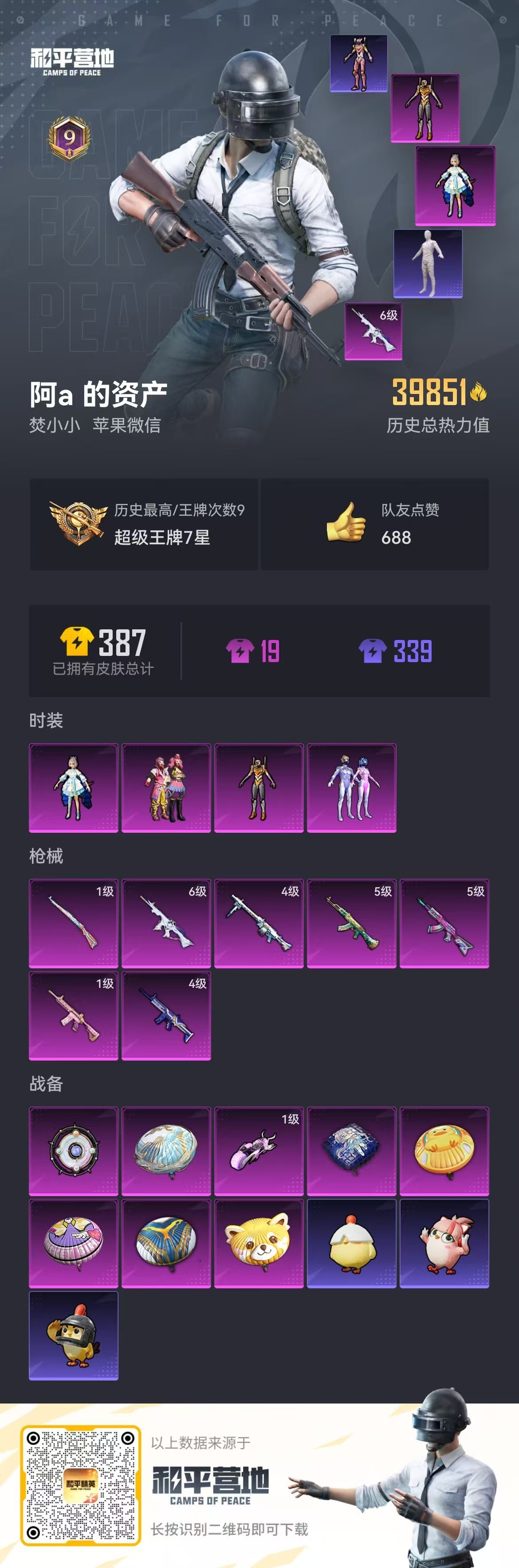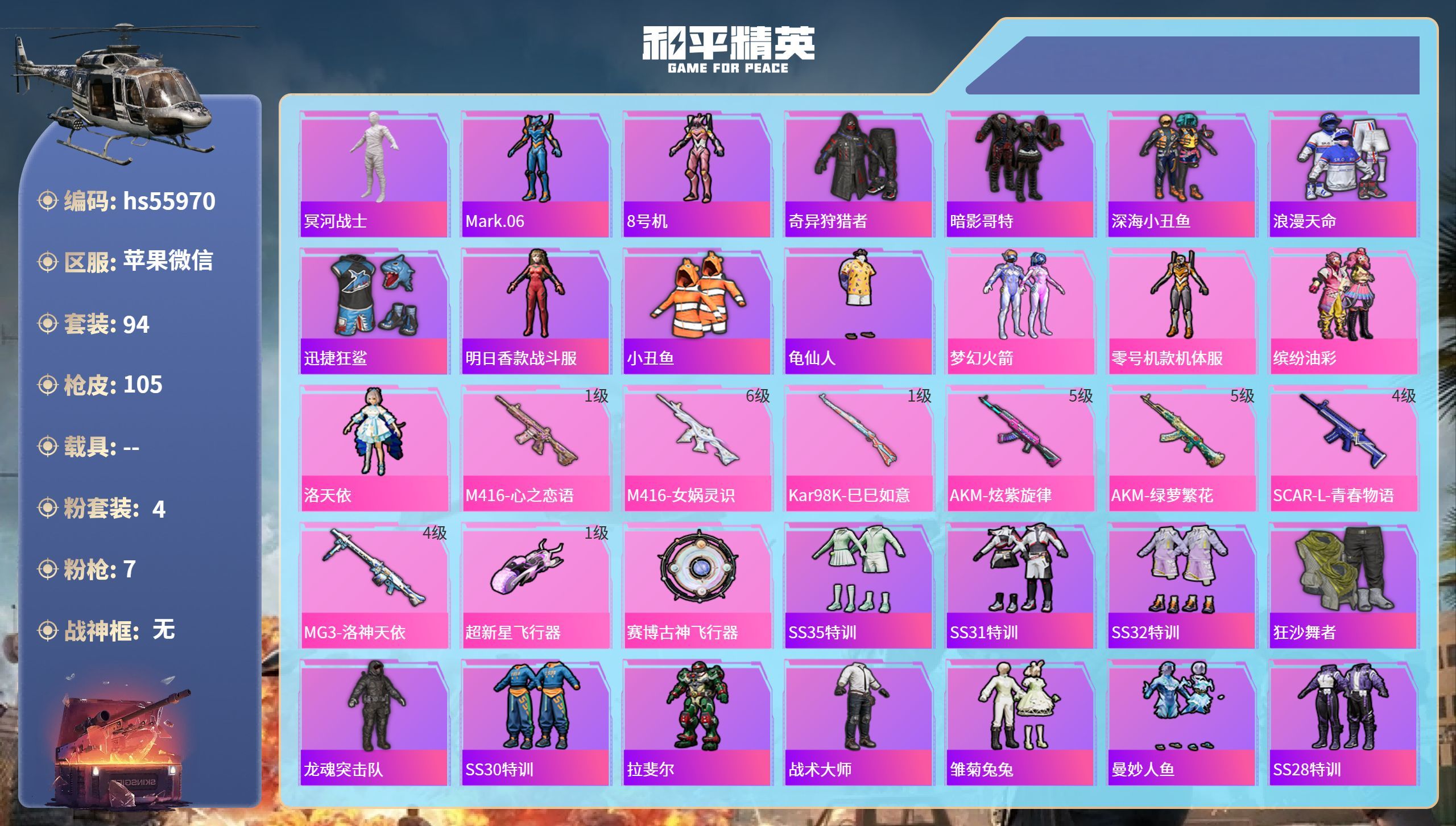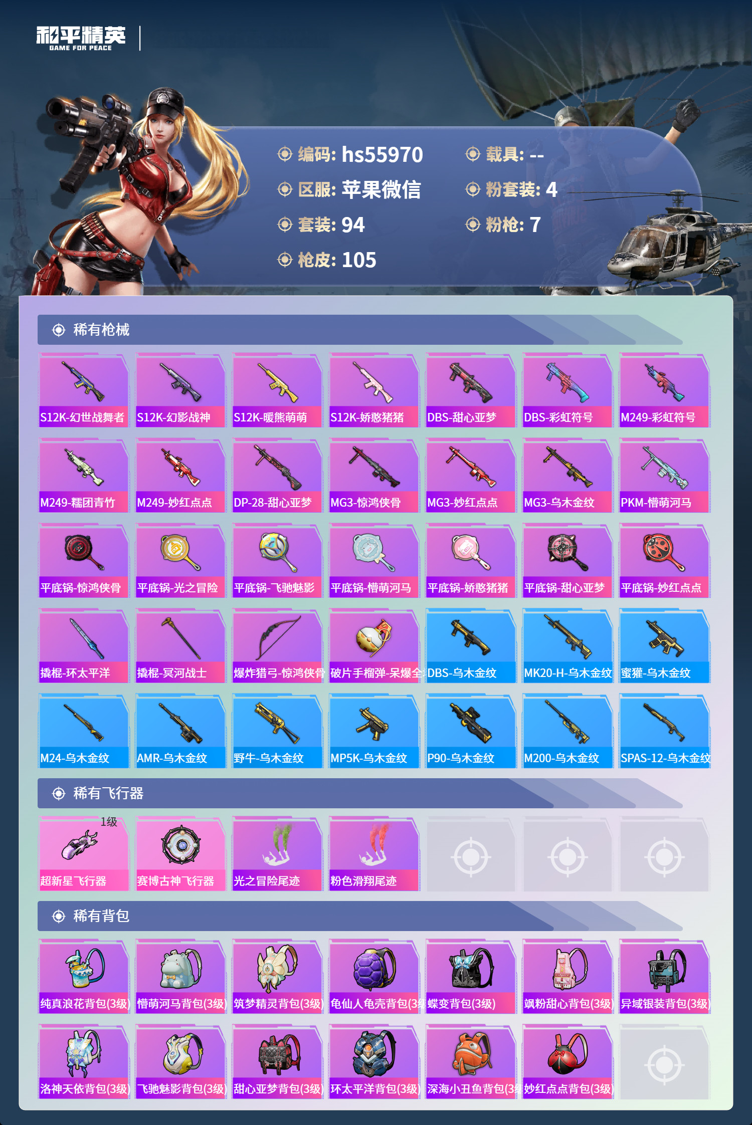 hs55970 苹果微-9王牌印记-4粉装-7特效枪-39852热力值-94套装-105枪皮【4粉