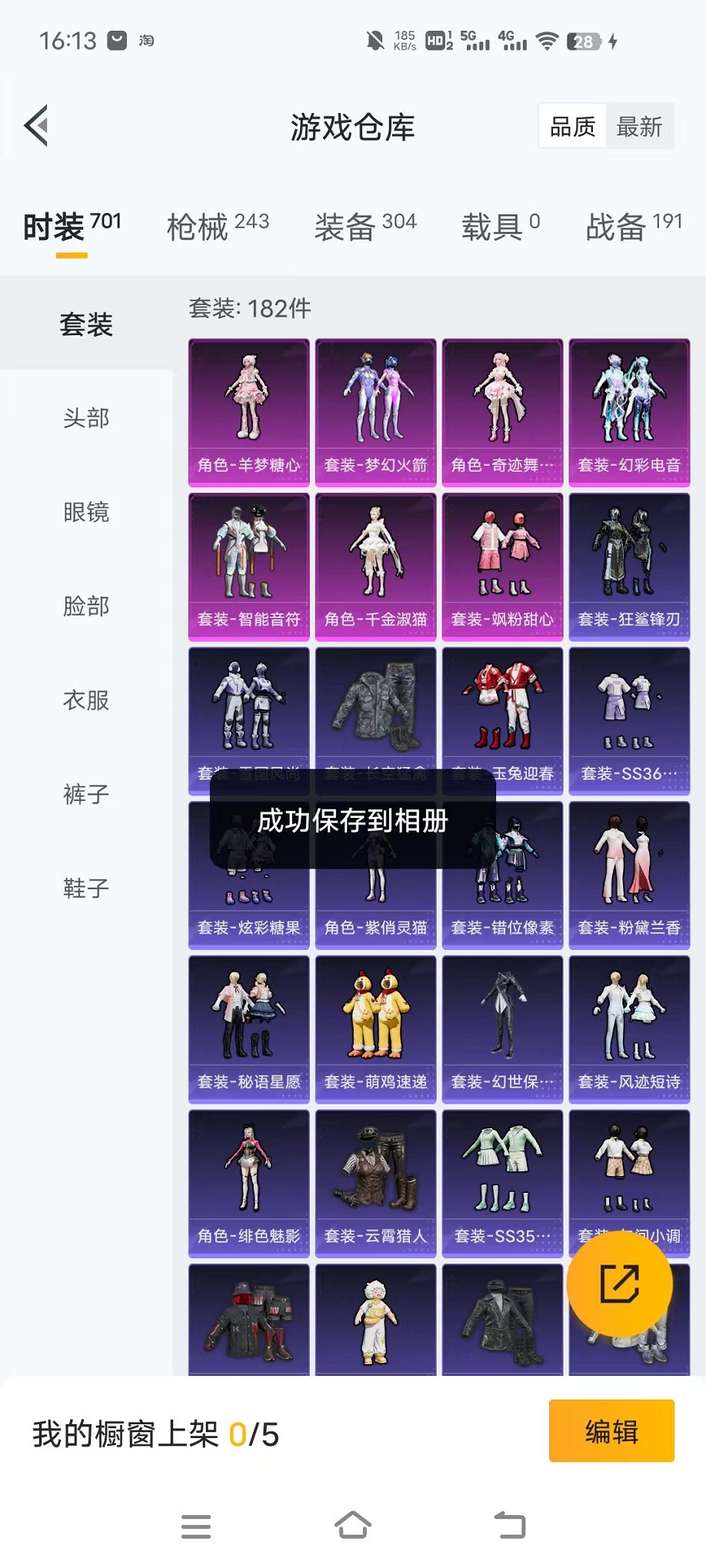 873-【女号 胖达梦幻 7粉装14特效枪可秒换绑】 安卓Q区-74247热力值-16印记-182套装-243枪皮 【1稀有】 胖达圆圆【7粉装】 梦幻火箭 飒粉甜心 智能音符 幻彩电音 角色-千金淑猫 角色-奇迹舞步 美雪 角色-羊梦糖心【15特效枪】 AUG-圣斗士星矢(7级) SPAS-12-音爆索尼克(5级) AKM-绿萝繁花(5级) M416-电玩时刻(5级) UMP45-量子极限(5级) 破片手榴弹-粉粉猫爪(6级) M762-青锋波束(5级) 烟雾弹-电雾迷城(4级) GROZA-