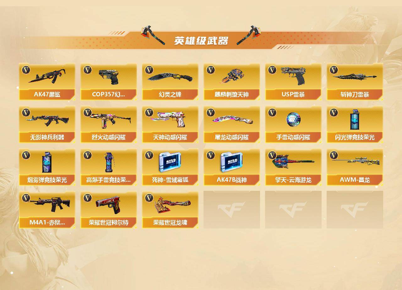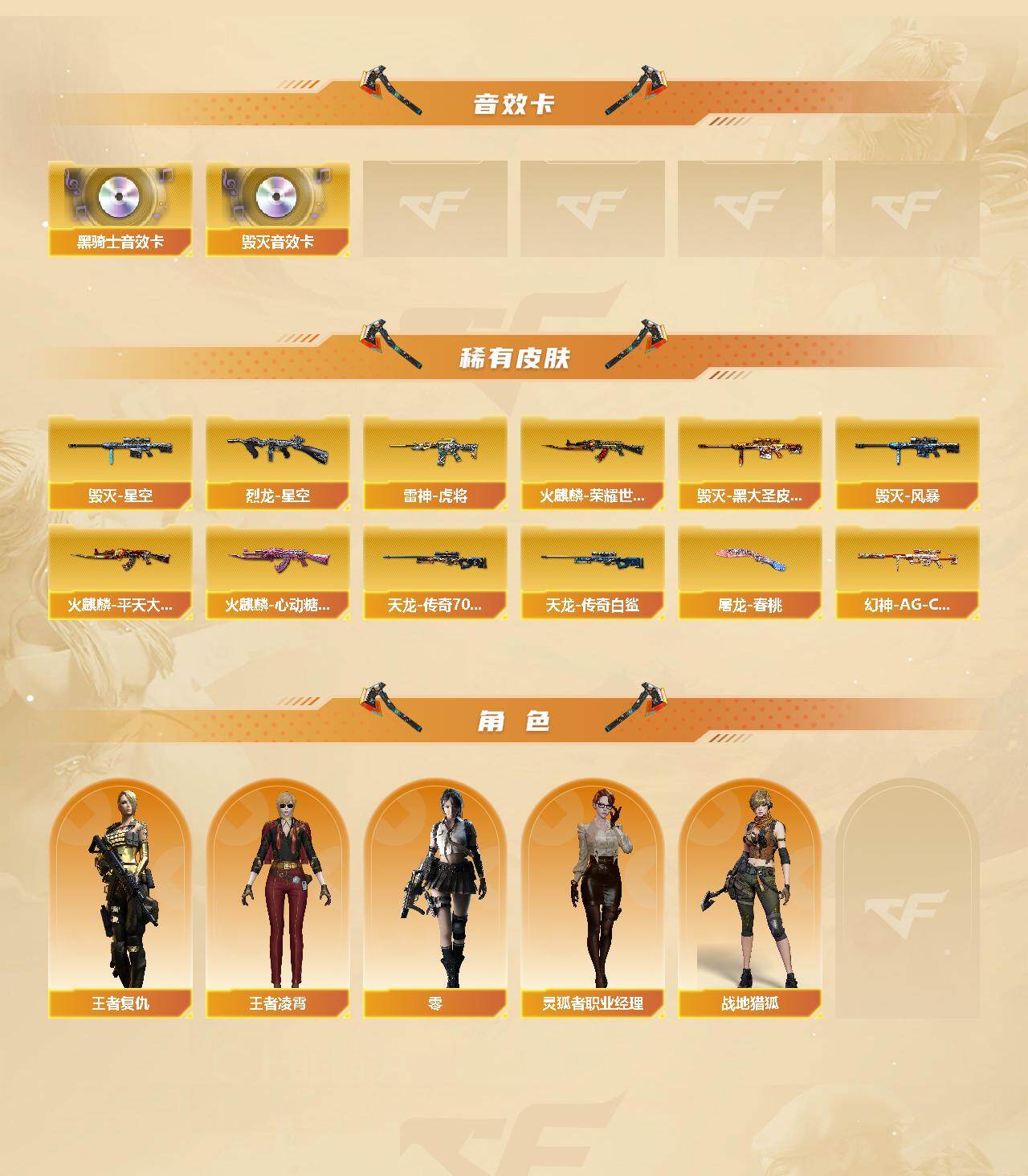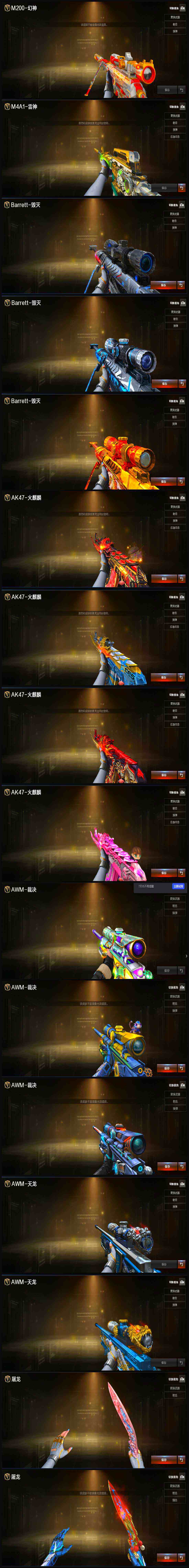 【传说皮肤】 妄想实况 百相守梦 追逃游戏 鹤羽星尊 灼幽烈阳 遇见神鼓 诗剑行 碎云 音你闪耀 超时空战士 仲夏夜之梦 久胜战神 祈雪灵祝 黄金射手座 一念神魔 时之恋人 末日机甲 地狱火 零号·赤焰 乞巧织情 游龙清影 云霓雀翎 启明星使 淬星耀世 武陵仙君 怒海麟威