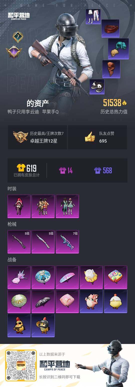 【A1620】苹果【小号/小丑鱼/胖达圆圆/暗影哥特/3粉装-3满特效枪-1粉色飞行器】 手Q--51538热力值-7王牌印记-148套装-169枪皮