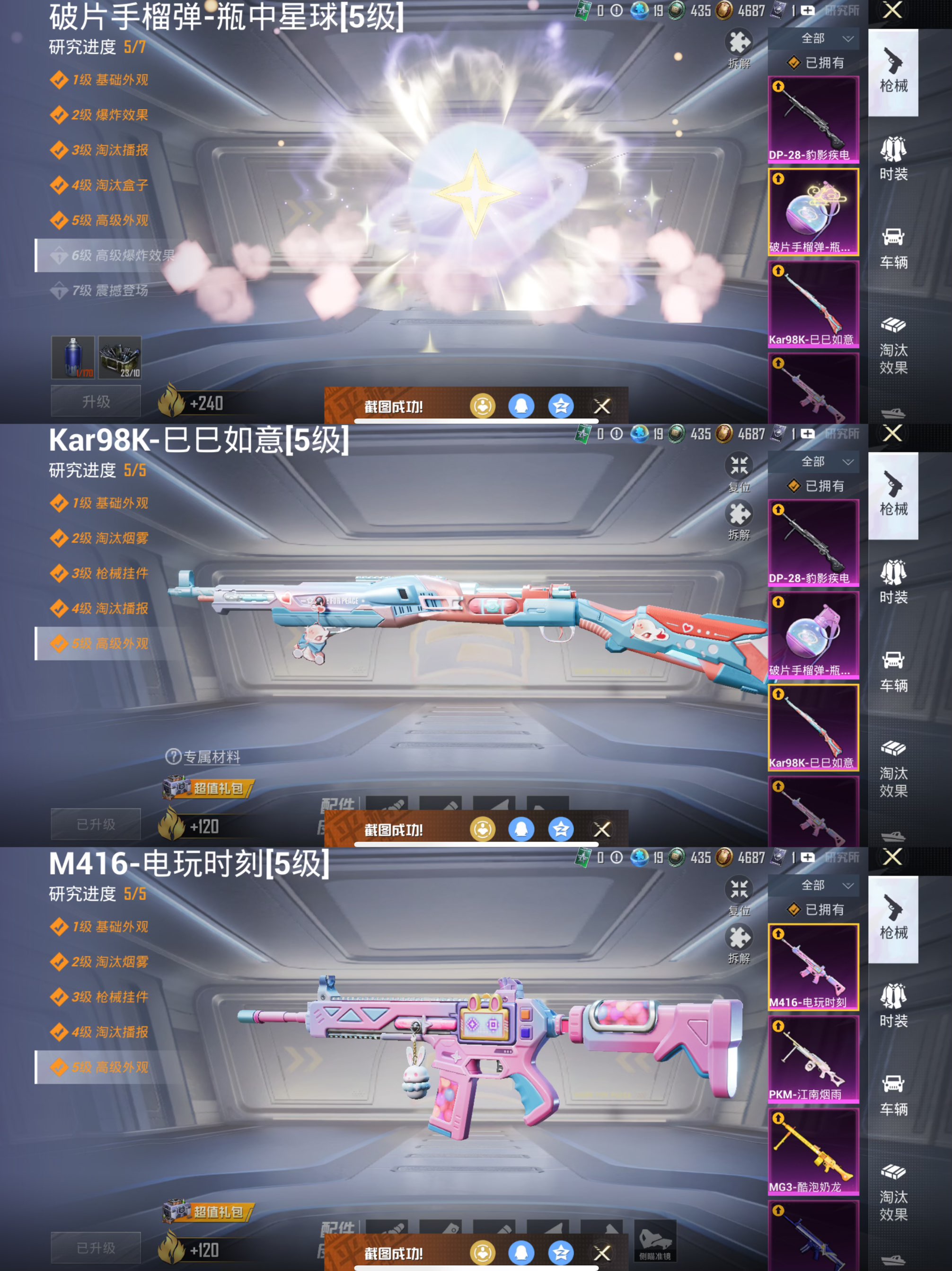 3载具6粉装10特效枪 第五大道 梦幻火箭 甜心巧克力 蓝螳螂 小丑鱼 5级风花雪月 粉玛莎