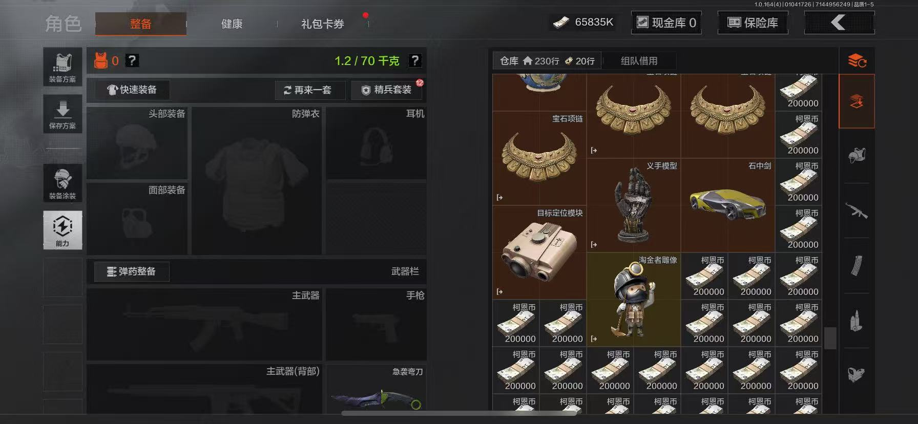 苹果Q区可二次 急袭弯刀 寒牙手刺 仓库价值95.7M 仓库有很多大金 伦琴幻影