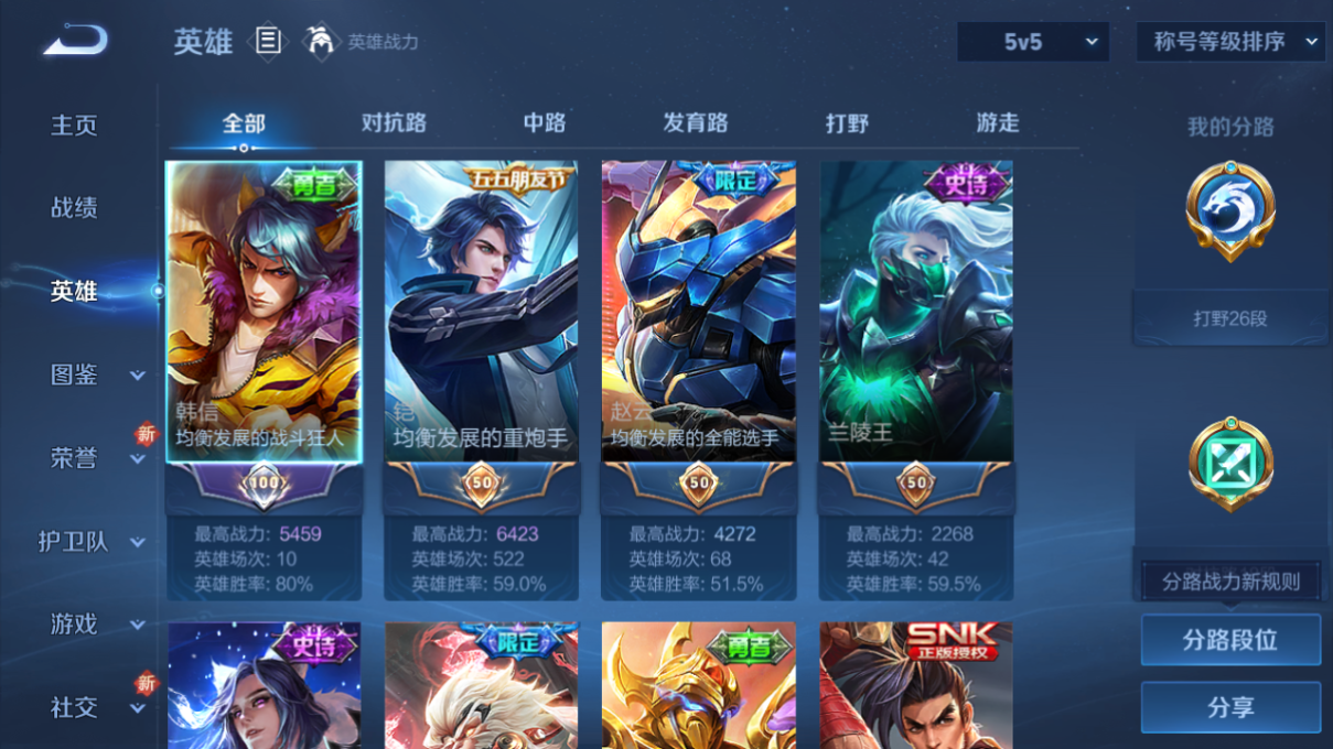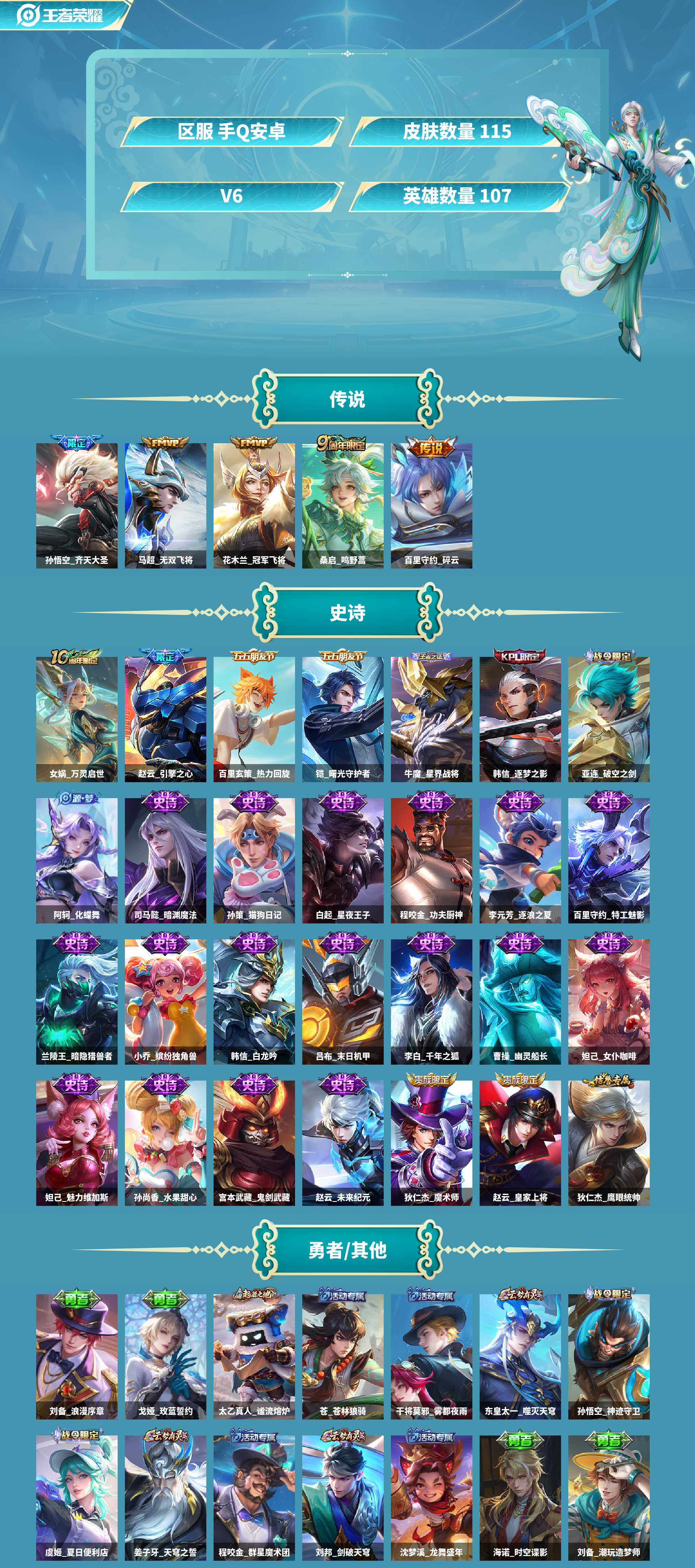 齐天猴子+双飞将+碎云百里皮肤数量115印记总数7V6传奇王