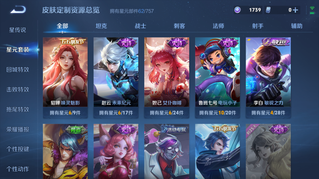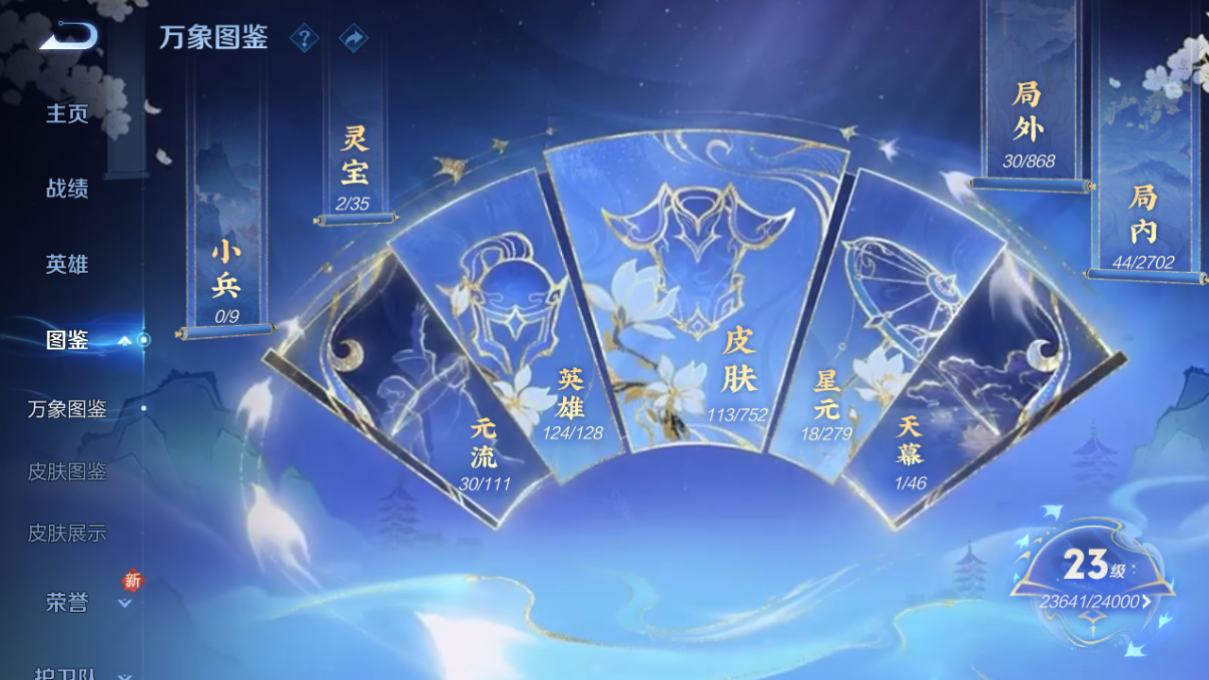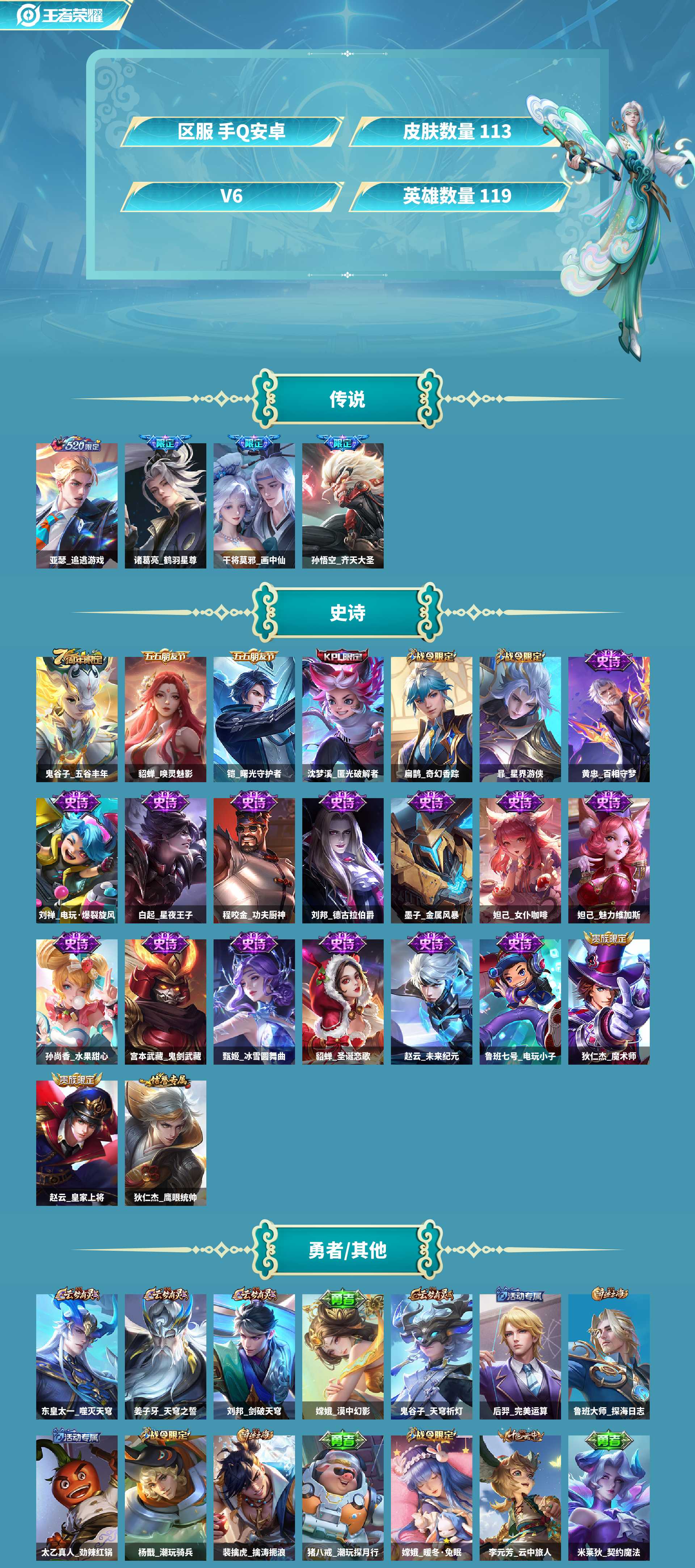 追逃亚瑟/齐天/鹤羽/画中仙皮肤数量113印记总数4V6永恒
