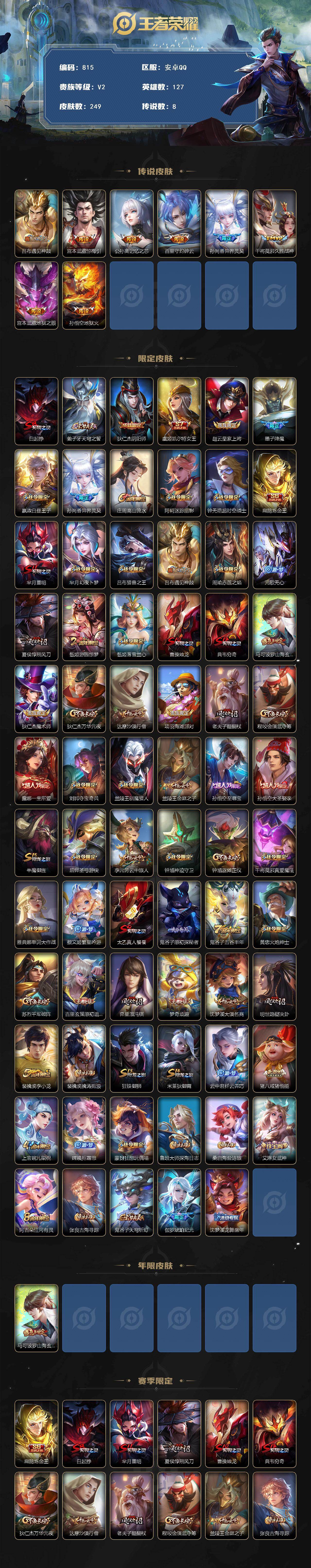 1946690 王者荣耀账号 安卓Q-V7-最强王者段位-127英雄-249皮肤-8传说-67史诗