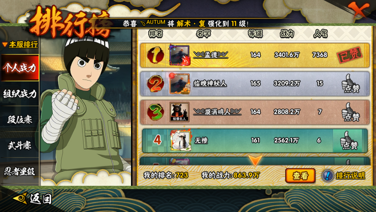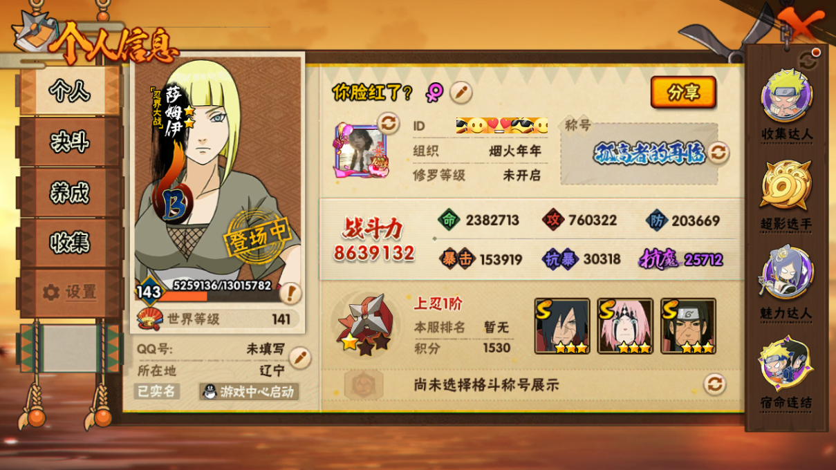 863w战力五影斑破面五灵王15S+飘带4个198直购A/38A+红夜碎片85个+熊猫