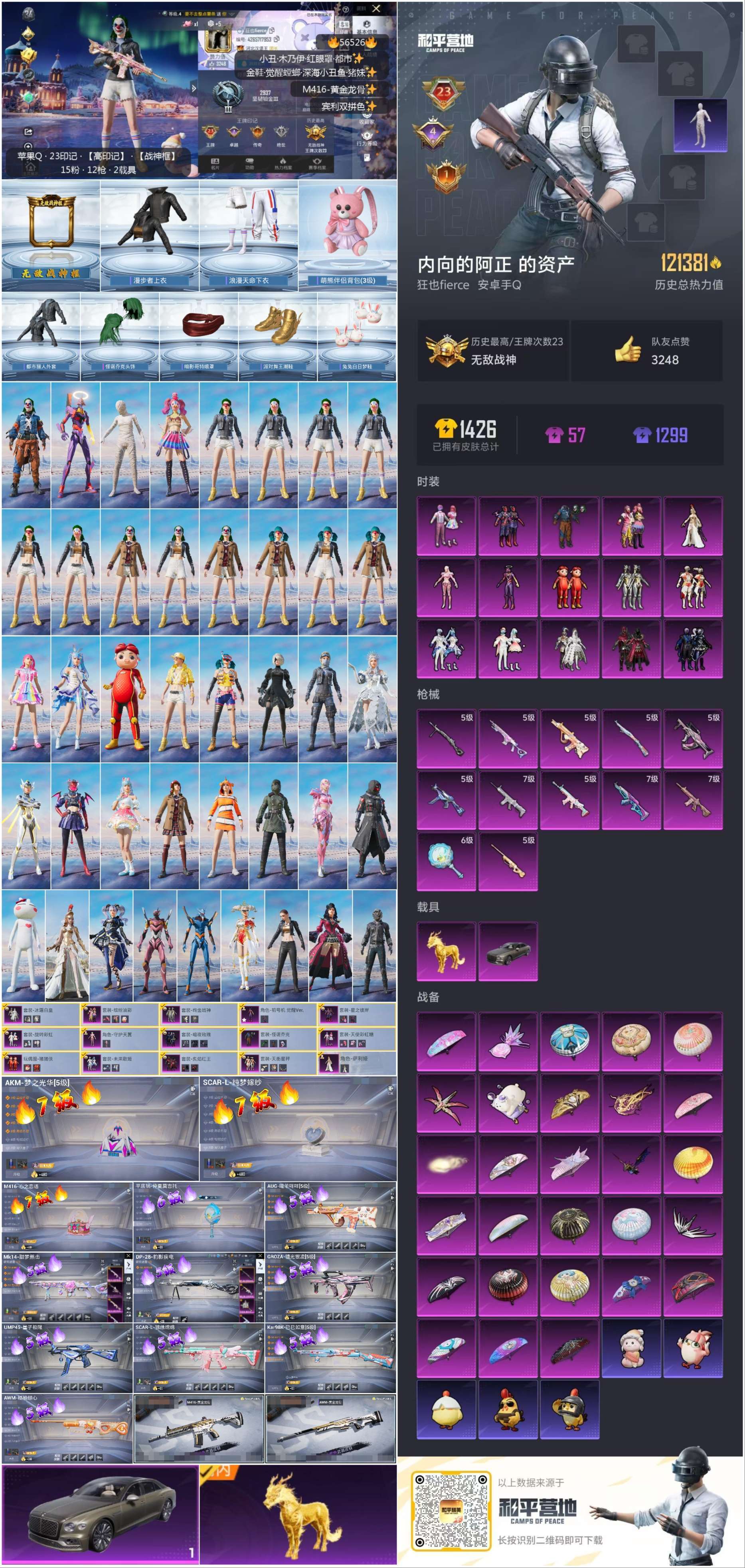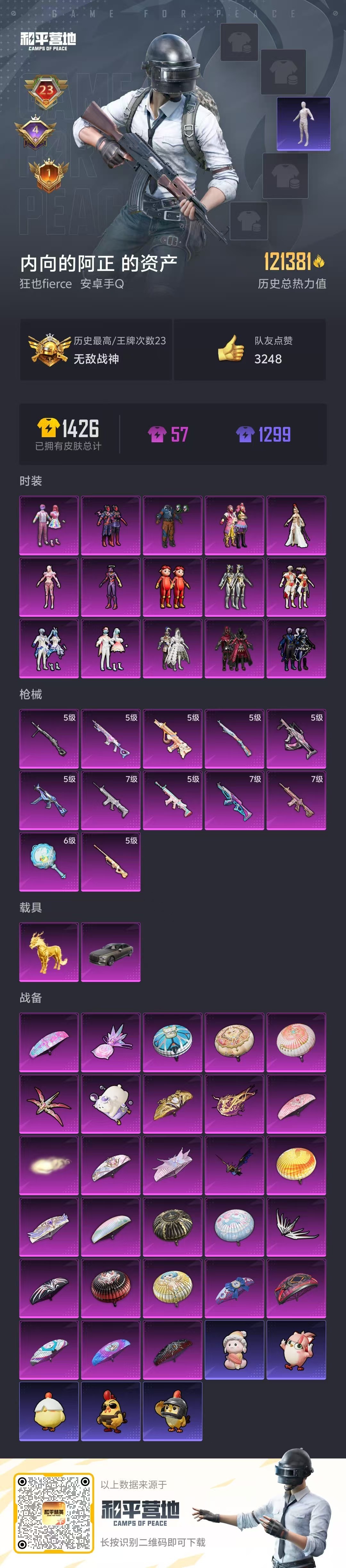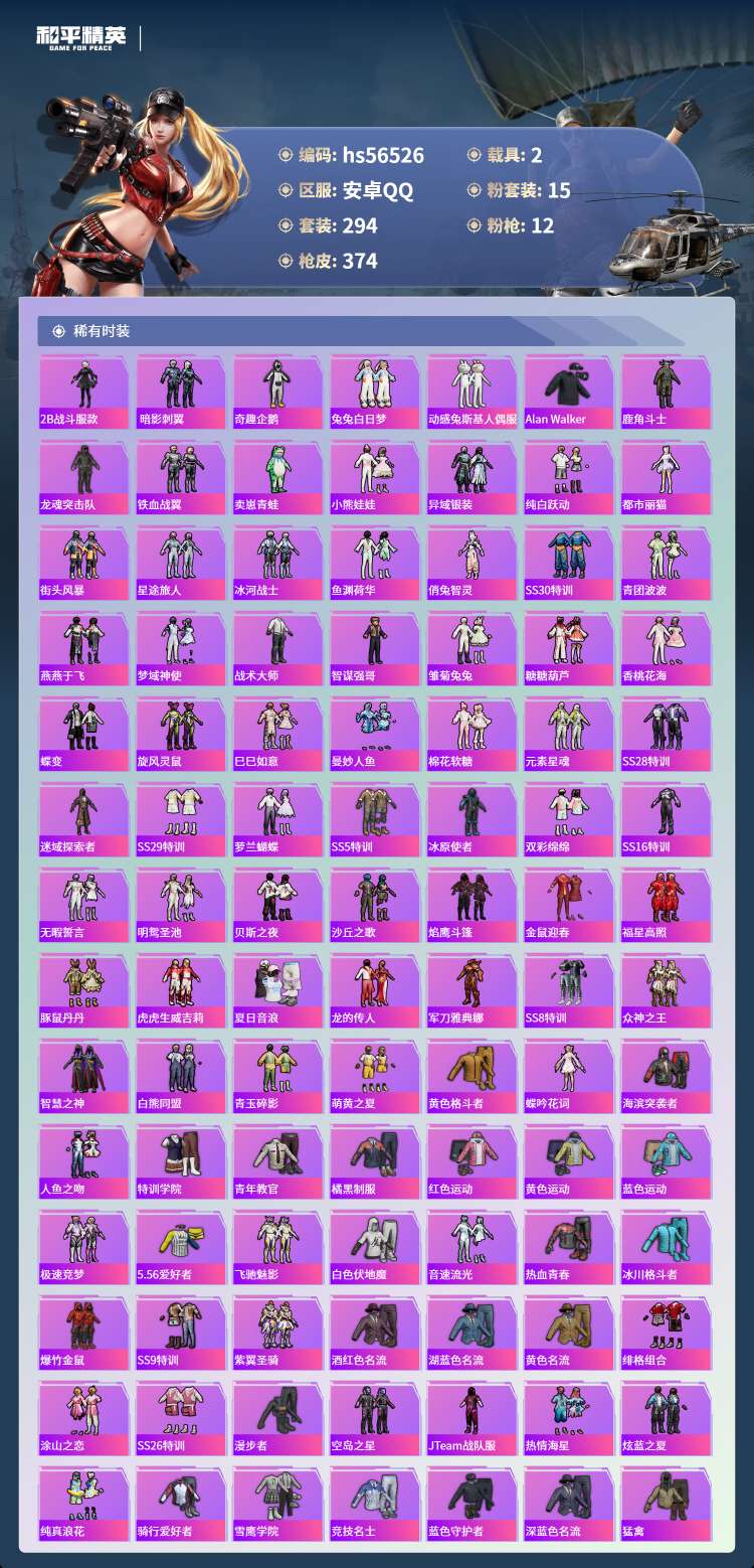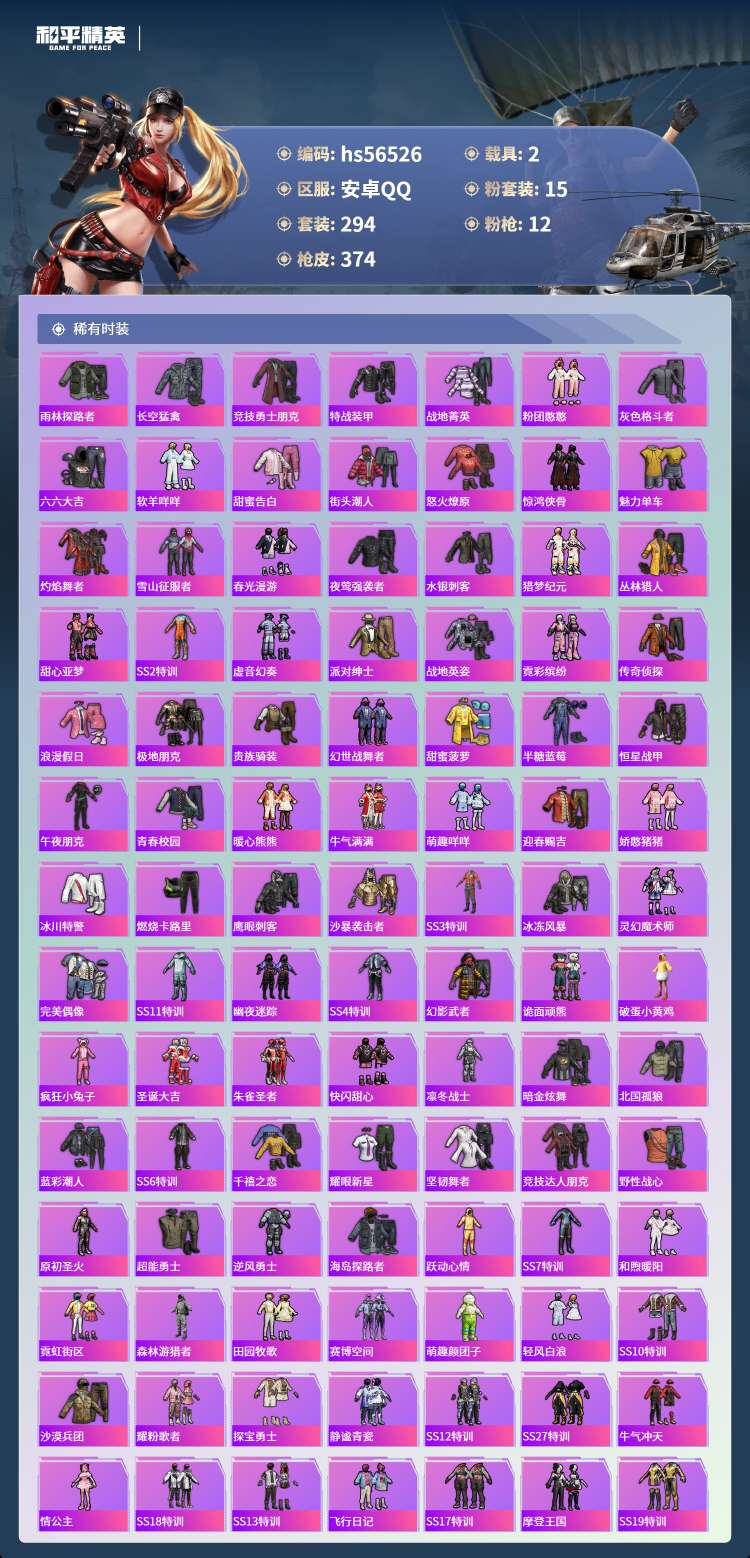 hs56526 安卓手Q-23王牌印记-有战神框-15粉装-12特效枪-2载具-121381热力值-