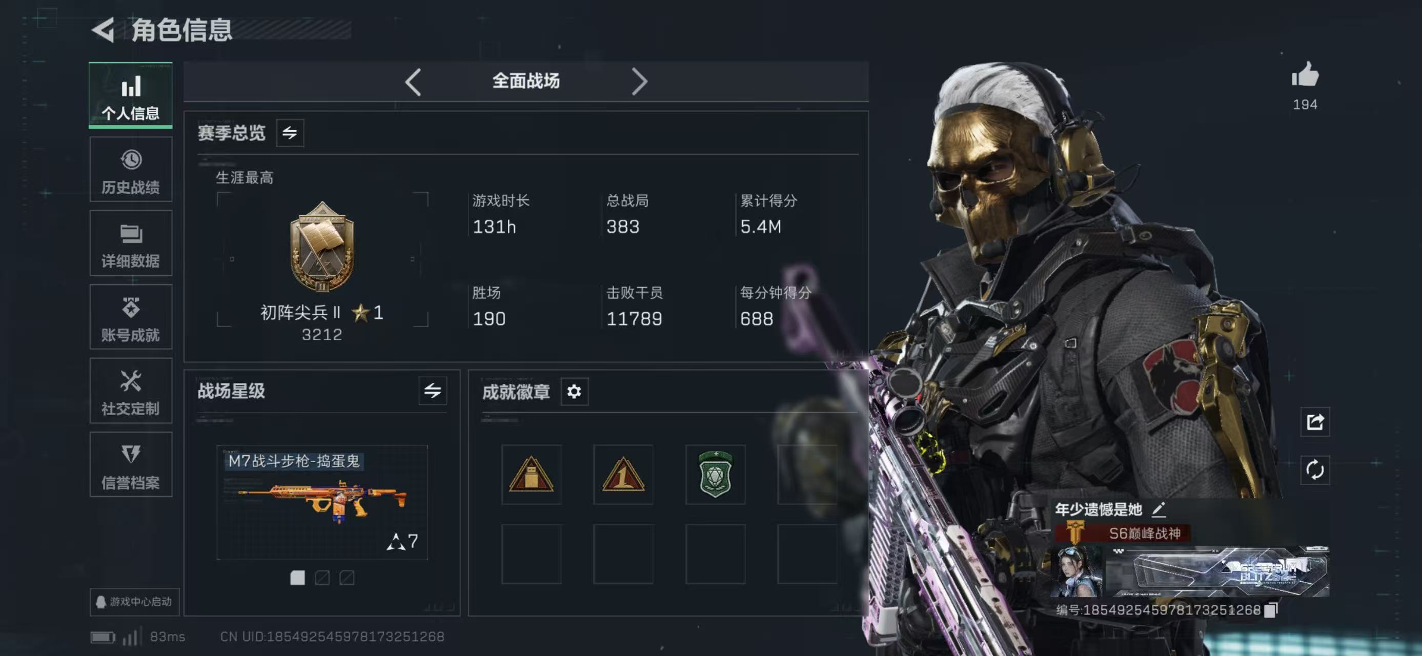 战场段位: