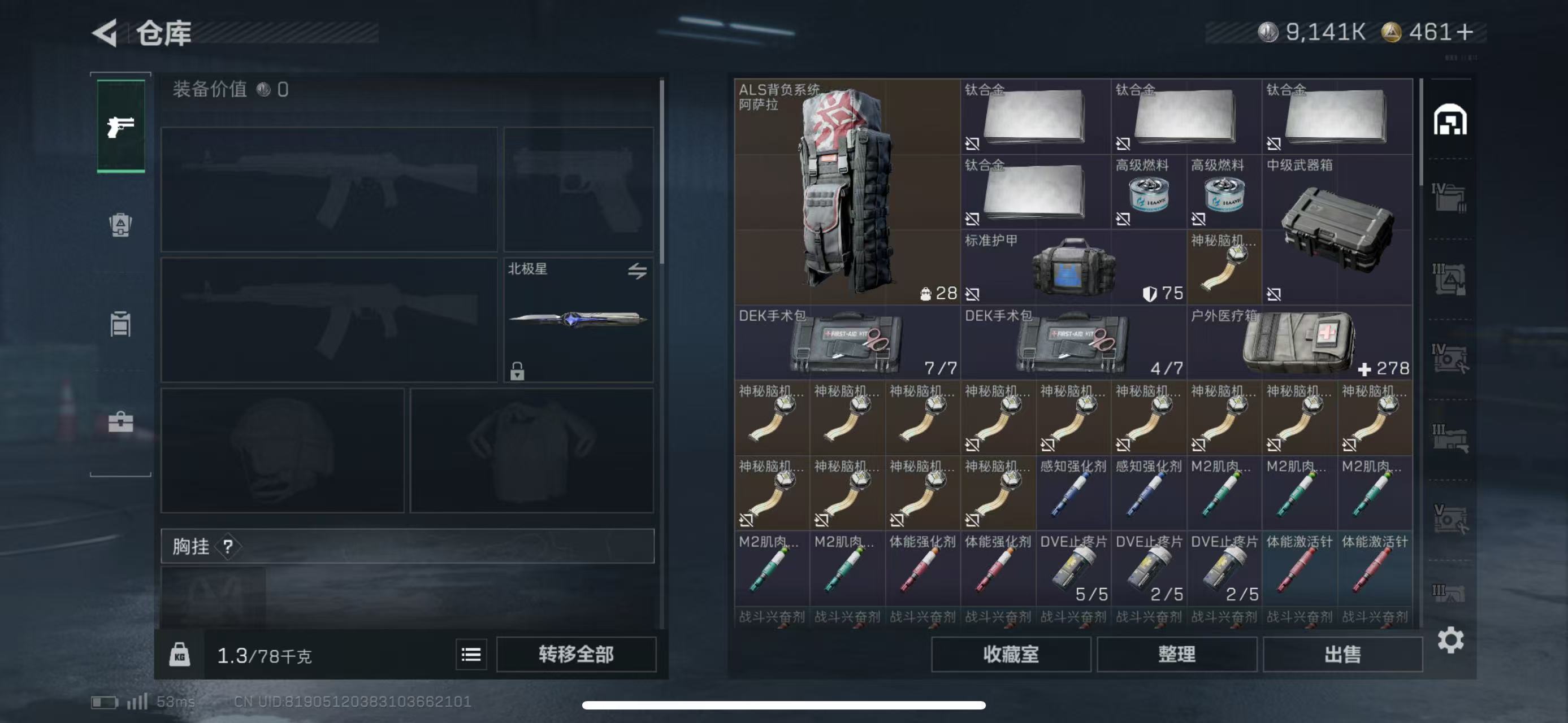 总资产157.36M,哈夫币 9141.82K,战场等级:10 列兵,行动等级:60 黑鹰,角色皮肤