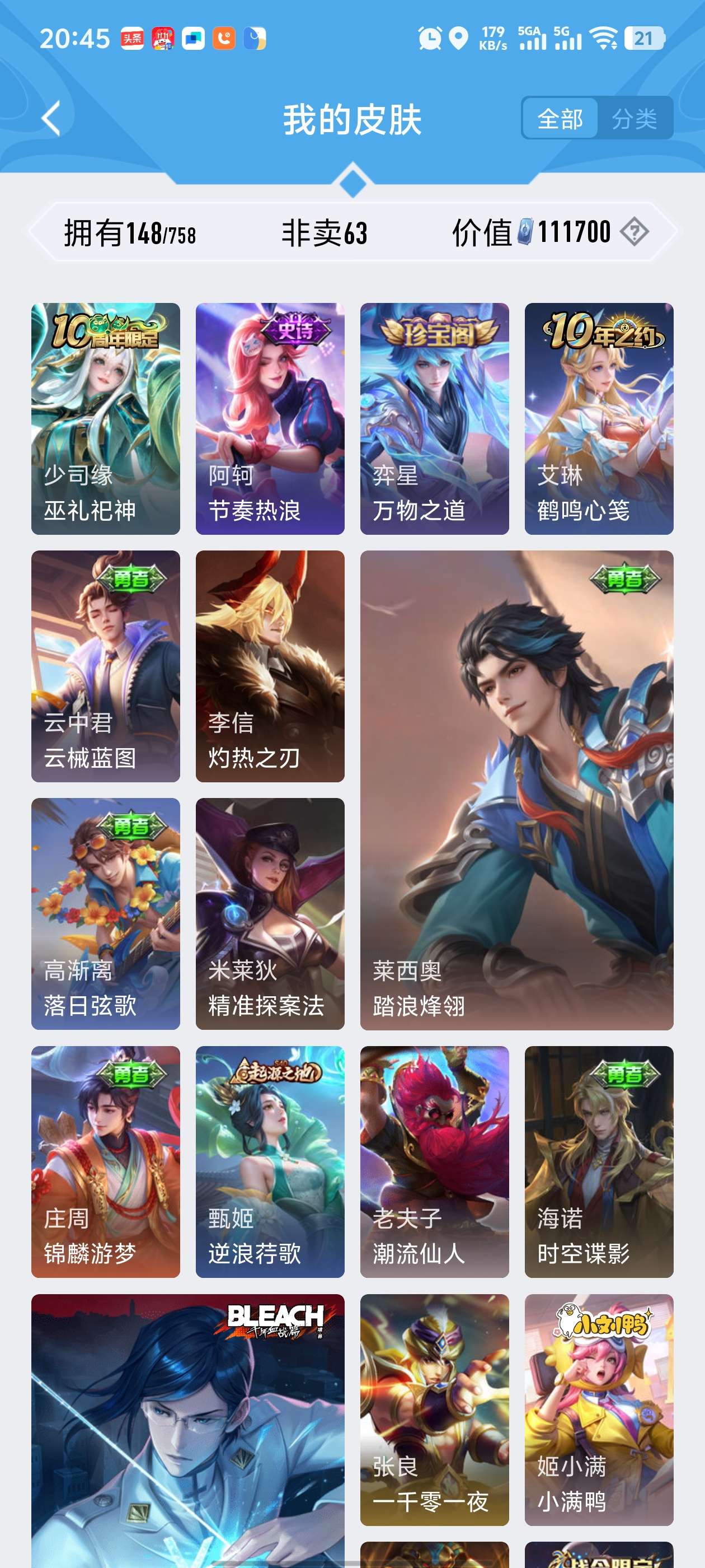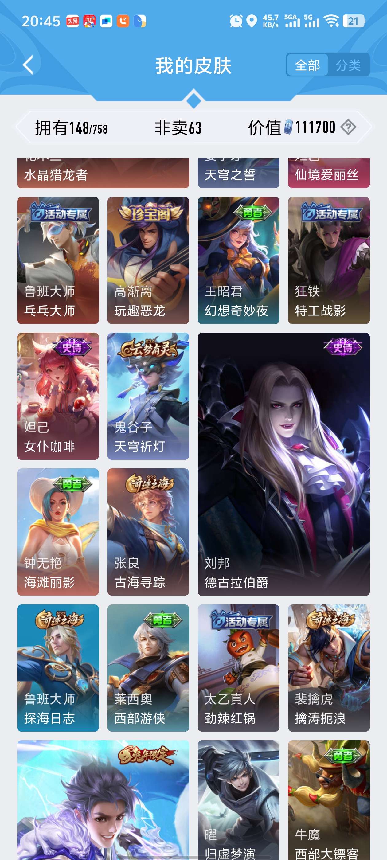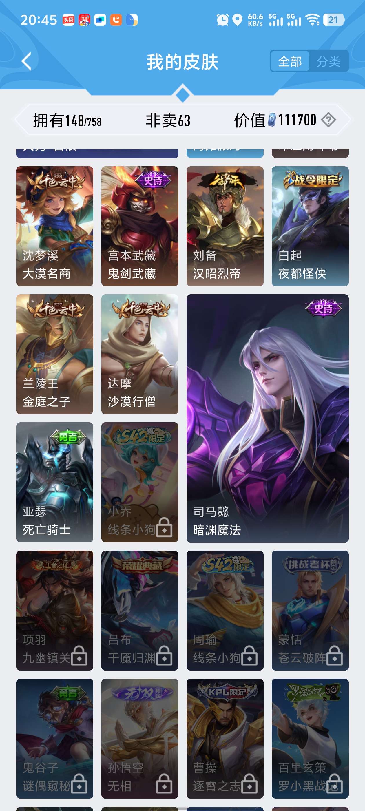 148皮肤126英雄1典藏6传说苍雷引女娲澜年限无双飞将齐天大圣等等,快v7,有本赛季战令