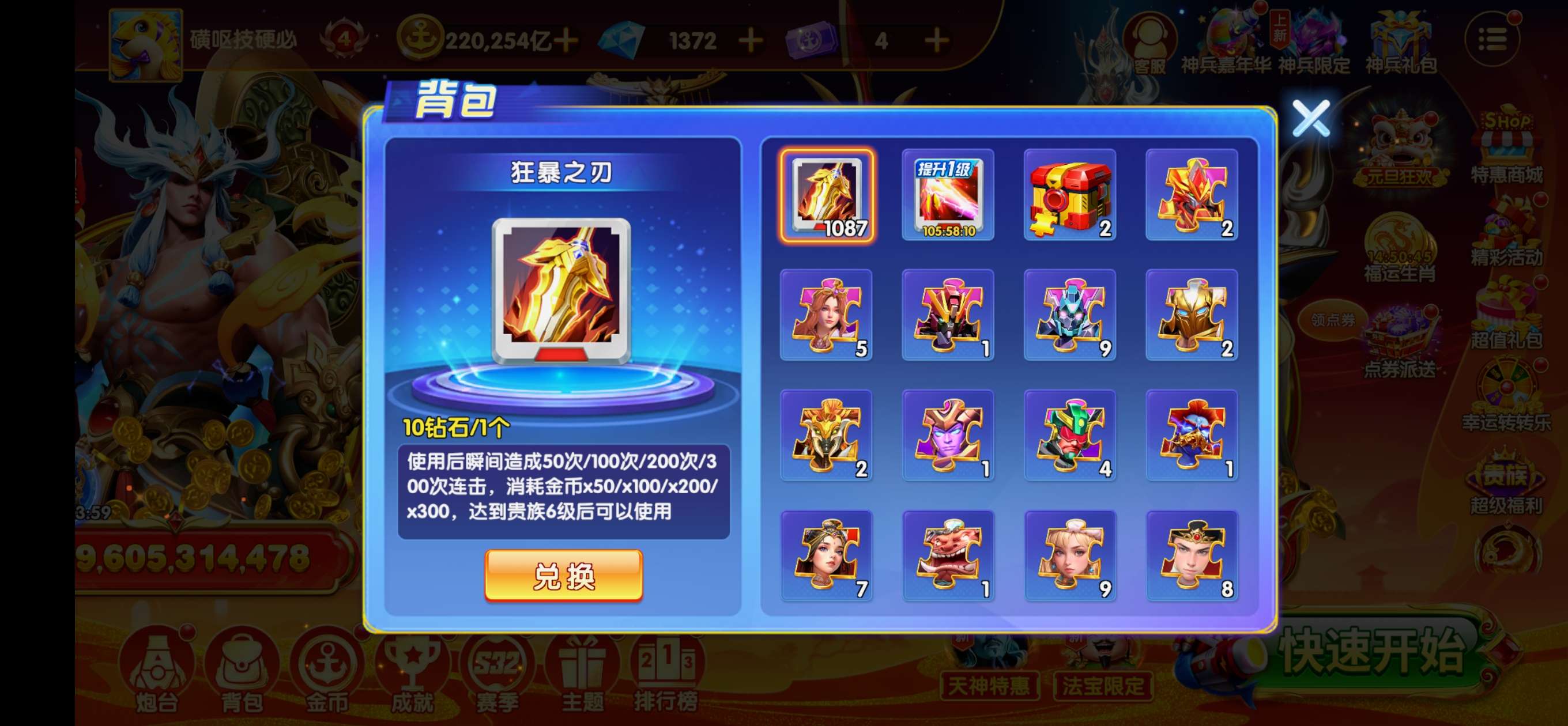 乐乐捕鱼v4 22万亿带号月卡 女神联盟羁绊9000炮限时1.8亿炮限时六节神兵看图