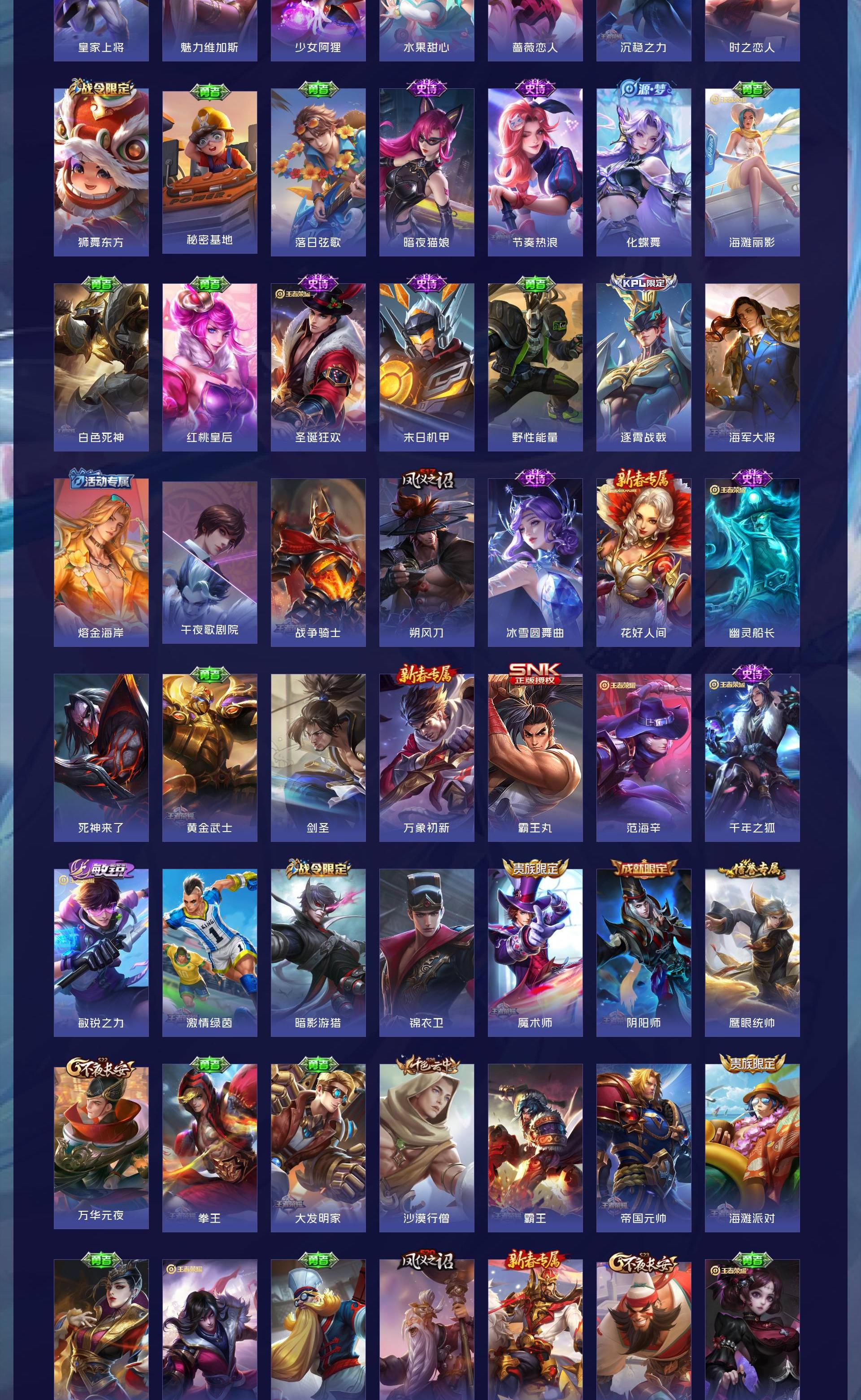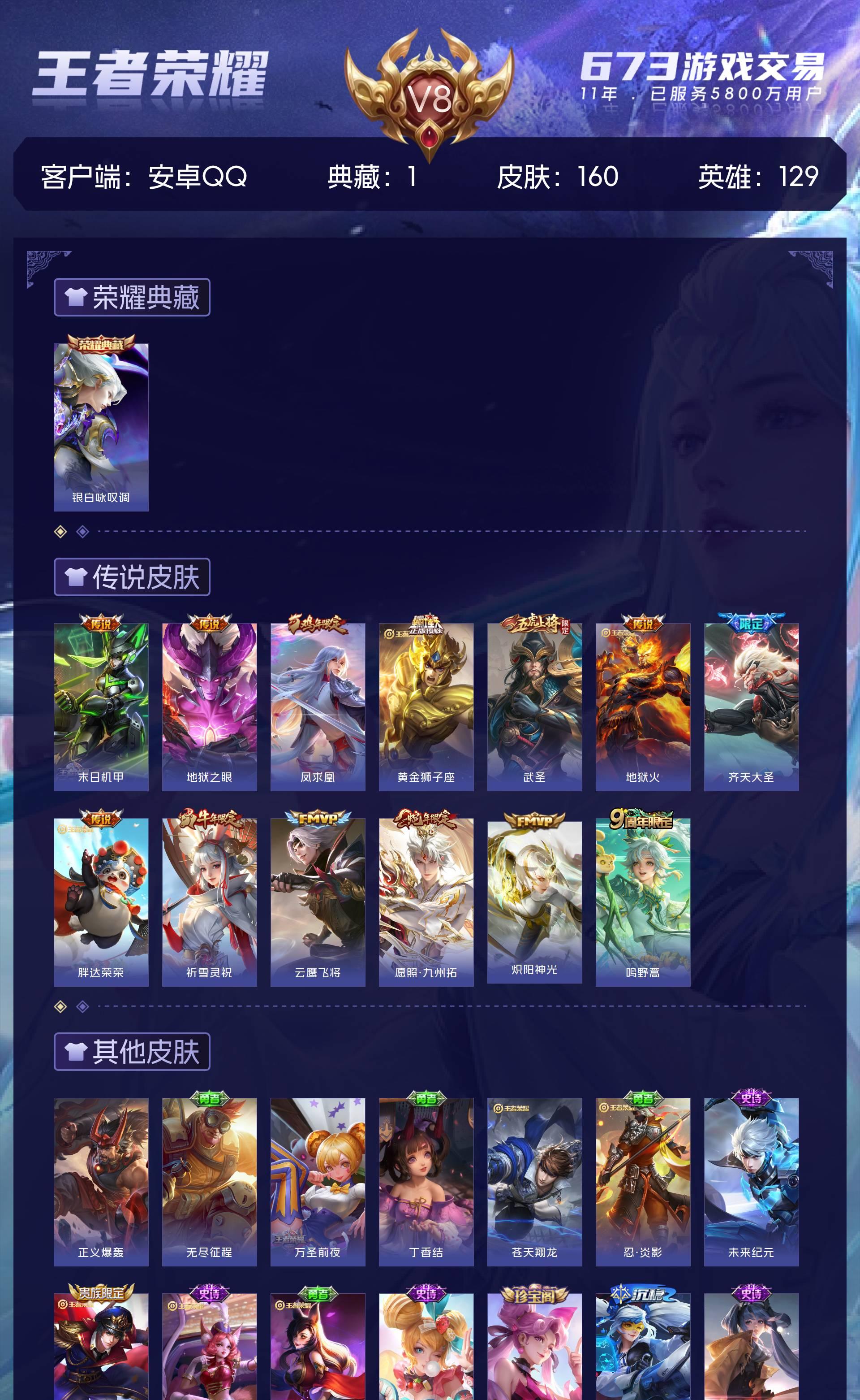 V8 皮肤160 英雄129 无双王者 荣耀典藏1 传说13 其他皮肤153