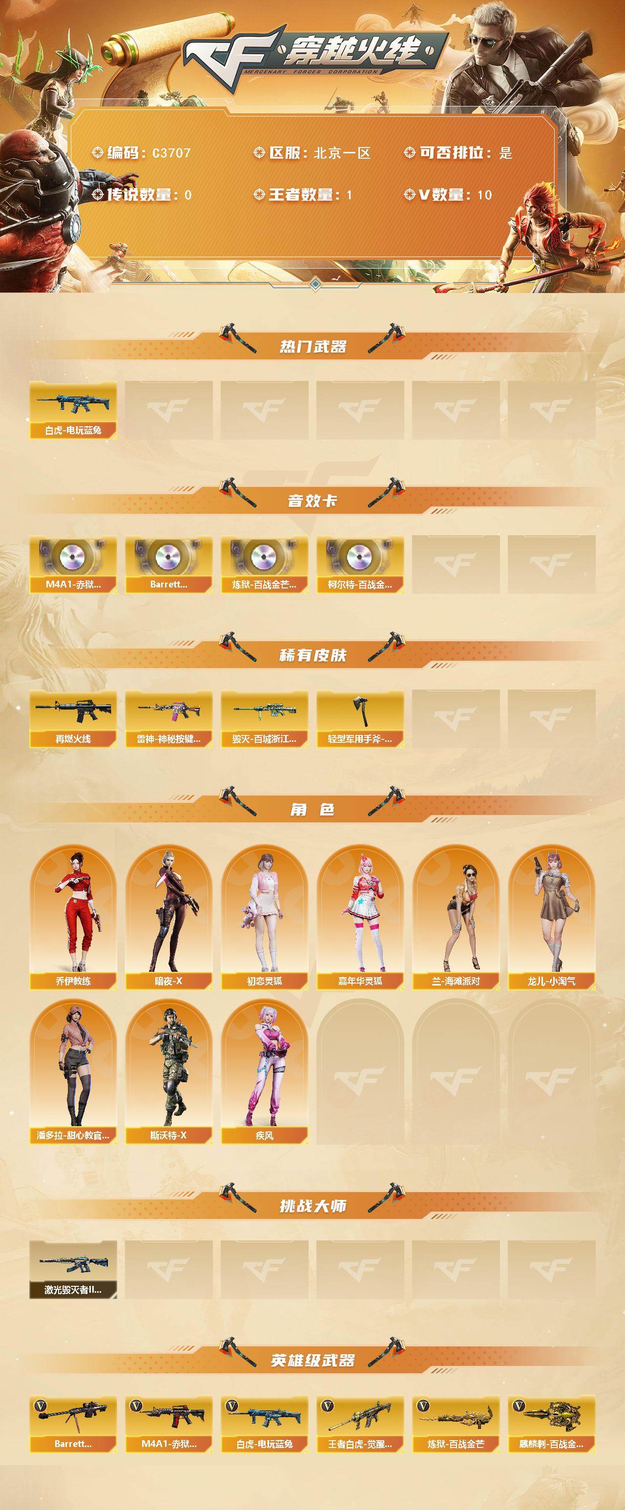 【音效卡】:M4A1-赤狱骑士-怀旧音效卡,Barrett-碧霄极光音效卡,炼狱-百战金芒-庆典舞曲音效卡,柯尔特-百战金芒-庆典舞曲音效卡