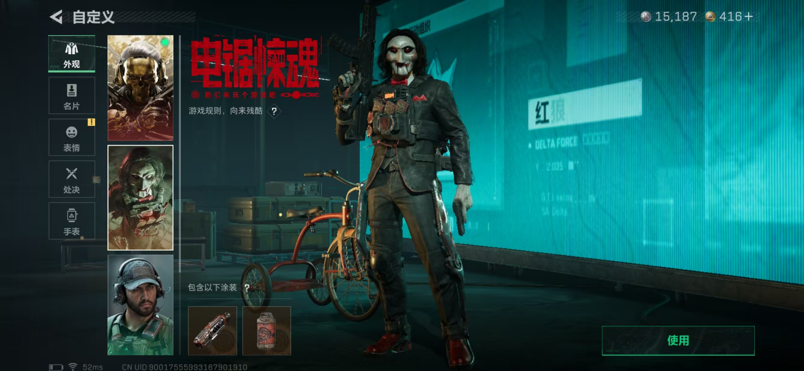 MSJ2958【极品S AUG突击步枪-气象感应极品S 12干员3刀皮 怜悯 北极星 电锯惊魂 22金枪 毁灭之源 典藏枪皮K416突击步枪-命运c 腾龙突击步枪-气象感应极品A】三端互通-总价值52.5M-哈夫币15k-烽火地带等级60-烽火地带【干员皮肤】 蛊-能天使·午夜邮差 牧羊人-街头之王 深蓝-不破誓约 骇爪-维什戴尔 无名-夜鹰 红狼-电锯惊魂 红狼-蚀金玫瑰 威龙-飞虎 威龙-壮志凌云 蜂医-送葬人·无题密令 蜂医-危险物质 露娜-黑·天际线【近战武器】黑鹰 怜悯 北极星 电锯惊