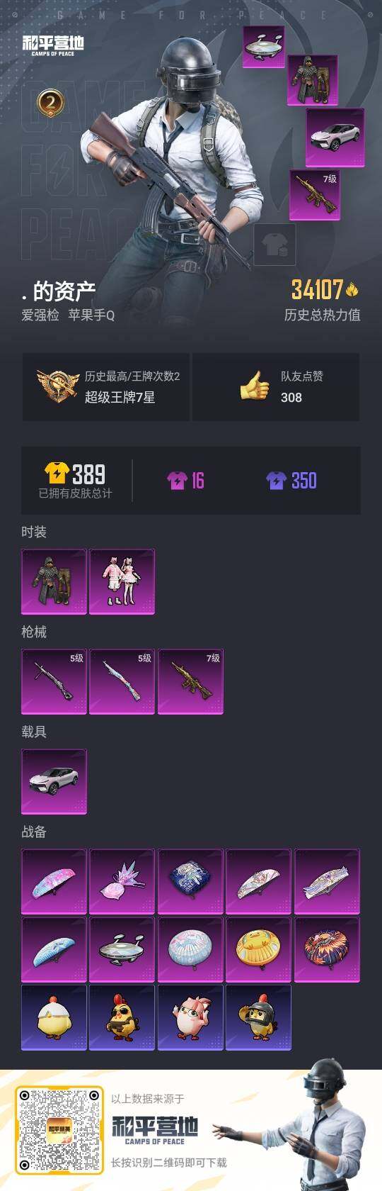 苹果 【公主号 极限特训 彩虹甜喵 M416-五爪金龙(七级),Kar98K-巳巳如意(五级),DP-28-豹影疾电(五级) 路特斯ELETRE(花绽灰)】手Q-2粉装-3特效枪-1载具-2粉色飞行器-34107热力值-2王牌印记-82套装-111枪皮