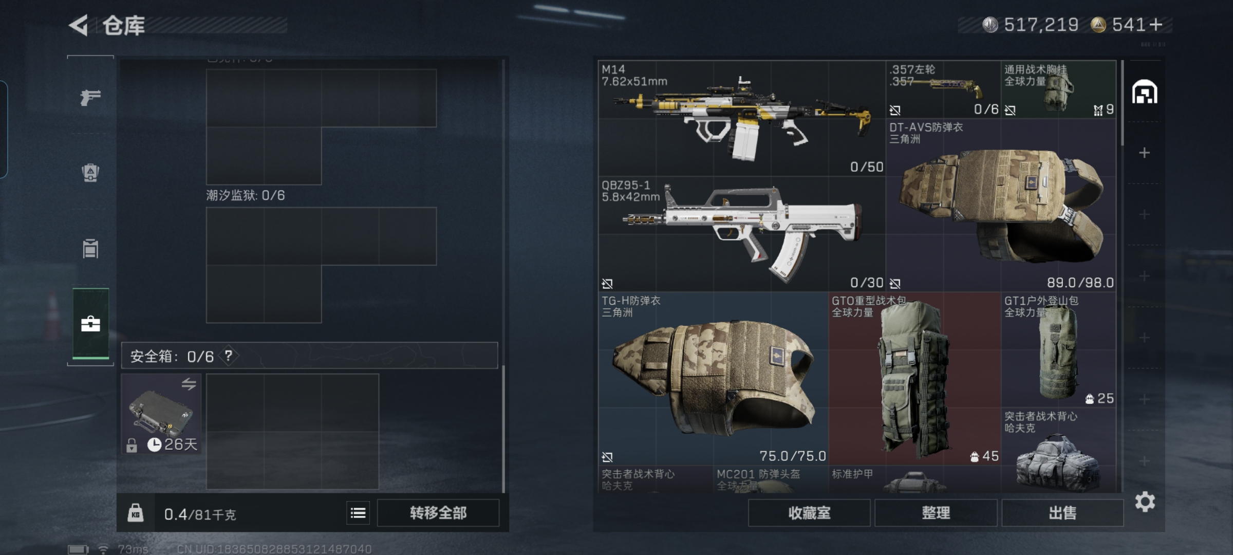 总价值29.4M-哈夫币517k-烽火地带等级60-烽火地带段位黑鹰