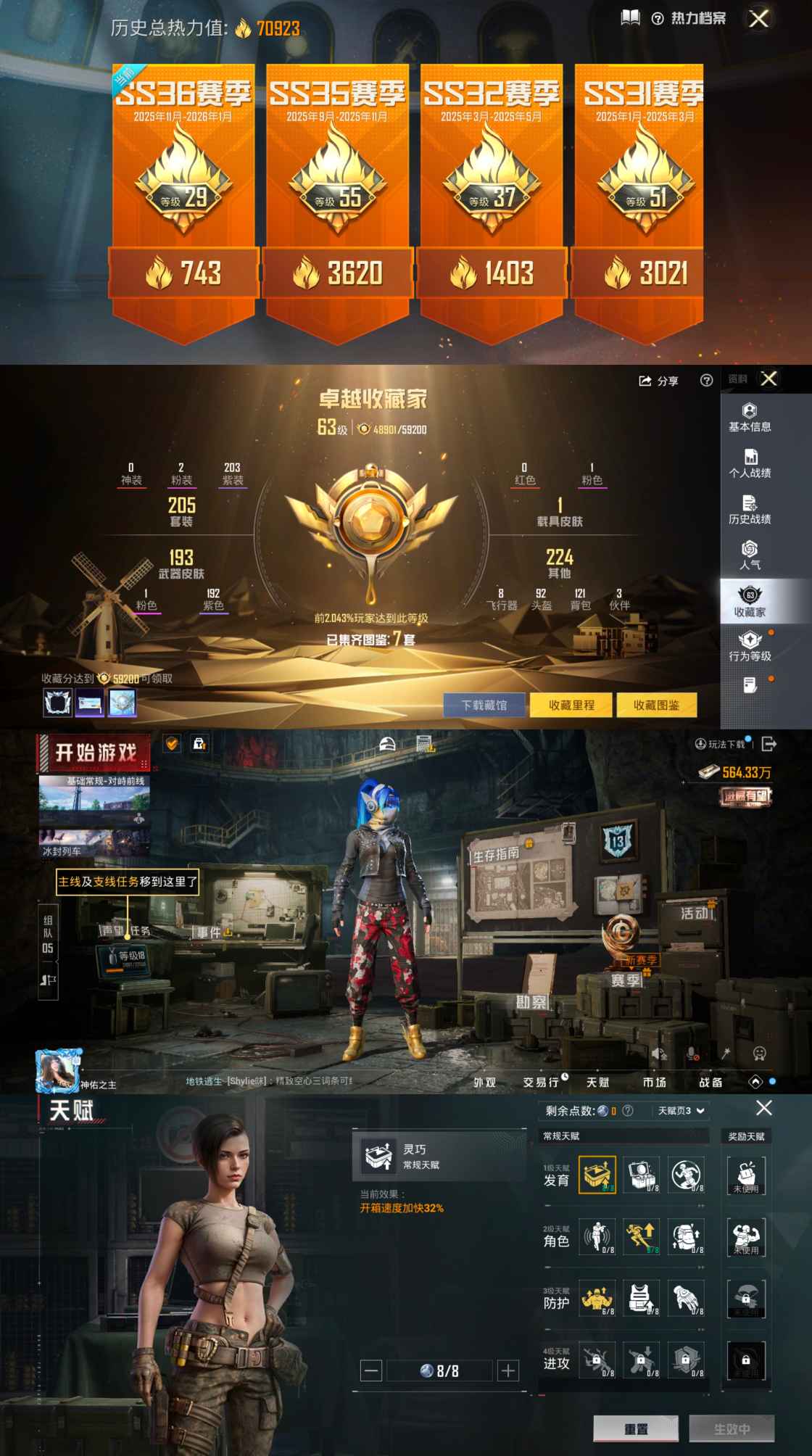 4稀有1载具2粉装1特效枪17热门205套装193枪皮 70923热力值 13印记 历史超级王牌9星