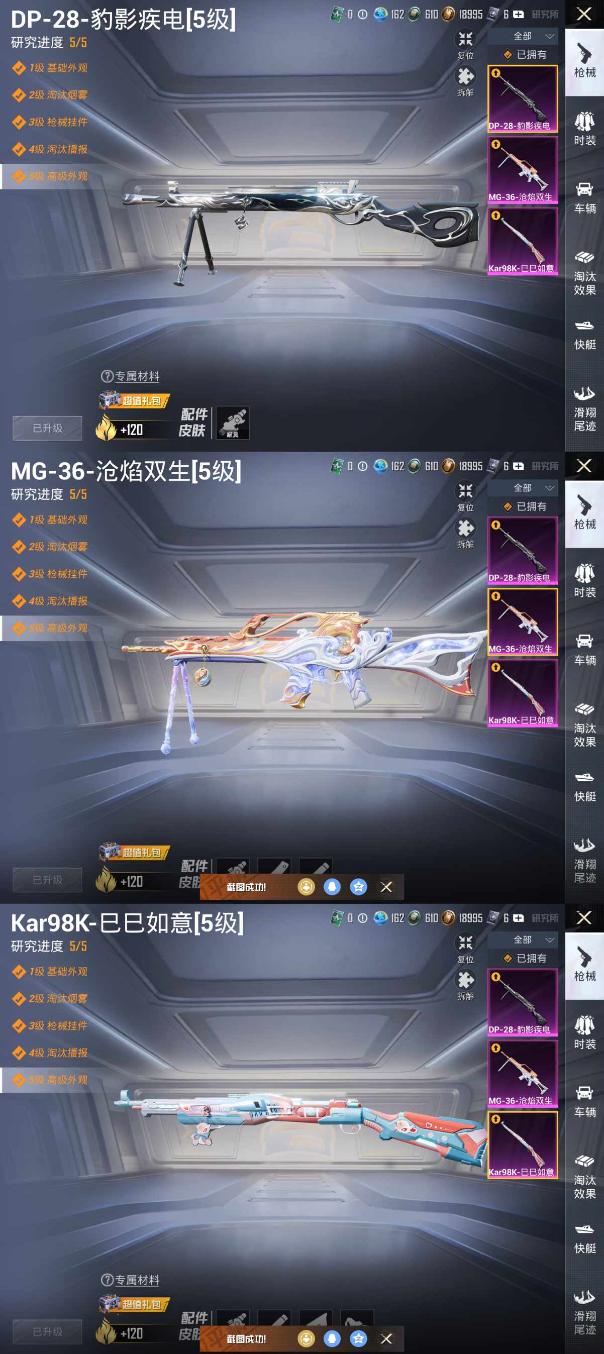 6稀有1载具3粉装3特效枪14热门129套装140枪皮 45276热力值 12印记 历史卓越王牌14星