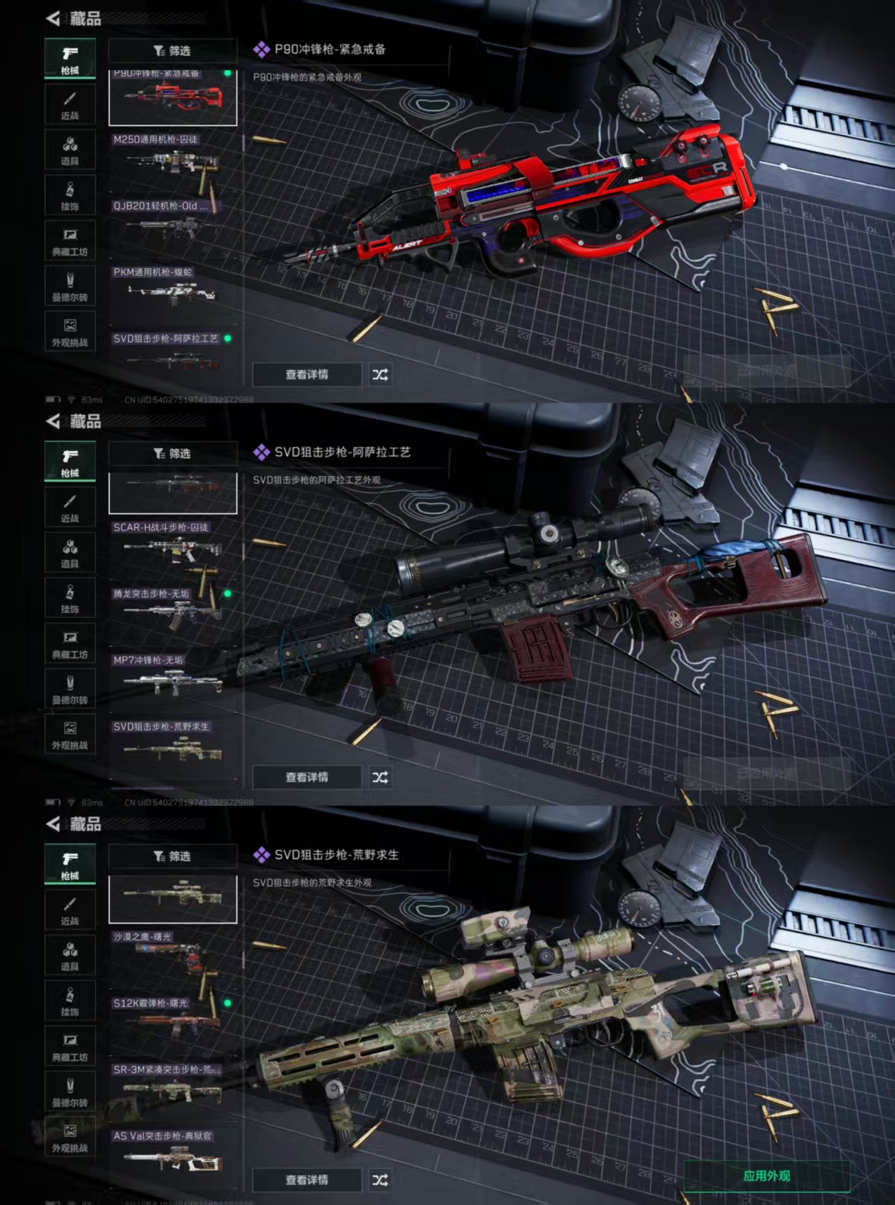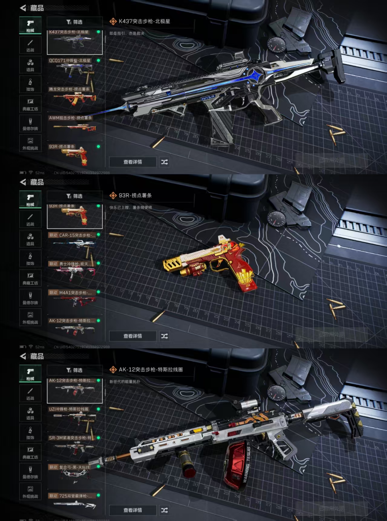 【近战武器】黑鹰 北极星【枪皮】AKM突击步枪-黄铜 AKM突击步枪-黄铜 AKS-74U突击步枪-马赛克涂装 M4A1突击步枪-猛兽 AK-12突击步枪-极地勘察队 M4A1突击步枪-粉色涂装
